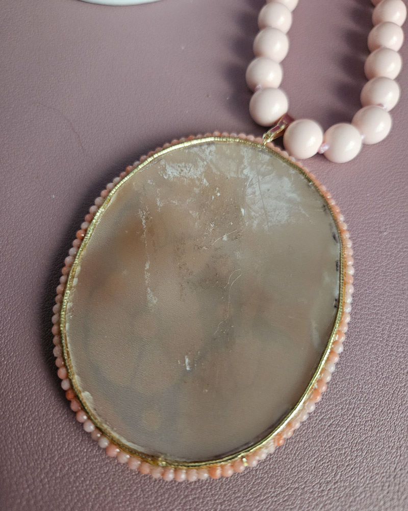 The charm of the cameo never dies and the combination with the rose coral makes this necklace a very precious accessory to treasure in your jewellery box.