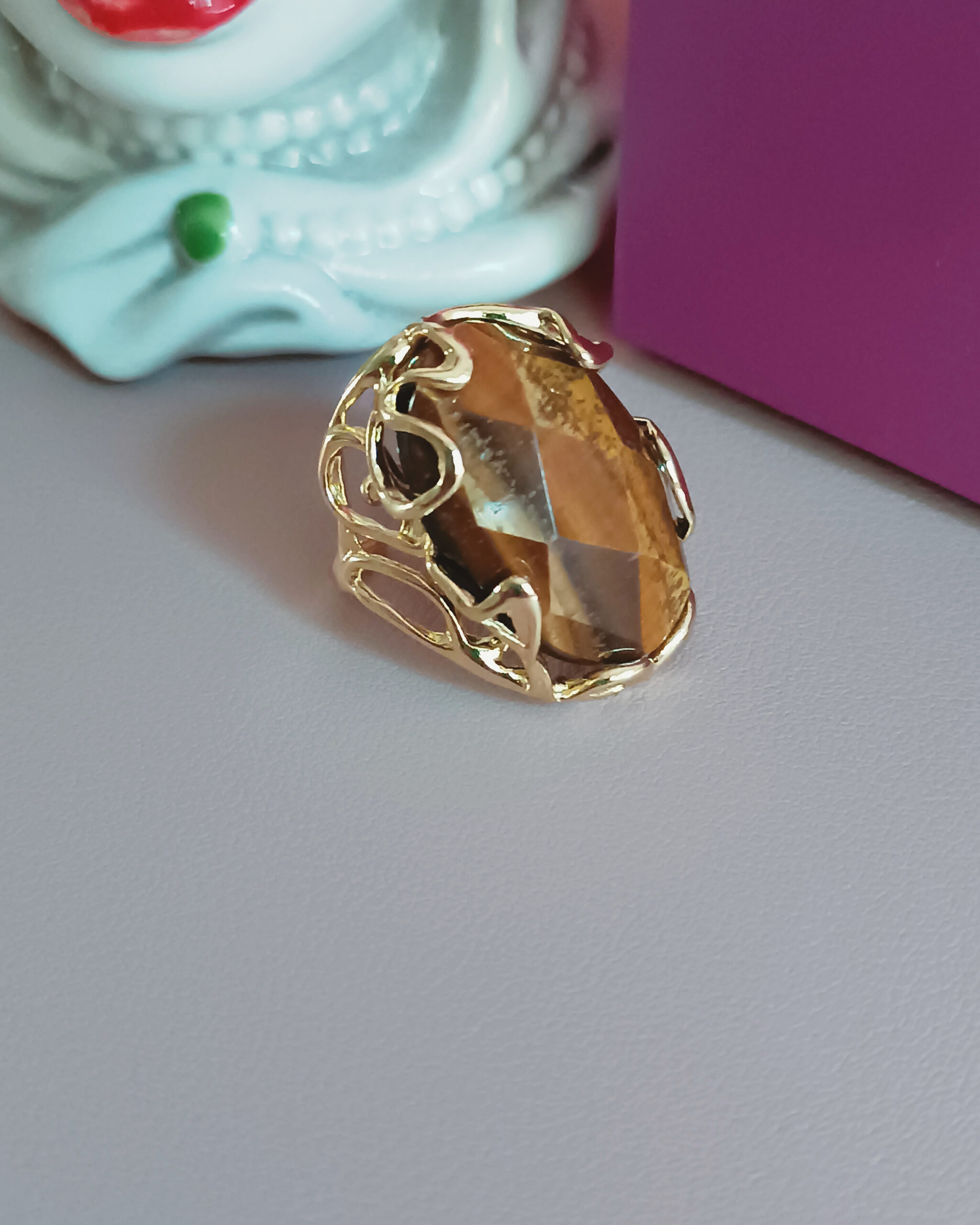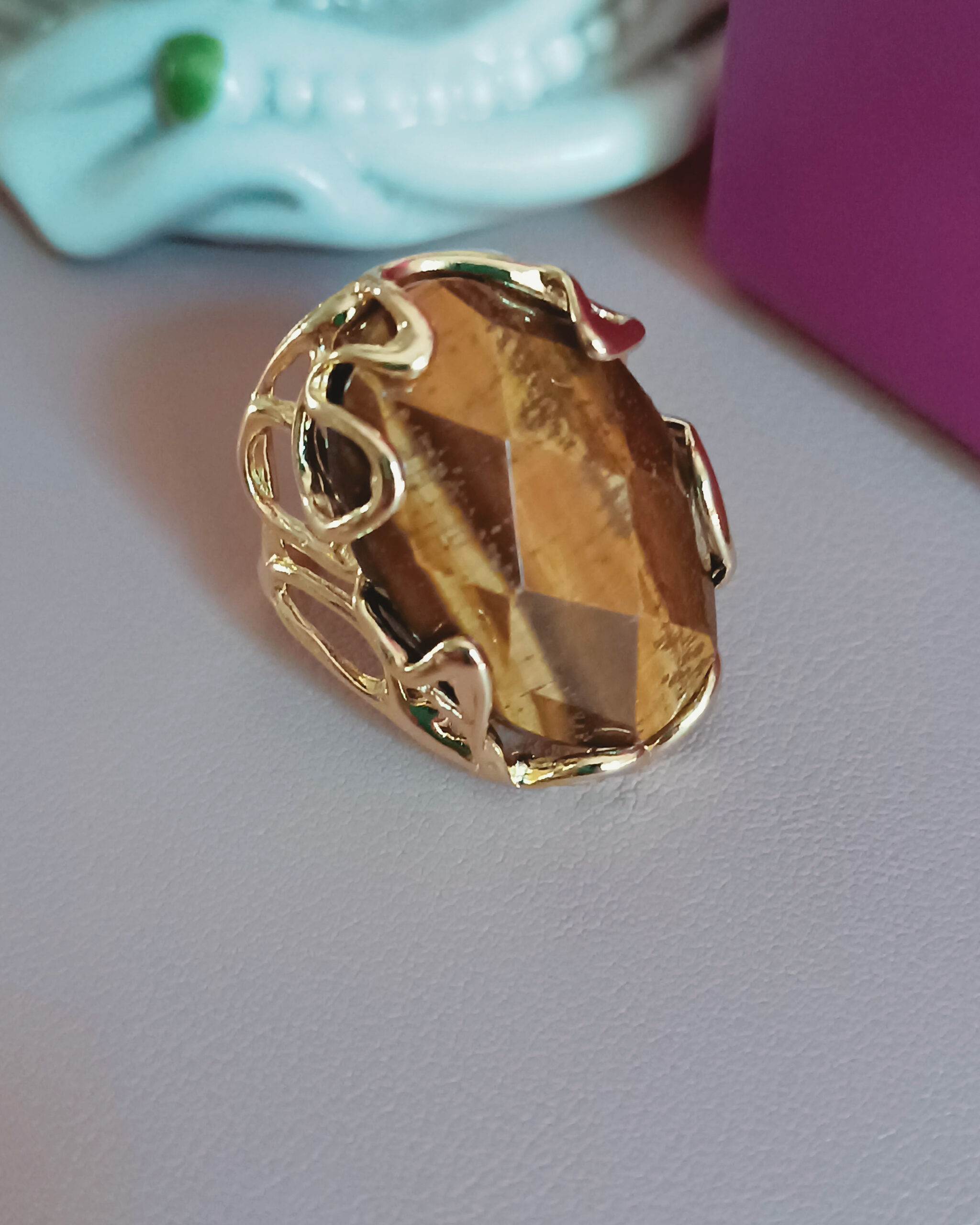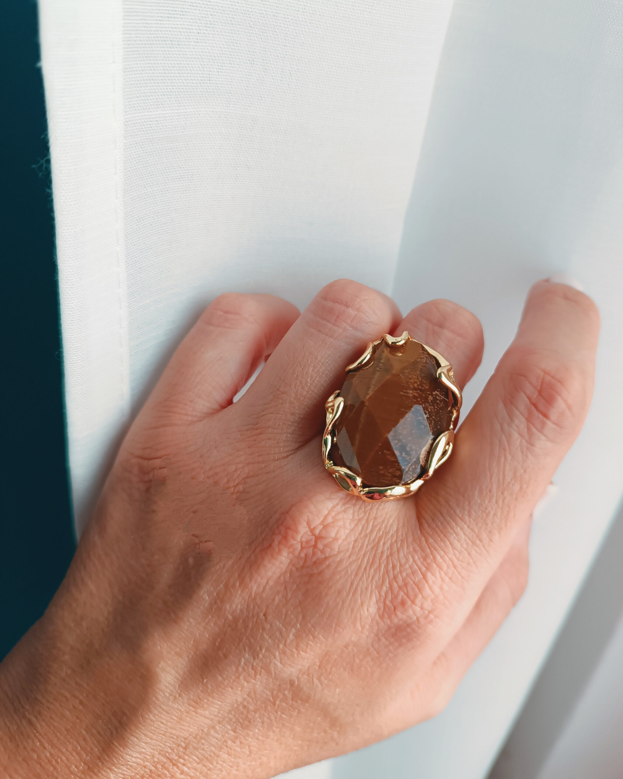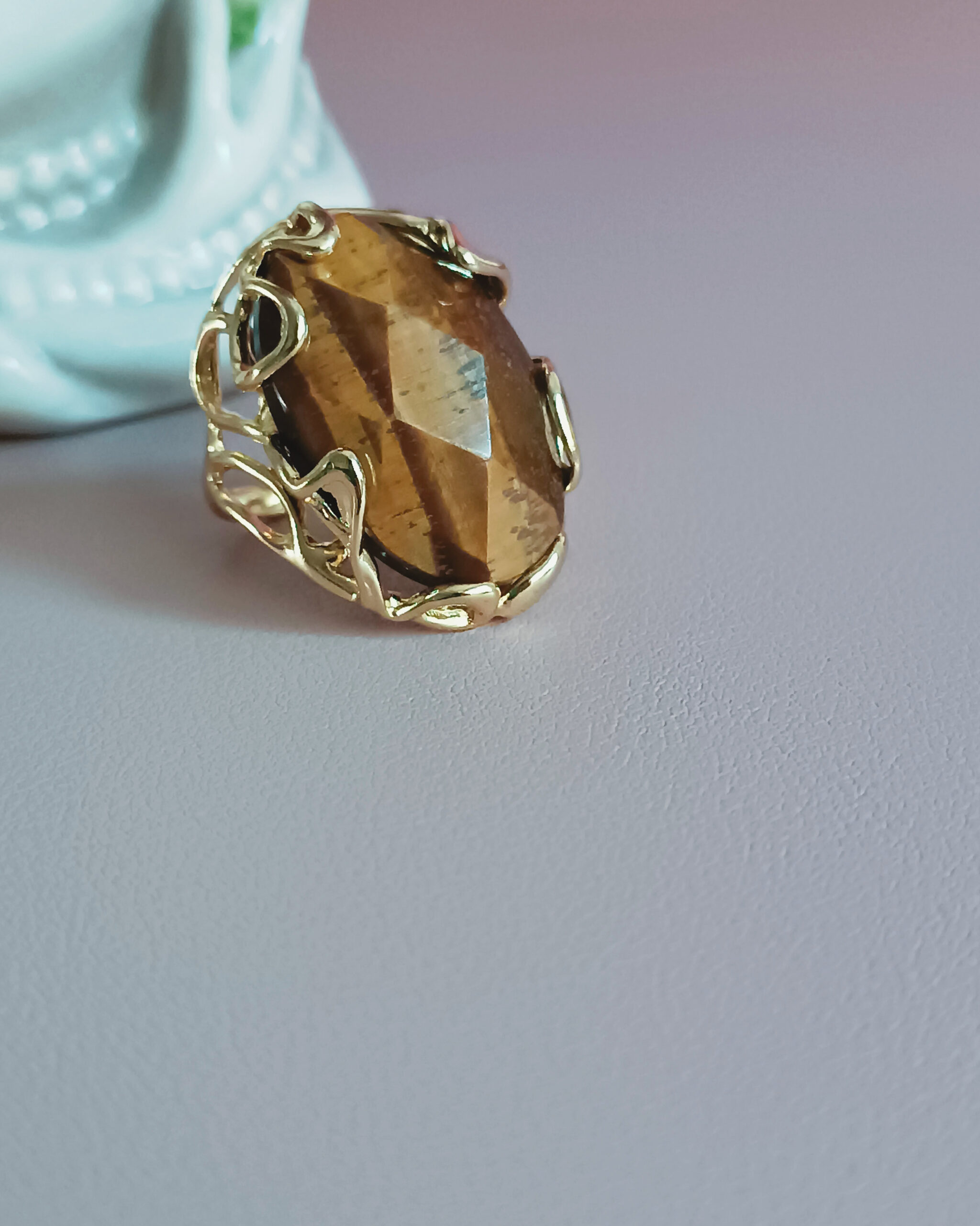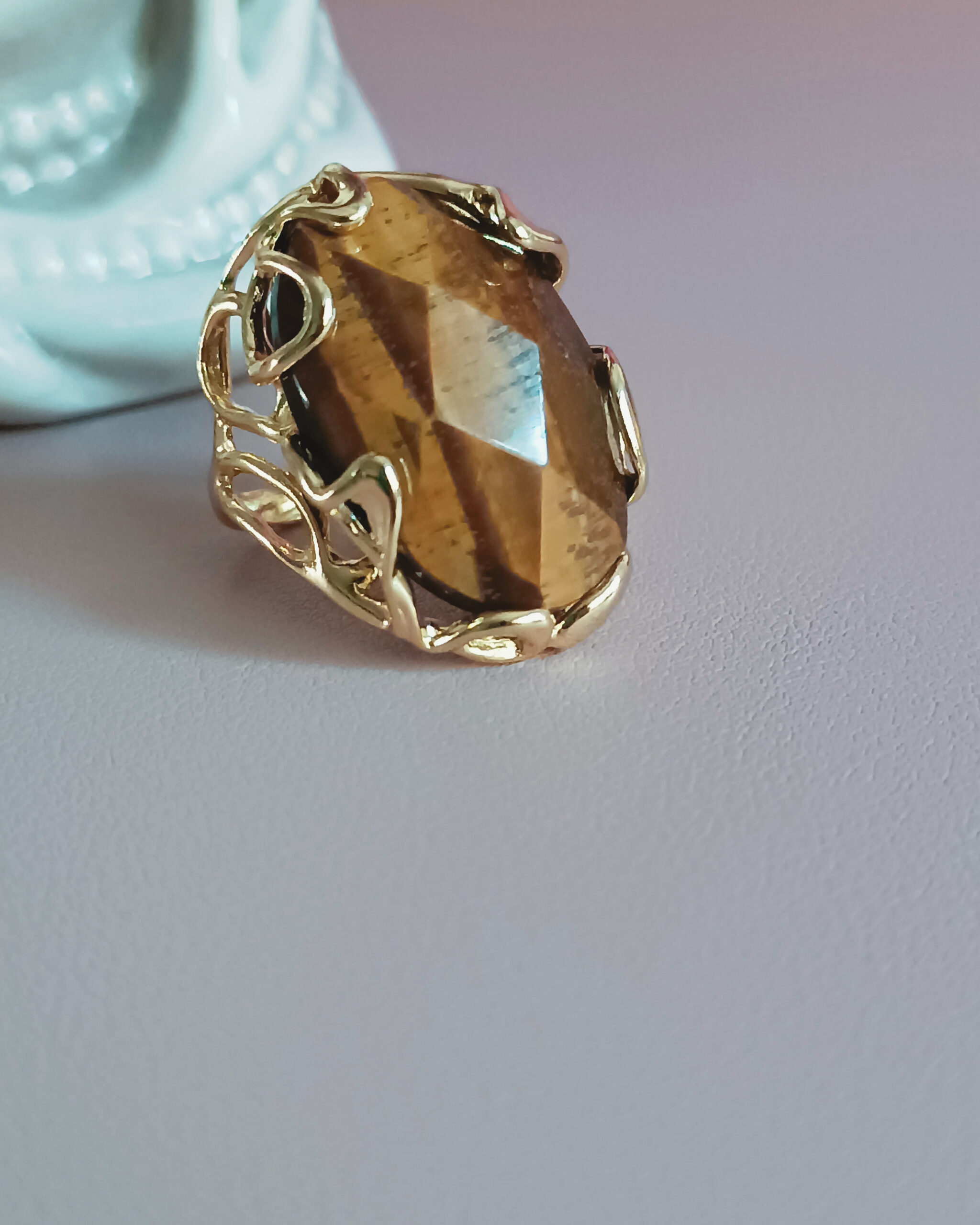 Statement Oval Ring with Tiger’s Eye Stone