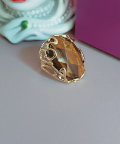 Flashy ring with a wonderfully iridescent colored stone, the Tiger’s Eye, named precisely for its incredible resemblance to the eyes of the animal of the same name.