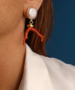 Earrings of innate beauty, very refined, made of the finest materials: river pearls and Italian coral branches.