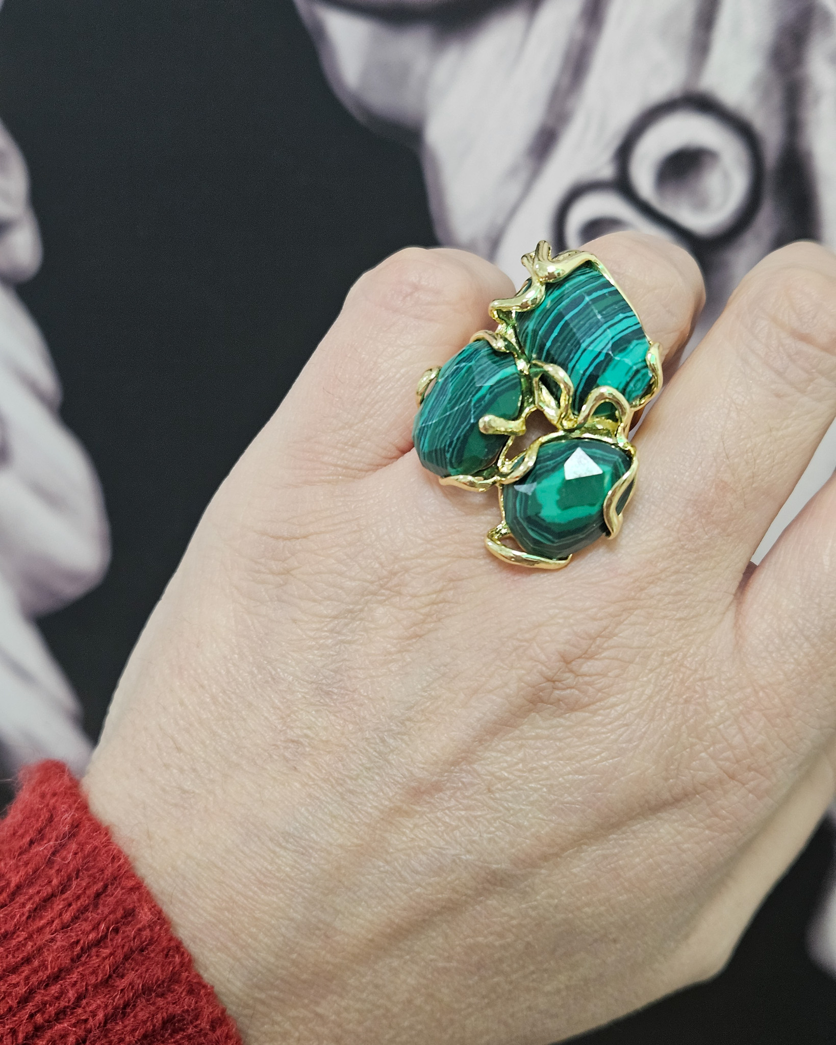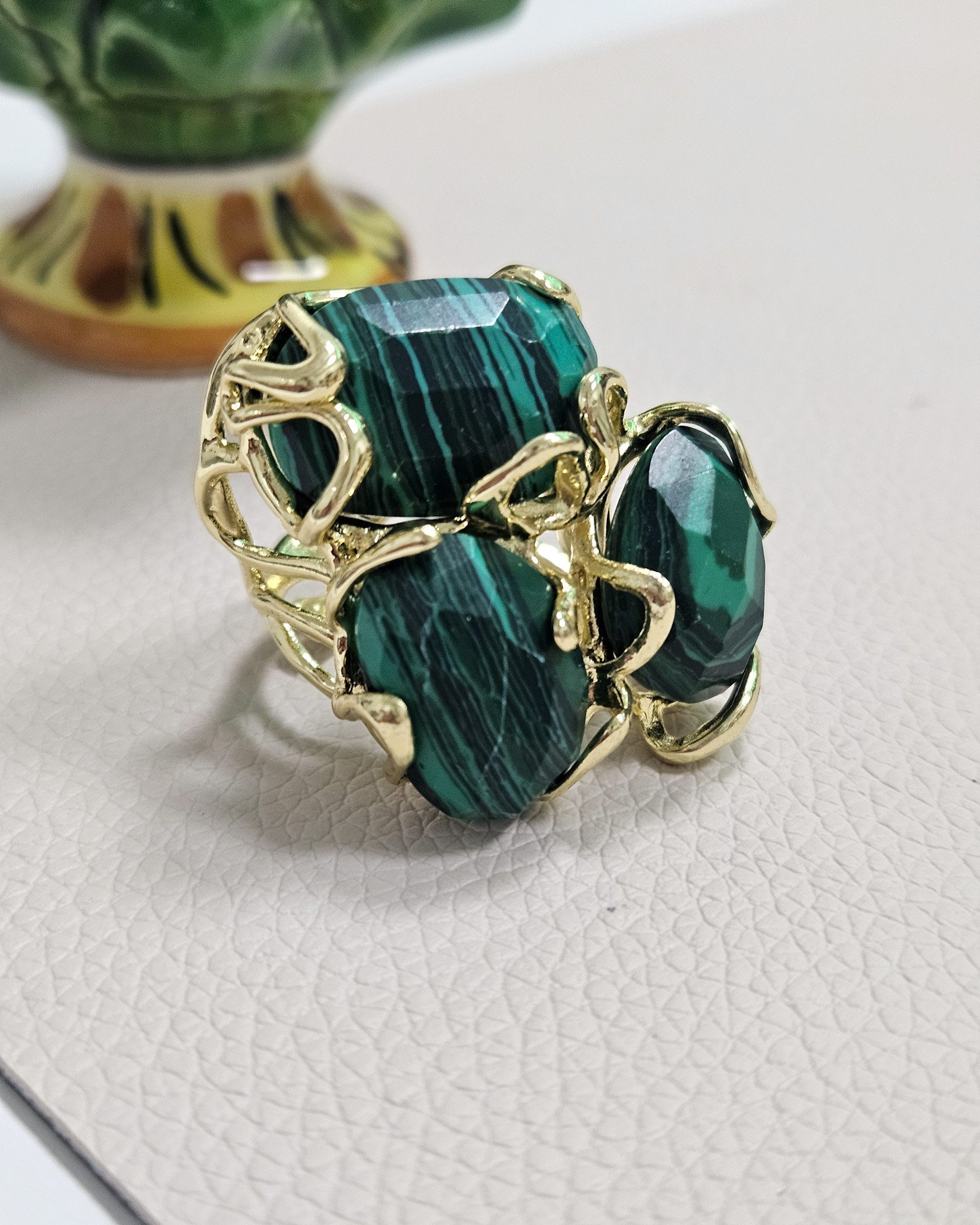 Statement Ring with Malachite Stones
