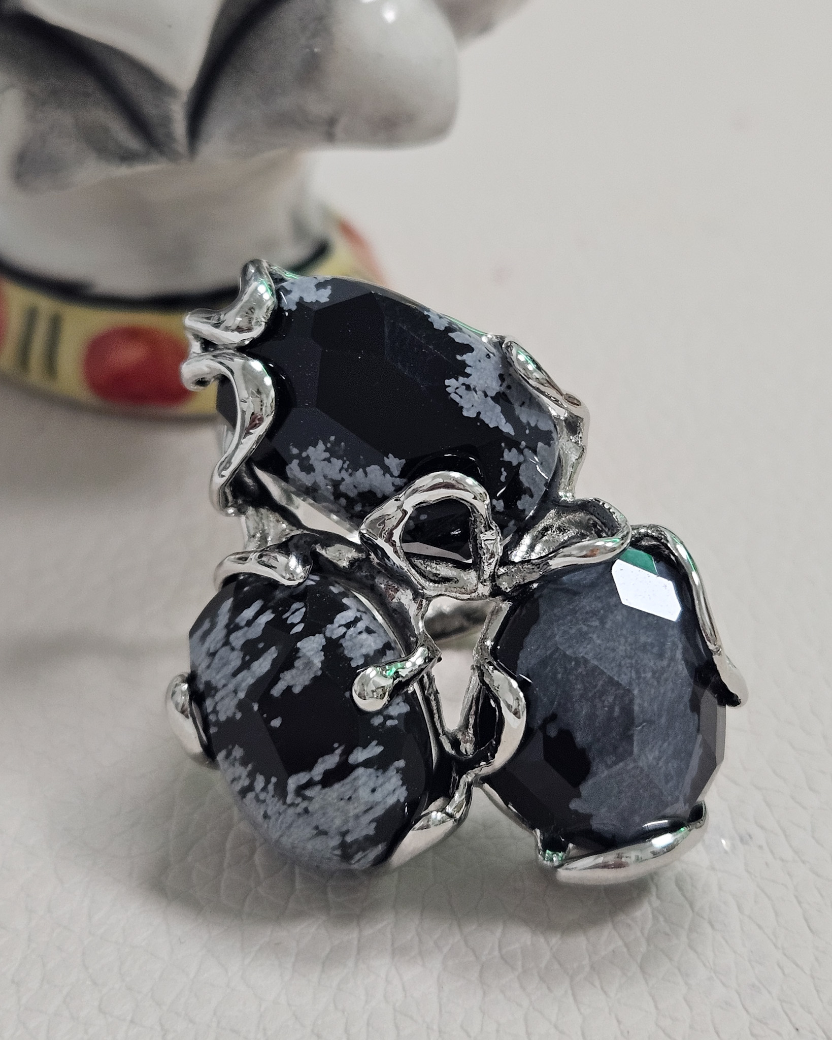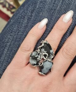 Moss agate is a truly fascinating stone, whose inclusions resemble moss and woods, evoking thoughts of roots, growth, and regeneration. Sometimes moss agate can have such dense inclusions or dark coloring that it appears almost black to the eye, as in this case.