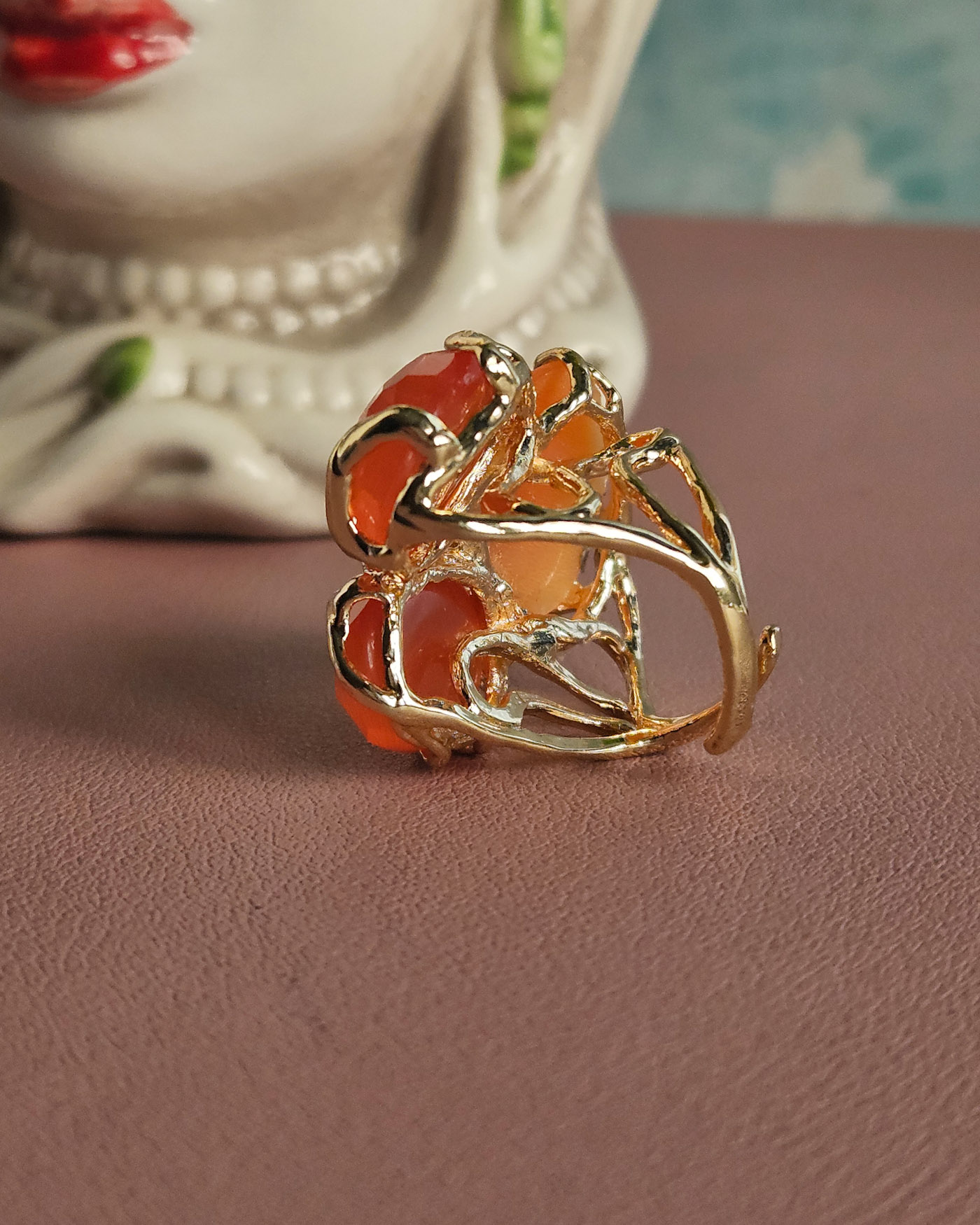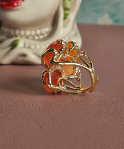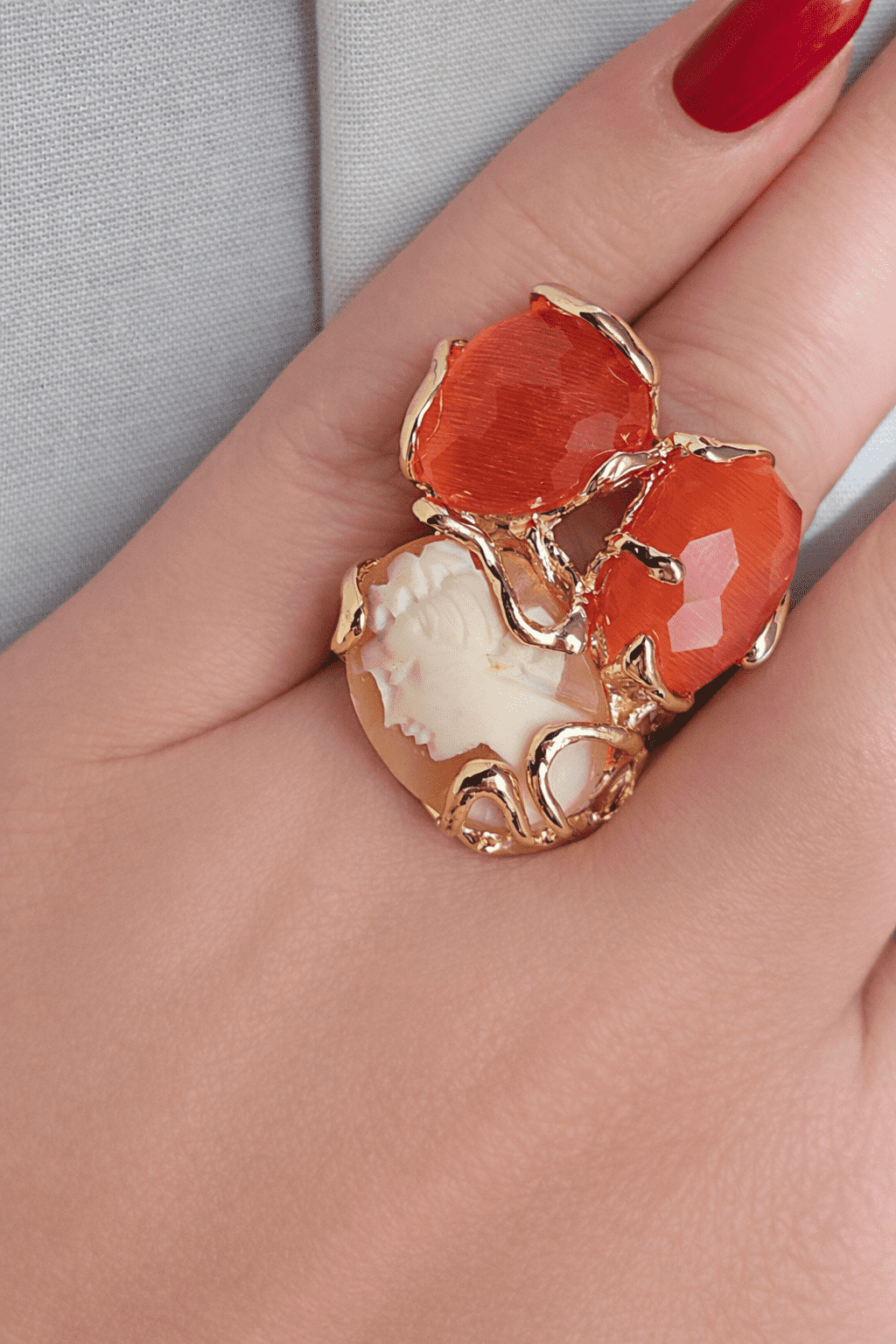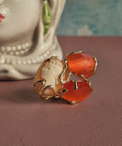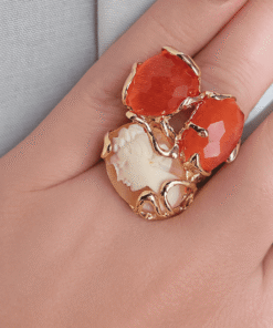 Statement Ring with Orange Chrysoberyl Stones and Shell Cameo
