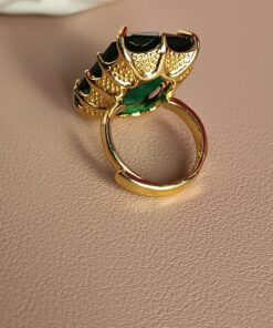 Very stylish ring handmade from Brass and rectangular Crystal stone, green color.