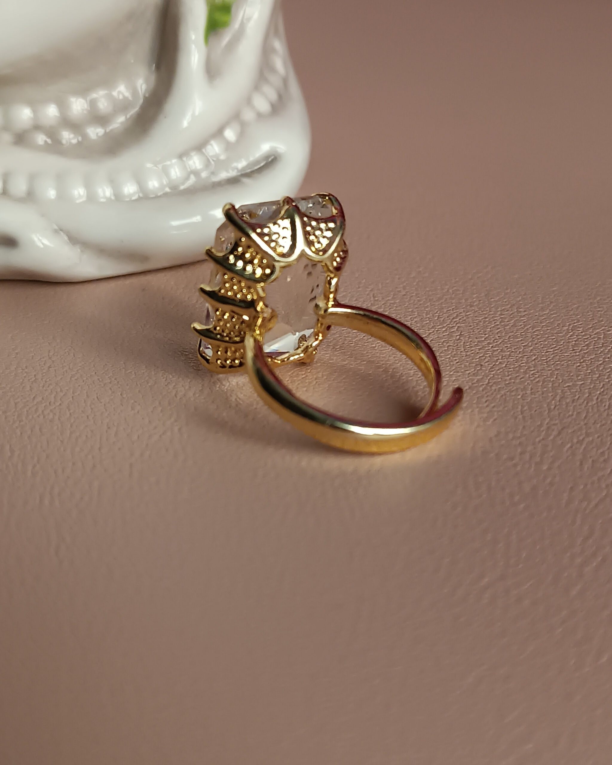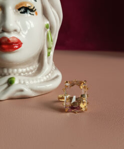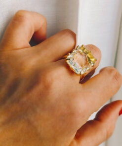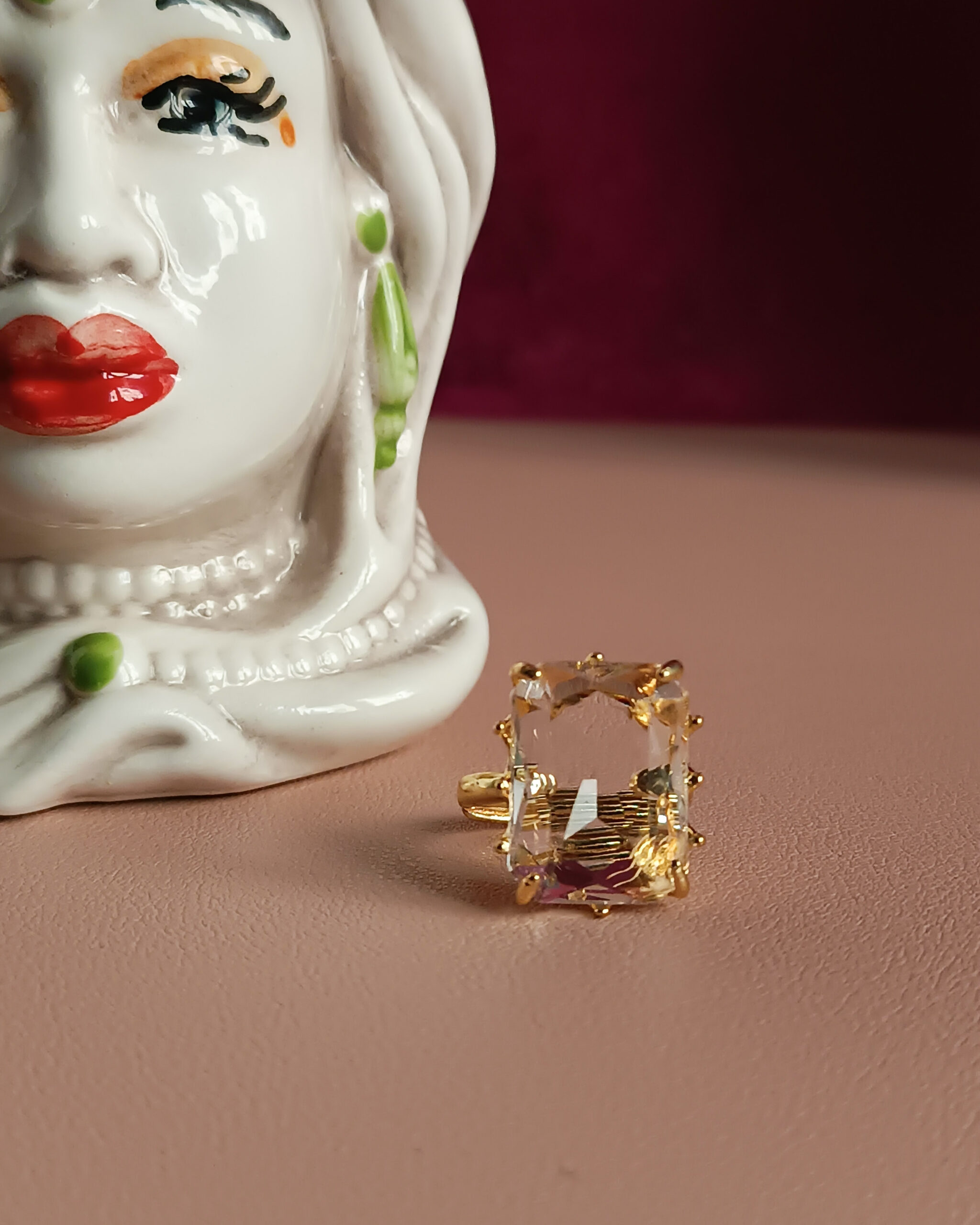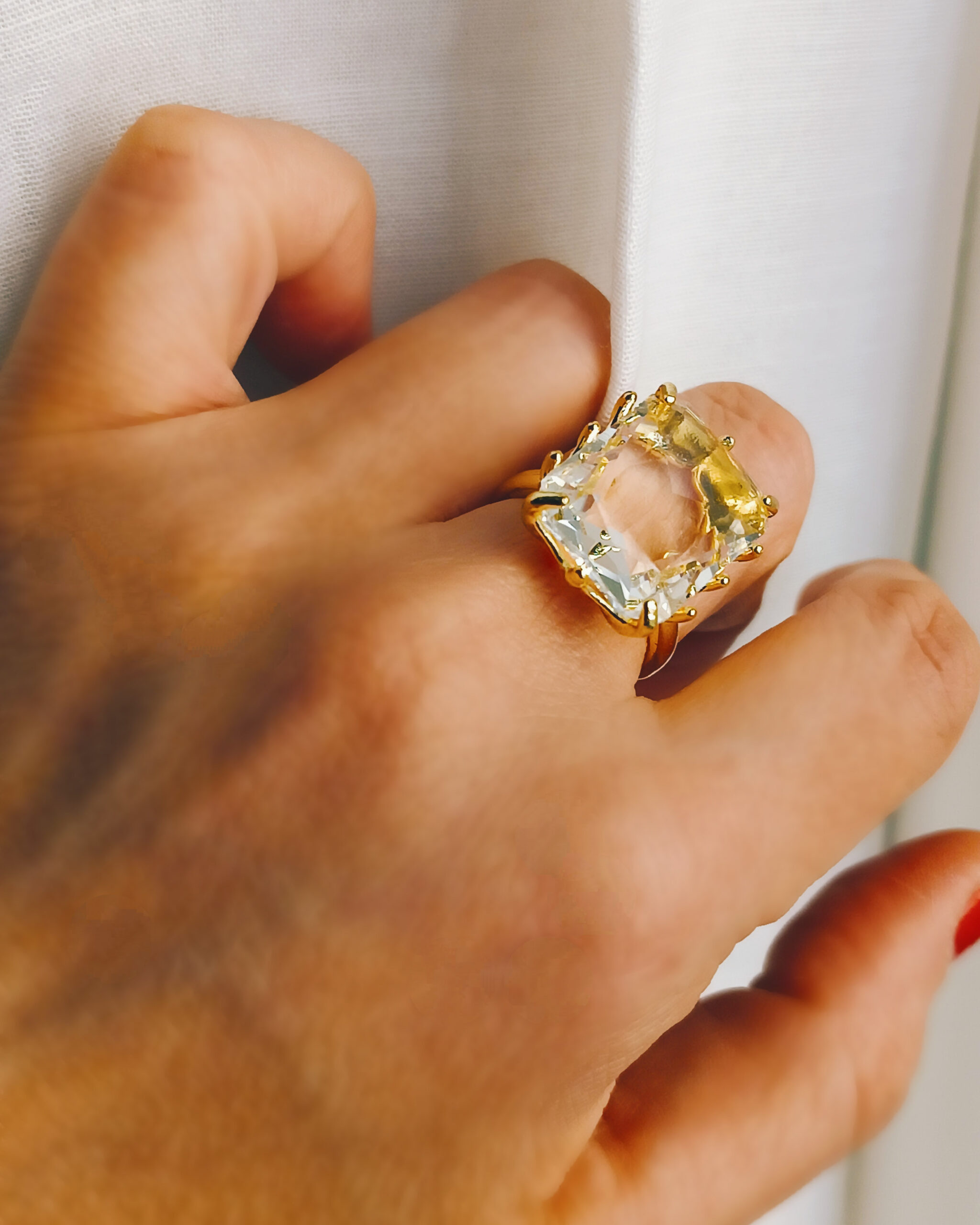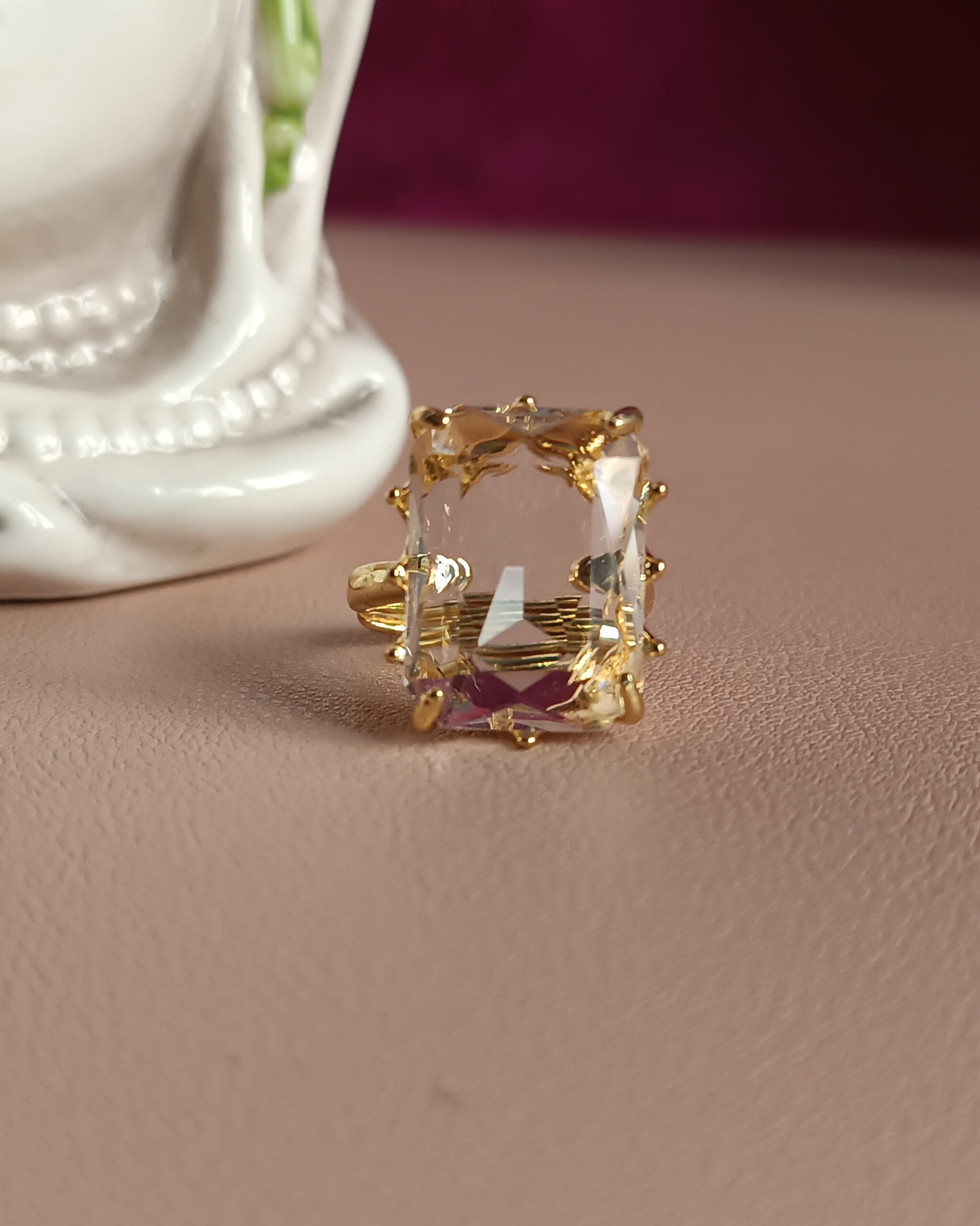 Very stylish ring handmade from Brass and rectangular Crystal stone, transparent color.