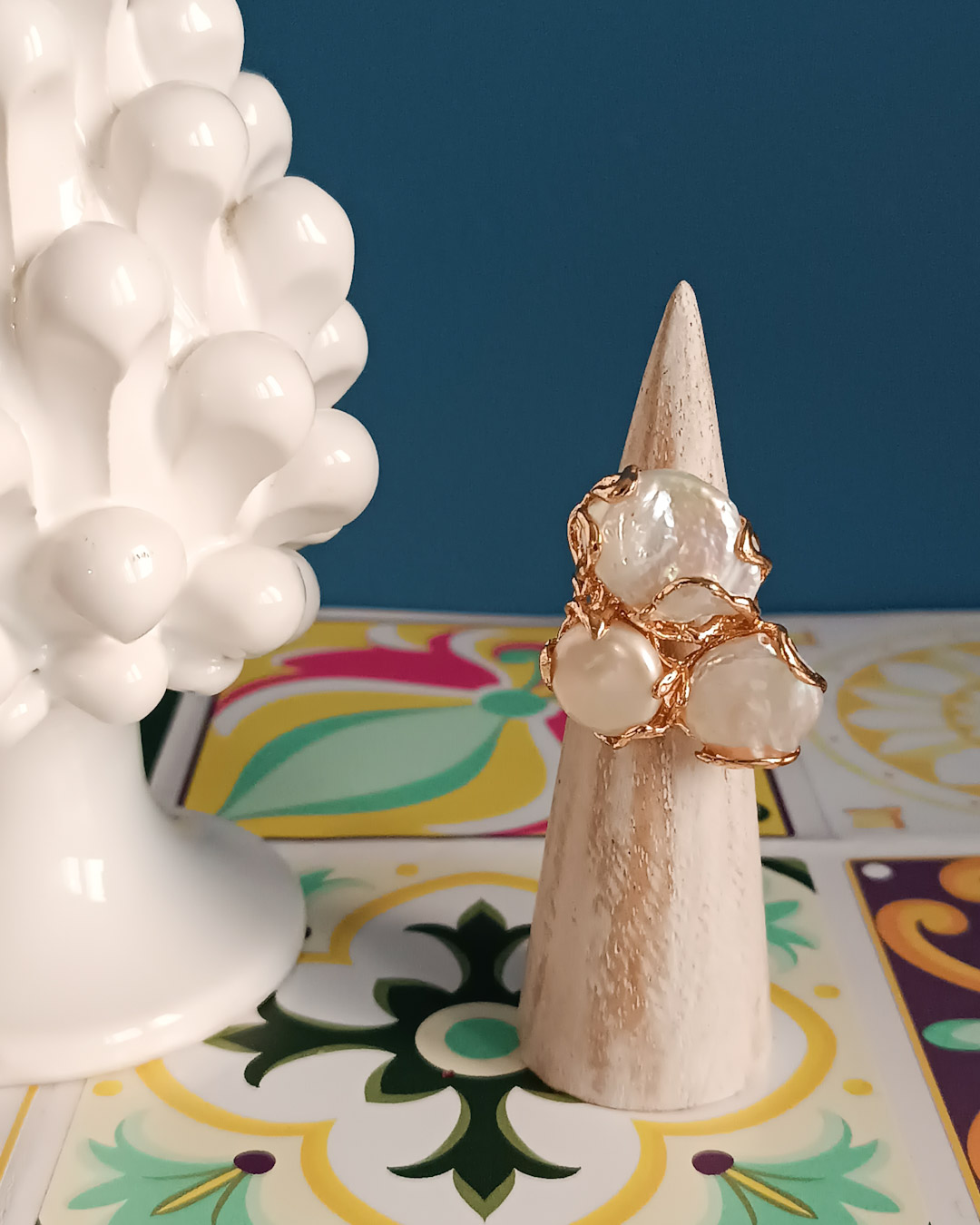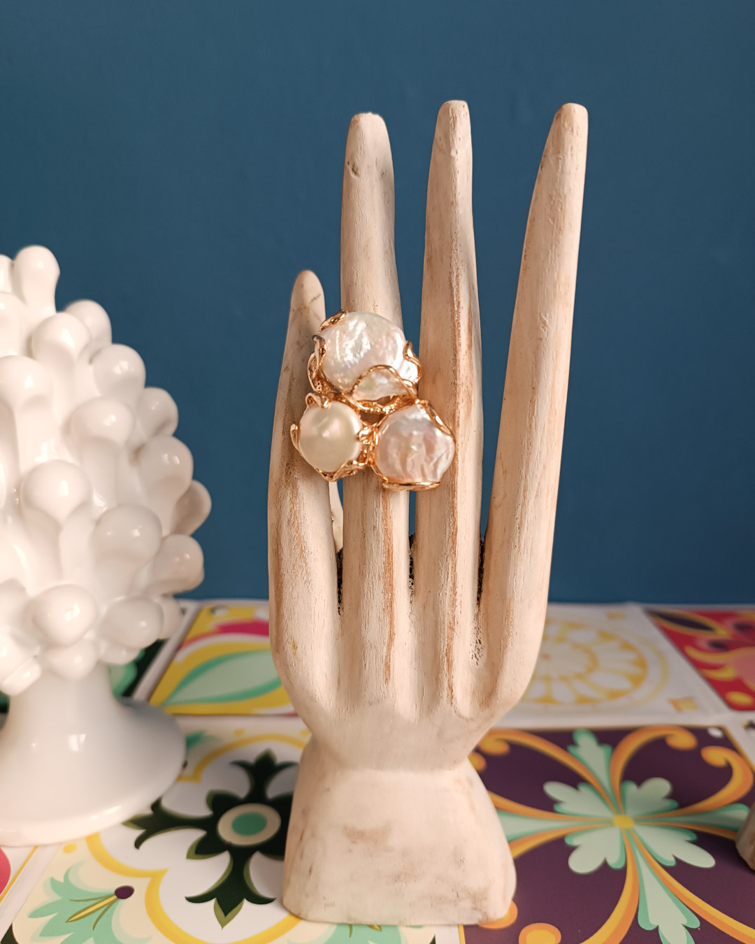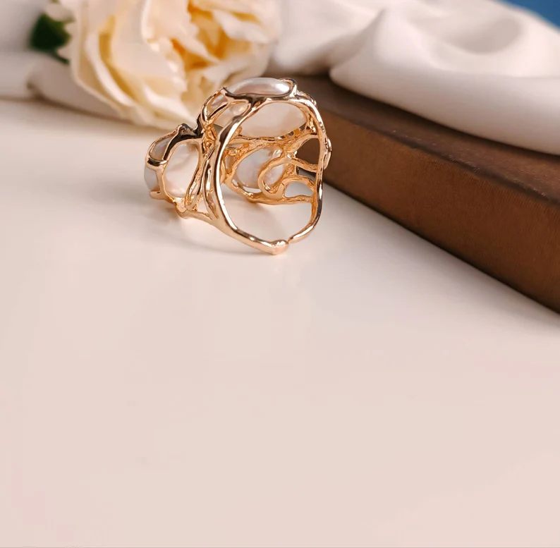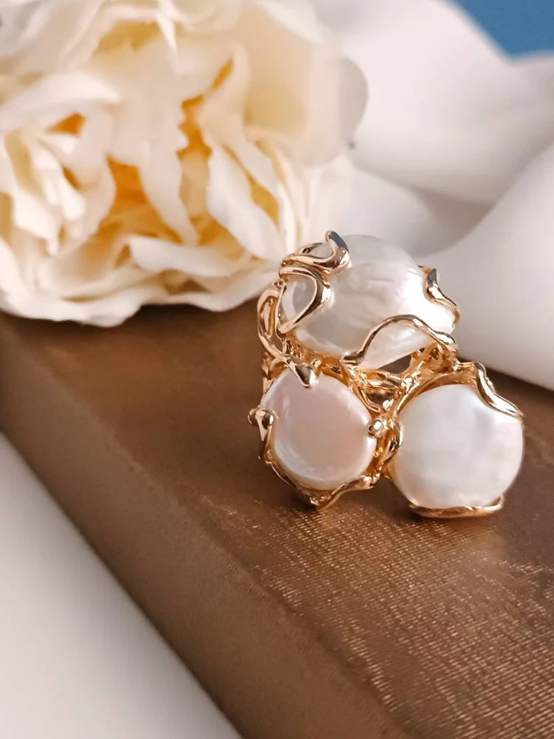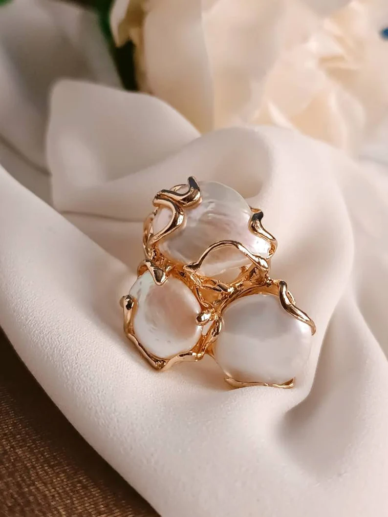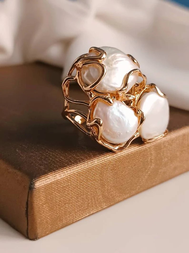 Statement Ring with Three Baroque Pearls