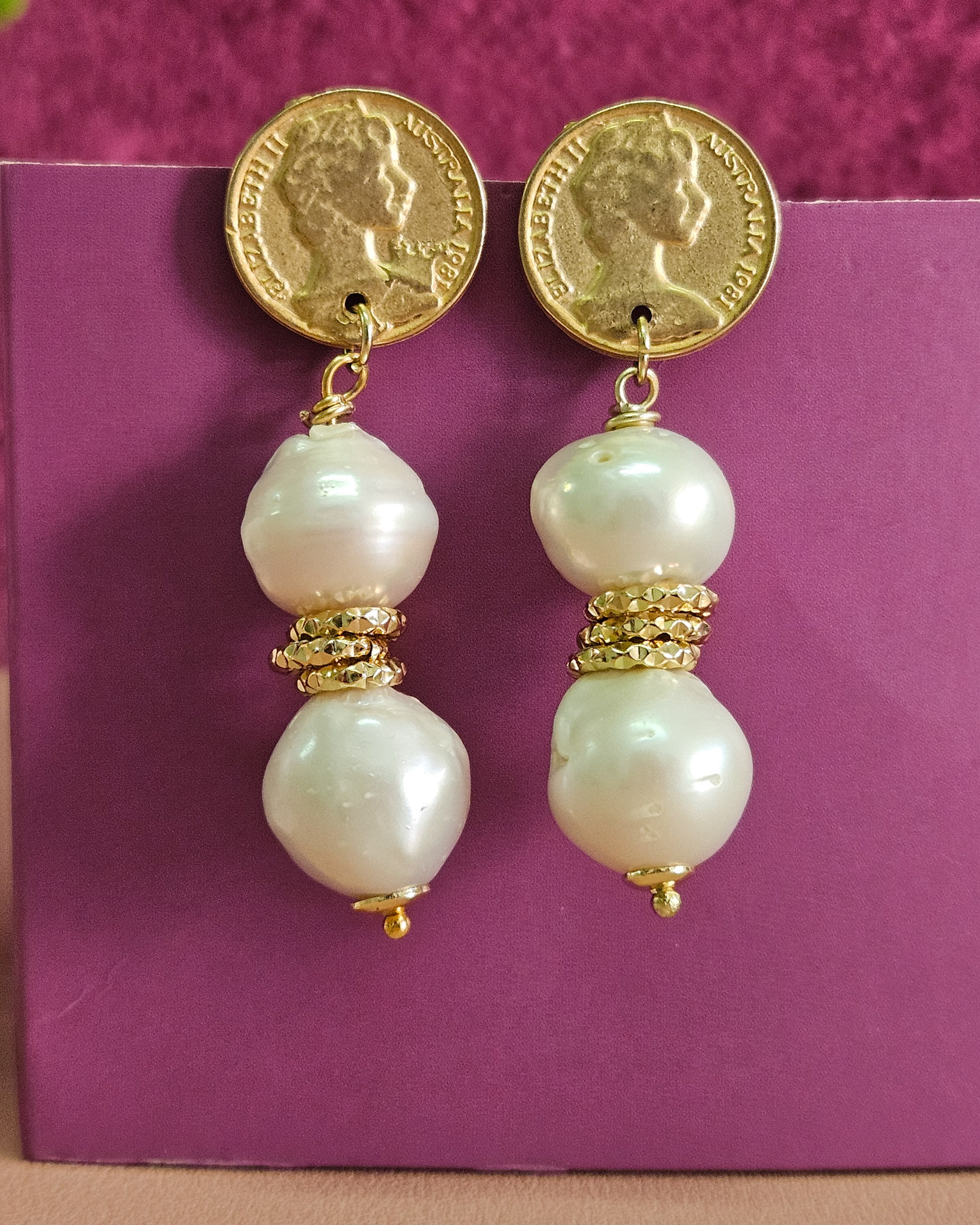 Two Baroque Pearl Earrings with Coins