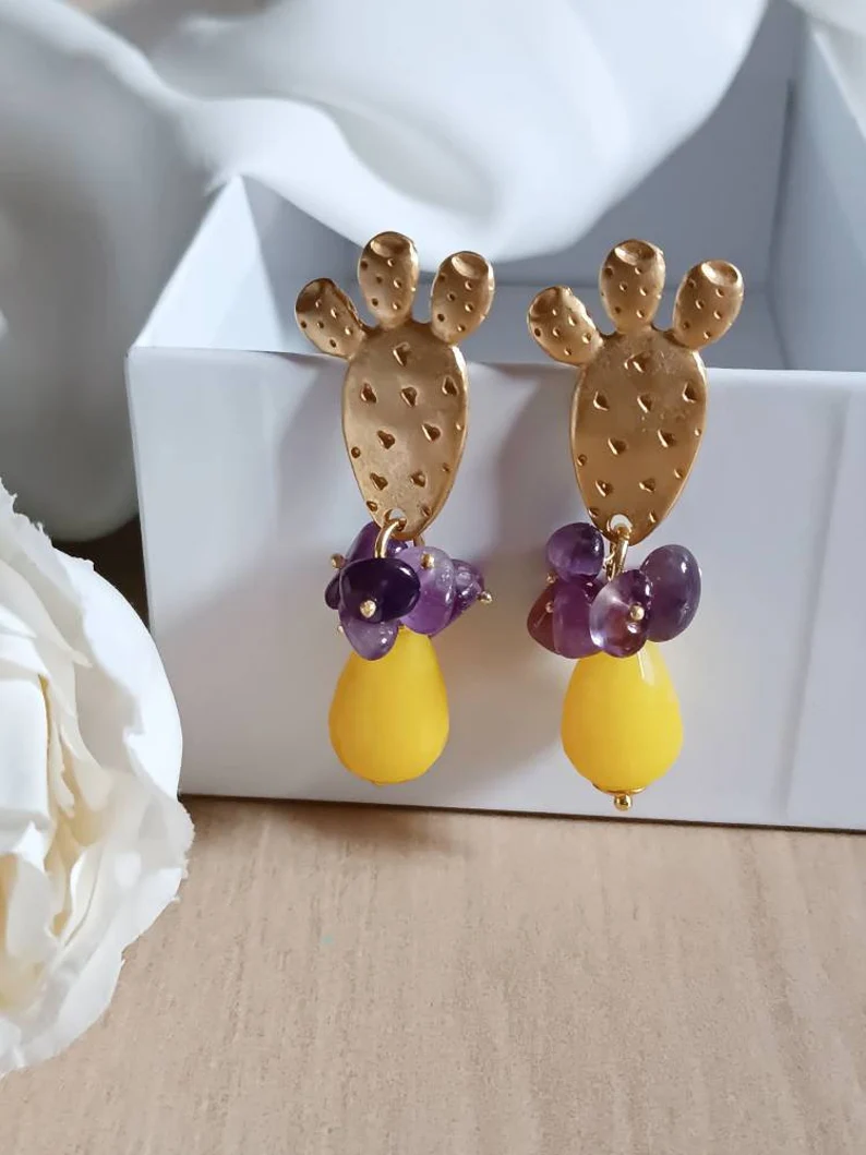Lovely drop earrings with cute pins in the shape of a Sicilian prickly pear.