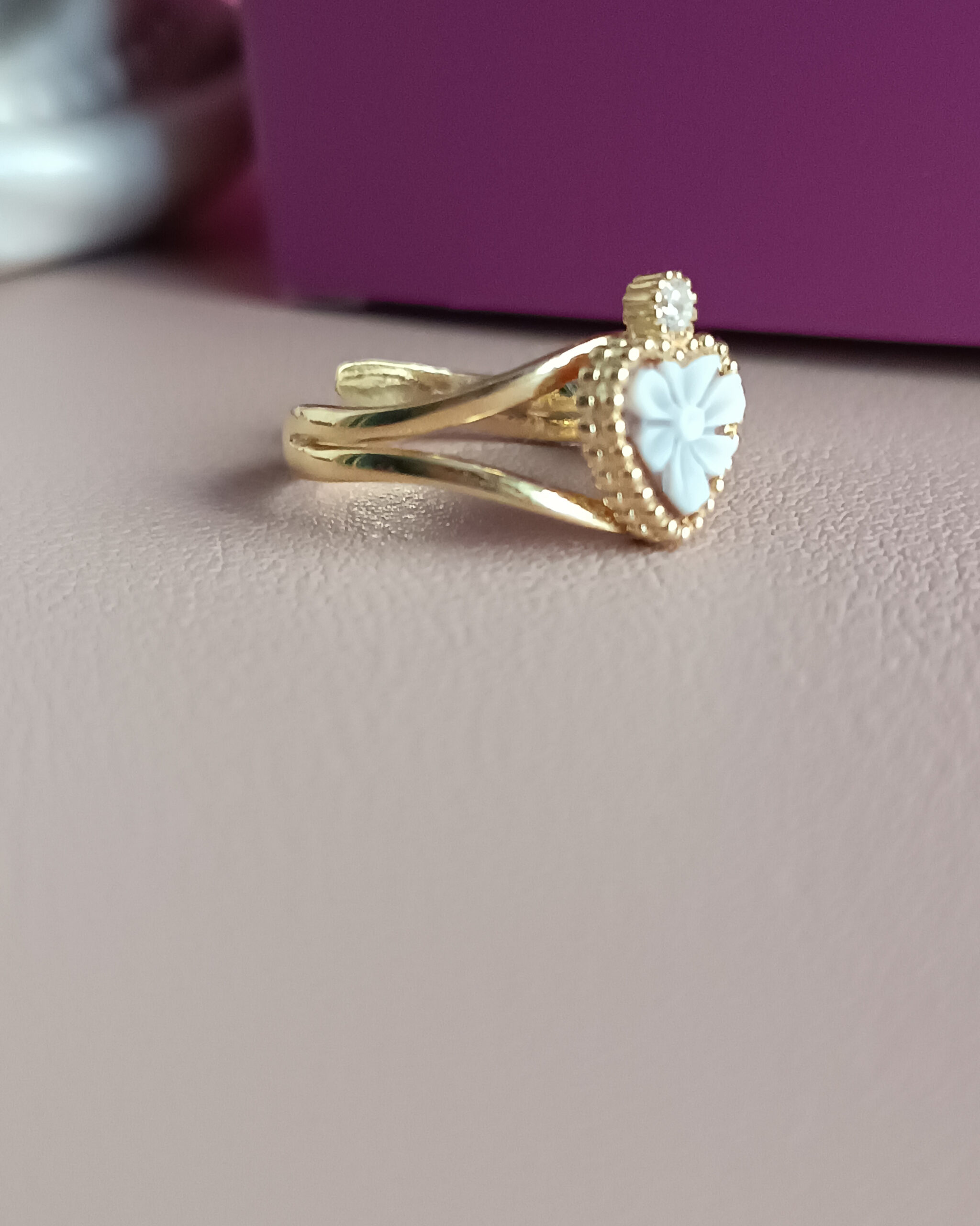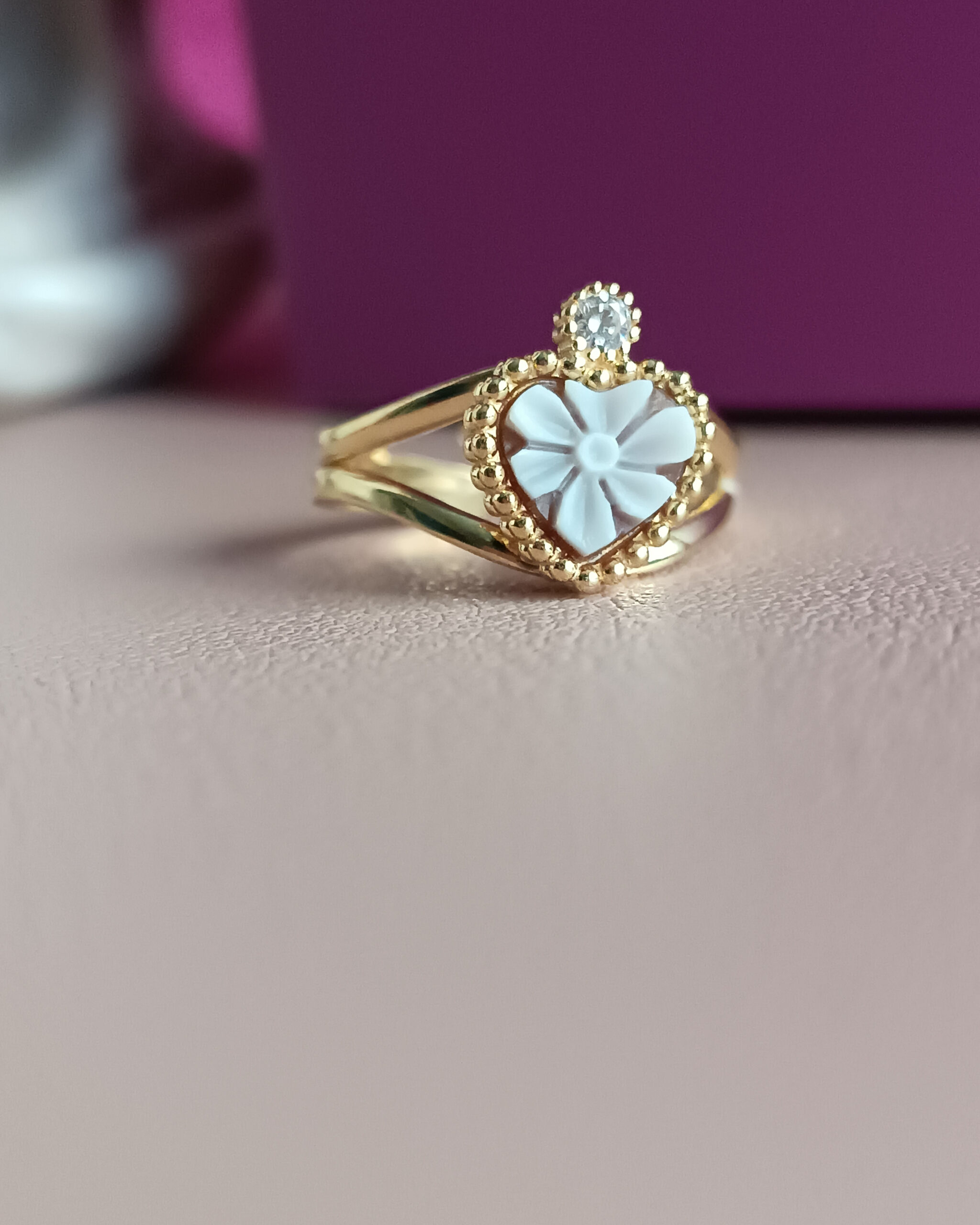 Anello a Cuore con Cammeo Fiore in Conchiglia Sardonica
