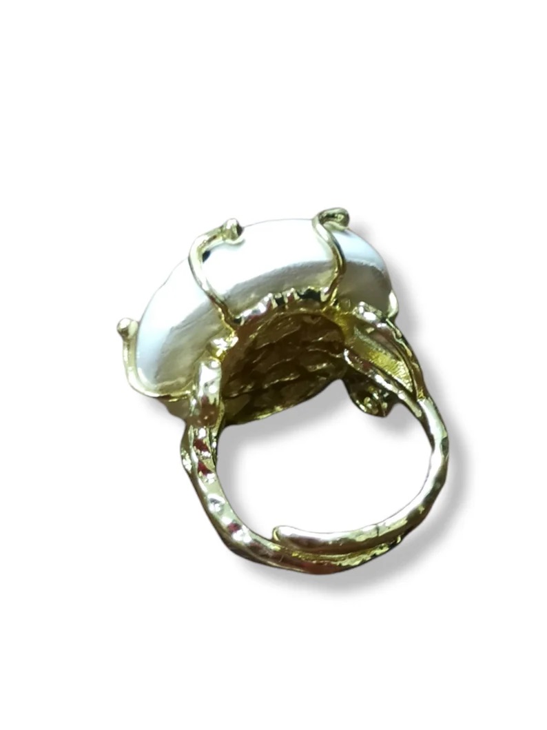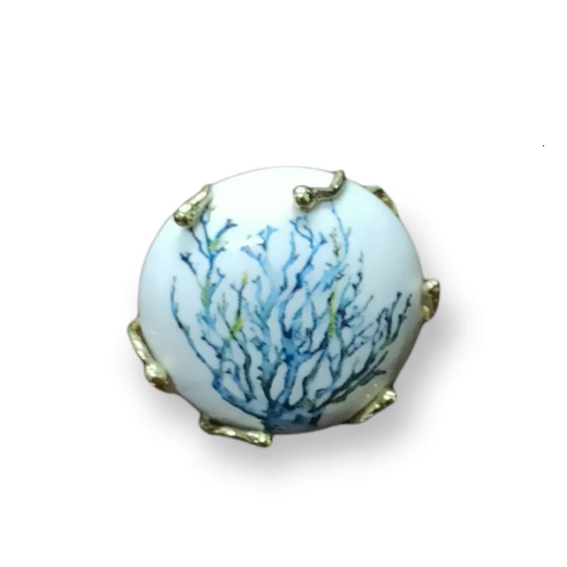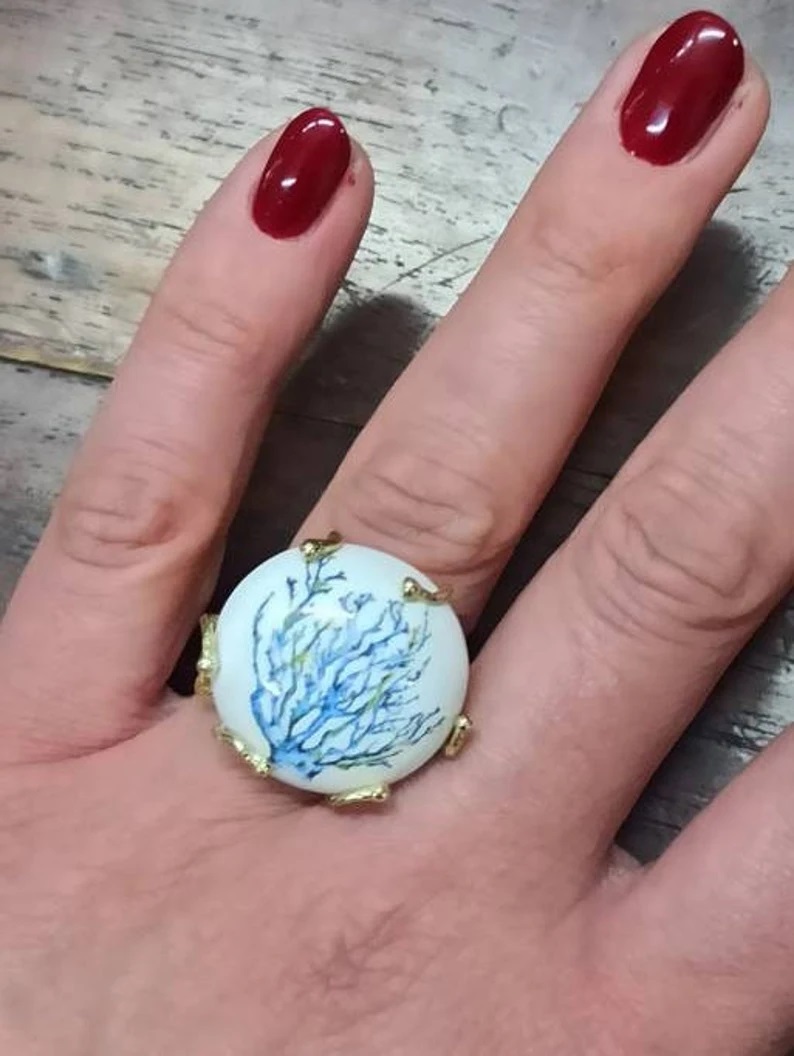Anello in Ottone con Ceramica di Caltagirone con stampa del Corallo blu.