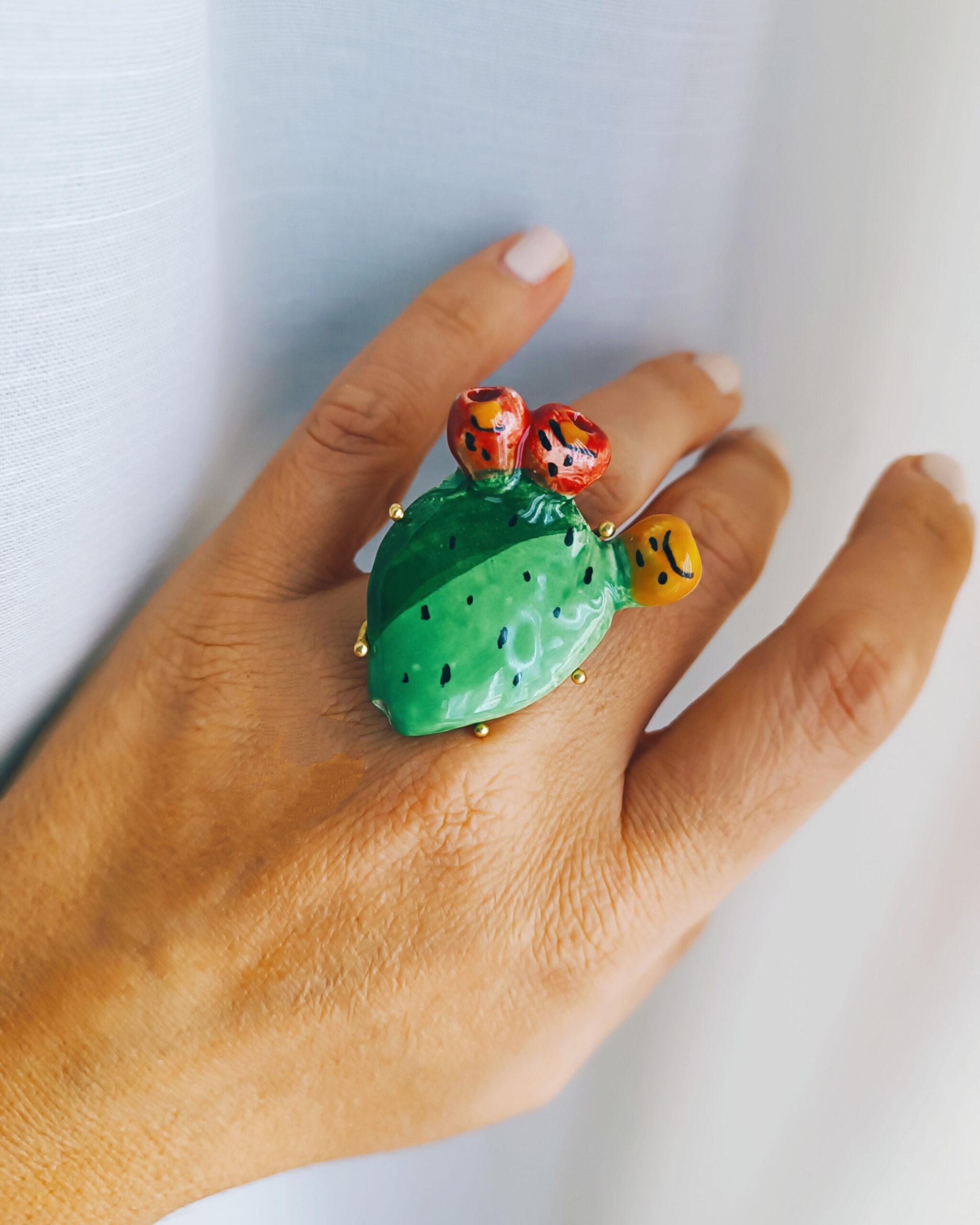 Un classico di Chapeau: l’anello con Fico d’India in Ceramica di Caltagirone.