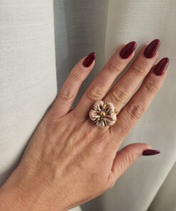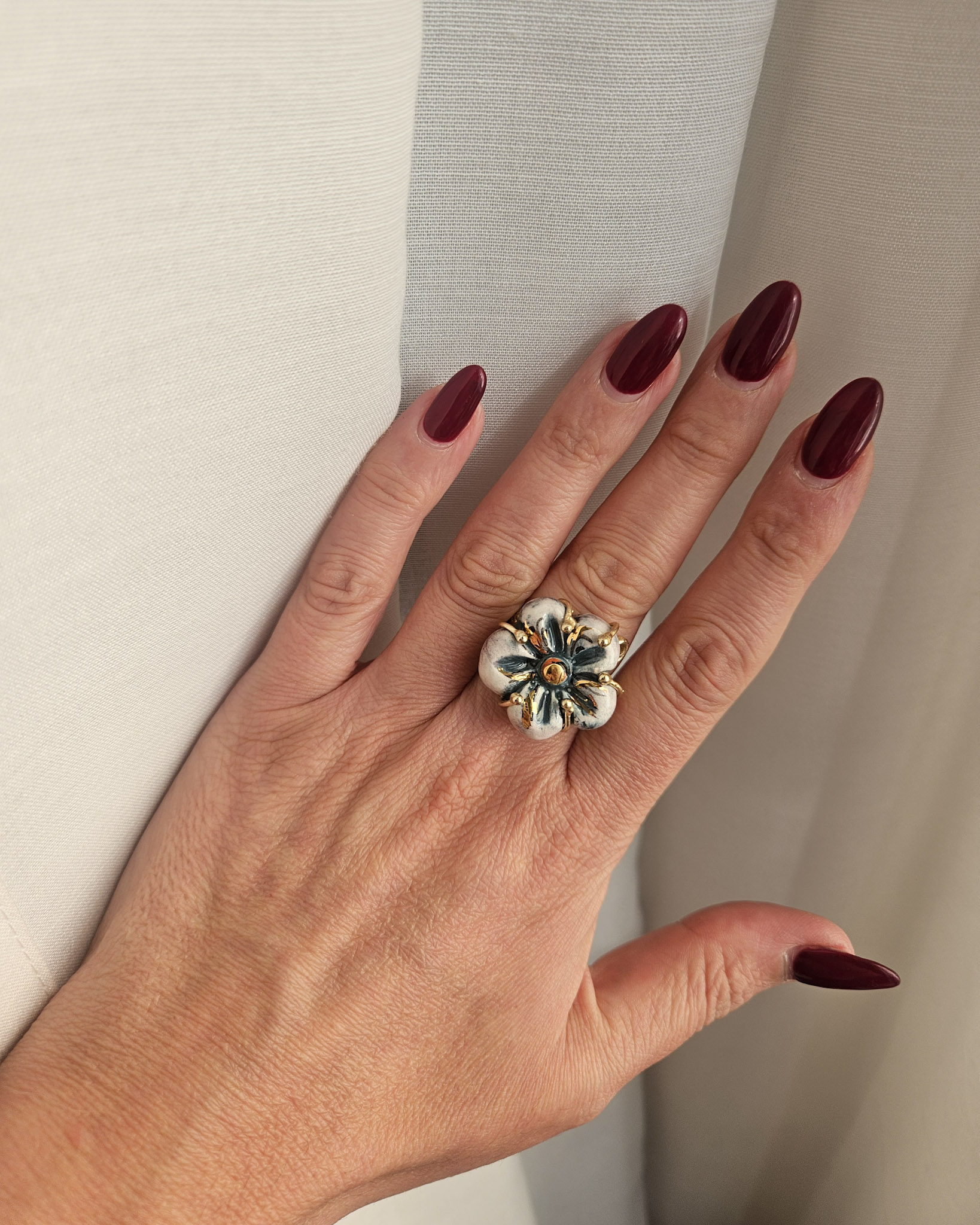 Questo incantevole anello artigianale in ceramica di Caltagirone rappresenta una fusione perfetta tra tradizione e design moderno. Realizzato interamente a mano con pazienza e attenzione ai particolari, l’anello prende vita in una raffinata forma di rosa, simbolo di bellezza e amore eterno. Ogni dettaglio è curato con passione e precisione, rendendo ogni pezzo assolutamente unico.