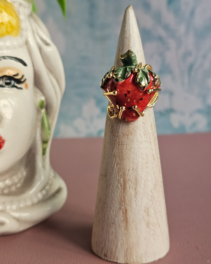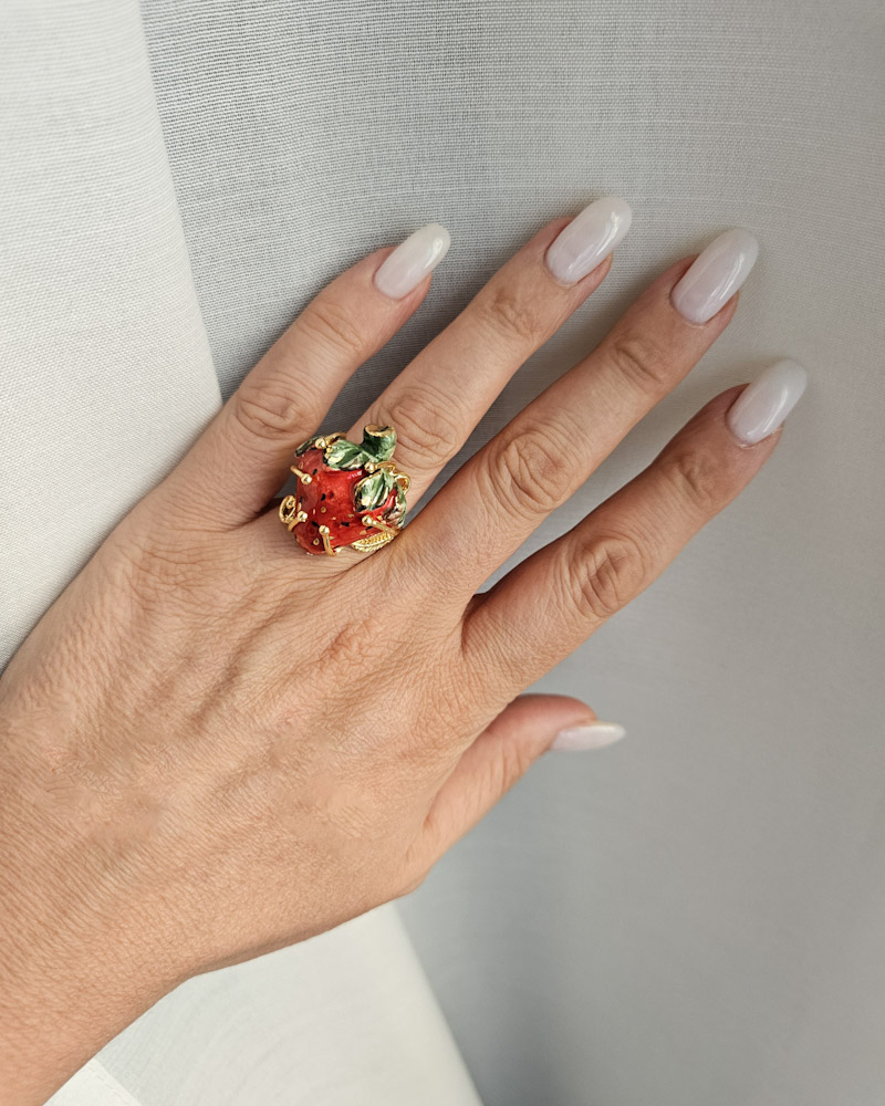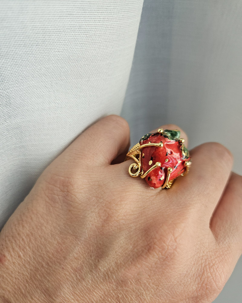 Una meravigliosa fragola al dito che abbellirà le tue mani con originaità e grande stile.