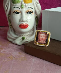 Anello artigianale con Mattonella Sant’Agata in Ceramica di Caltagirone