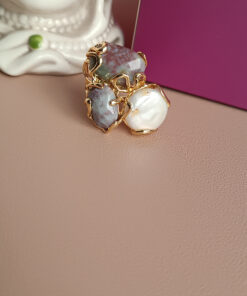 Anello in Ottone con Agata Indiana e Perla Barocca Piatta