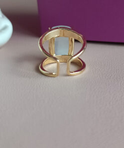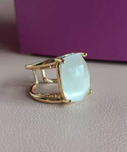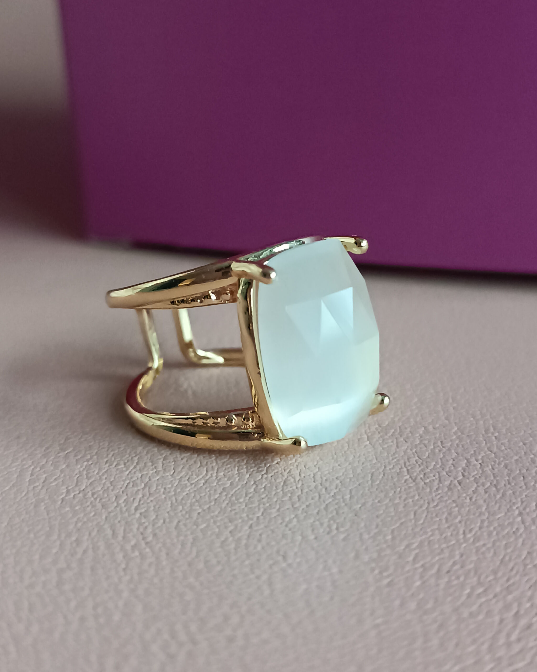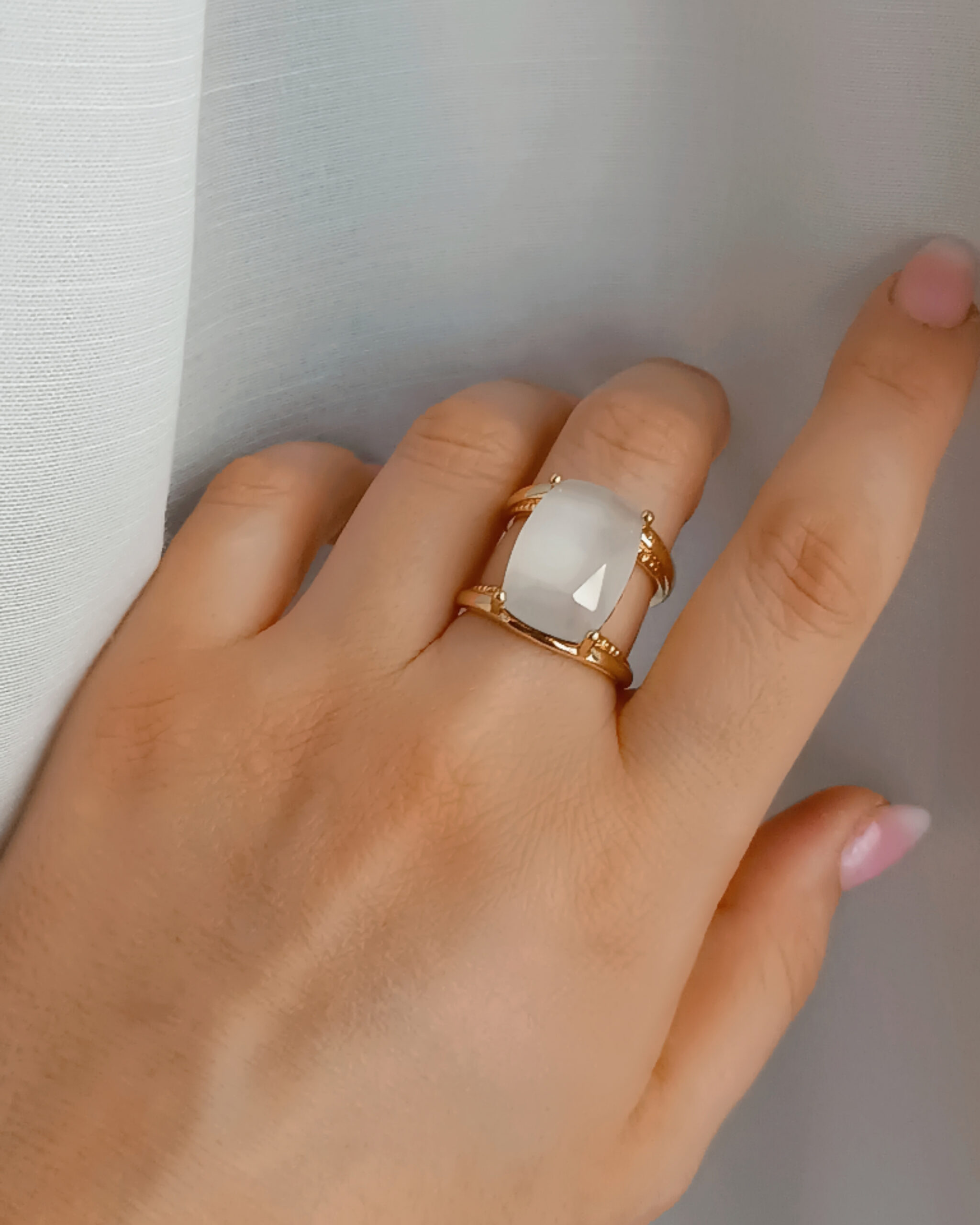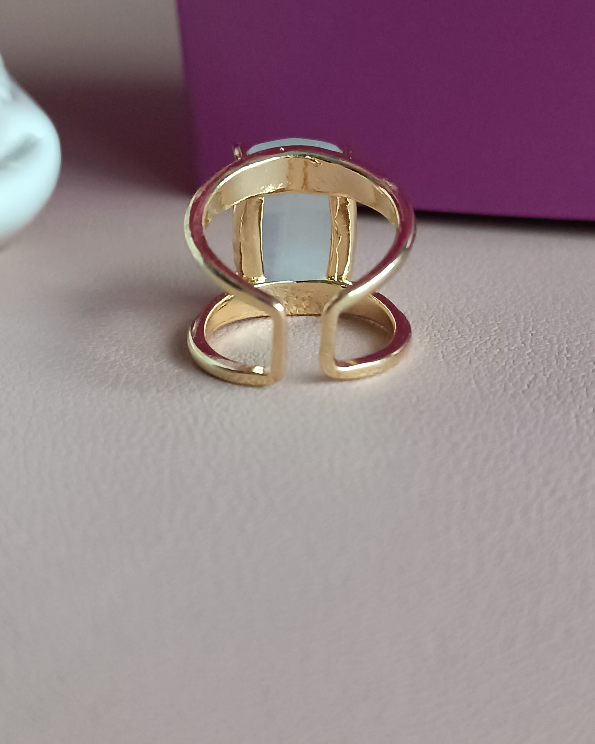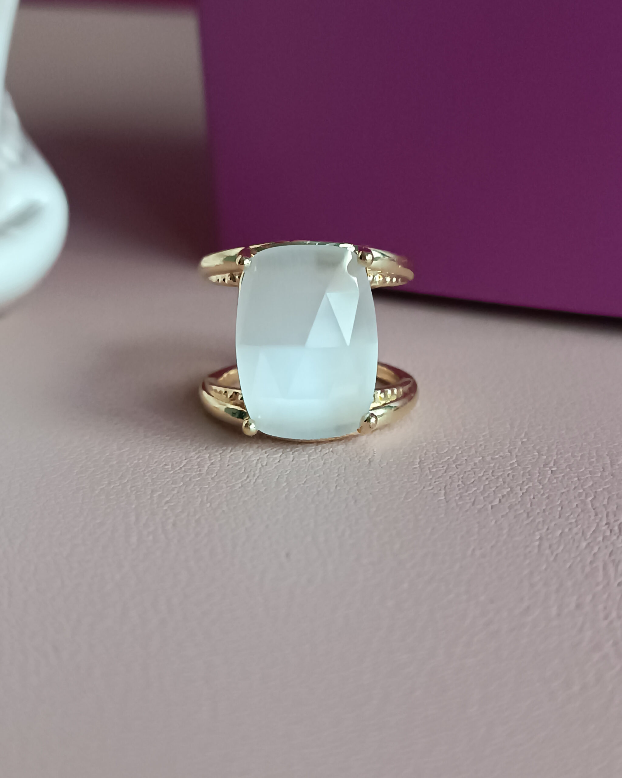 Anello super chic realizzato in Ottone con pietra bianco centrale Occhio di Gatto di forma rettangolare.