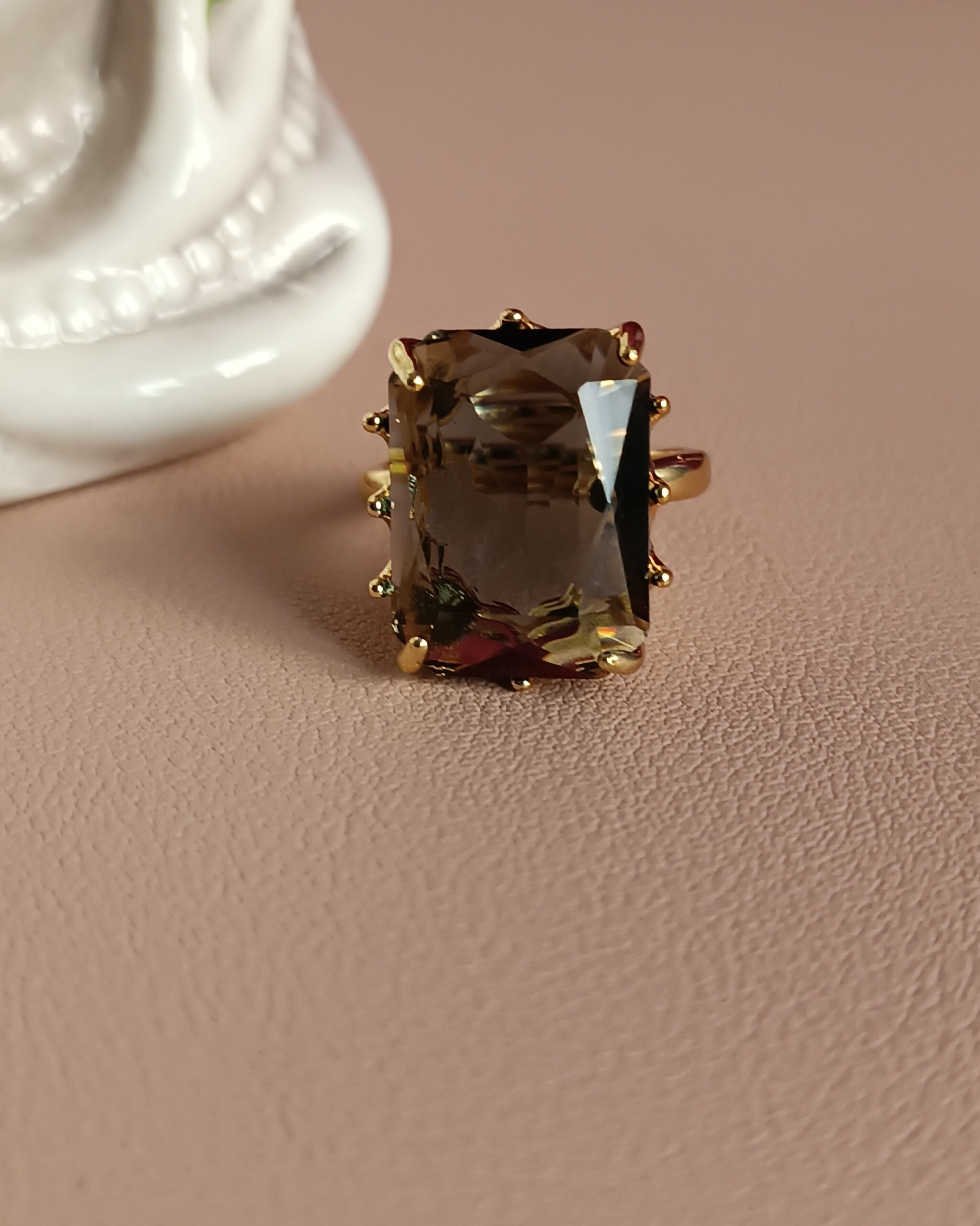 Anello in Ottone con Pietra Rettangolare Cristallo Grigio