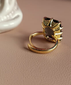 Anello geometrico realizzato in Ottone con cristallo grigio di forma rettangolare (15 mm x 20 mm).