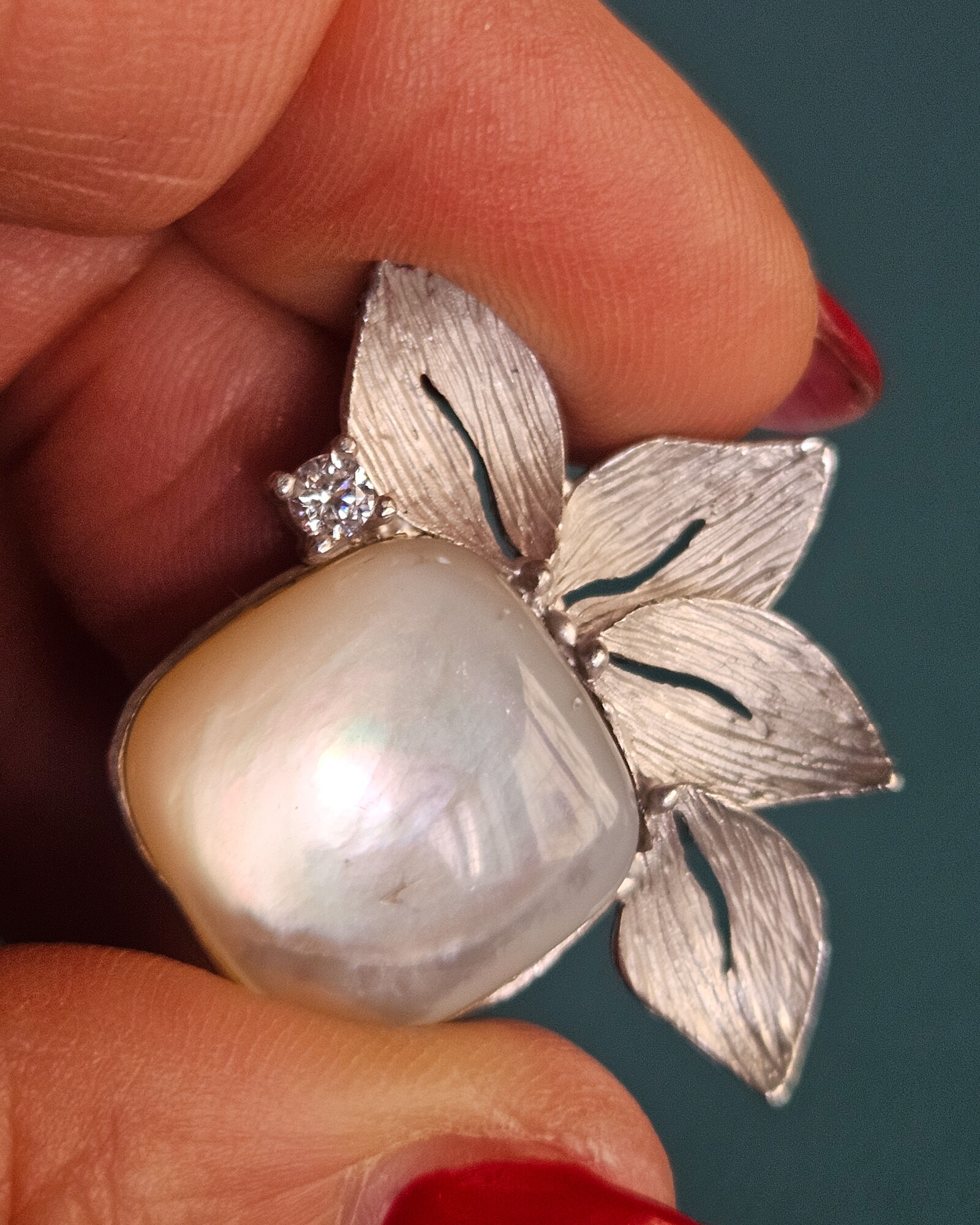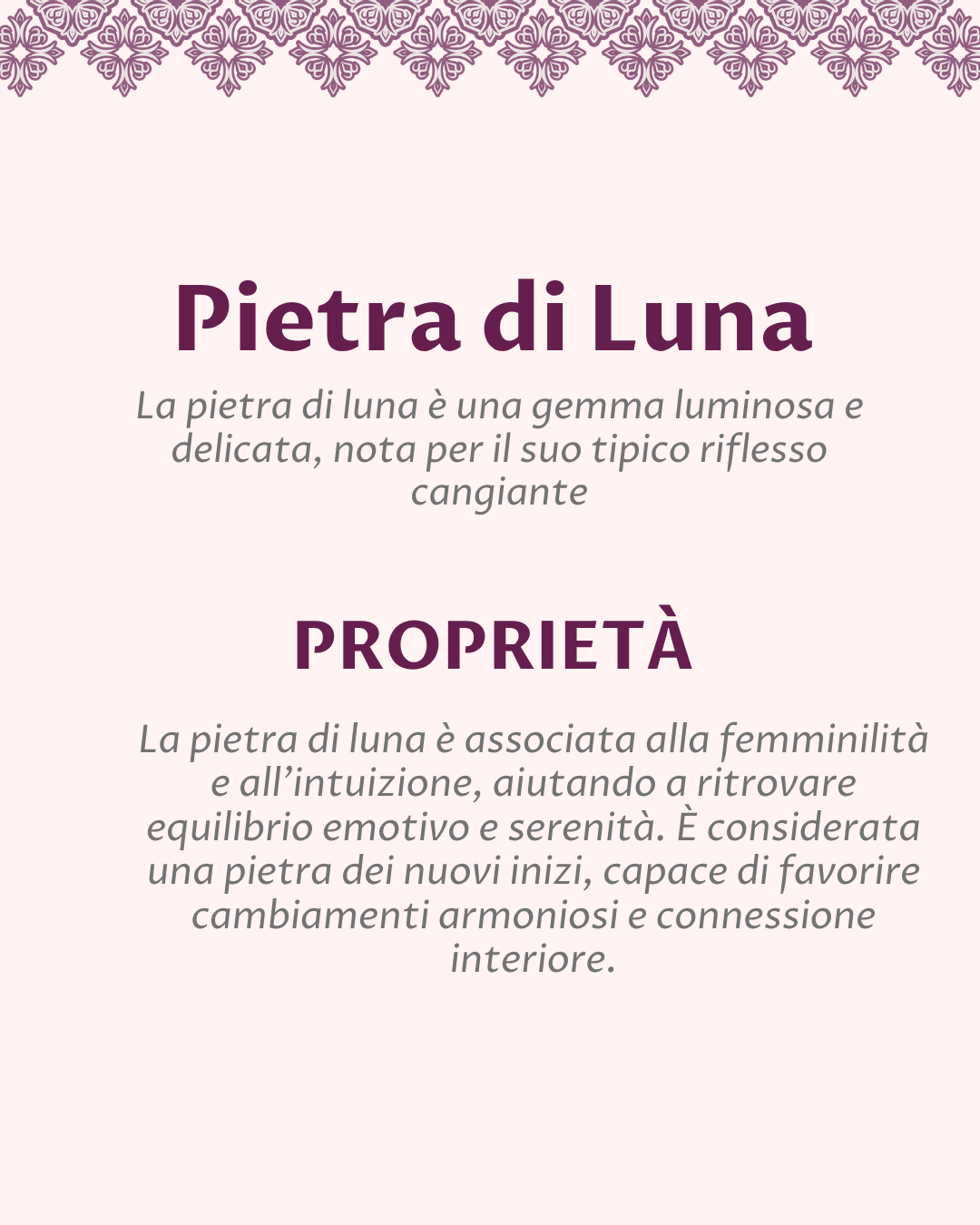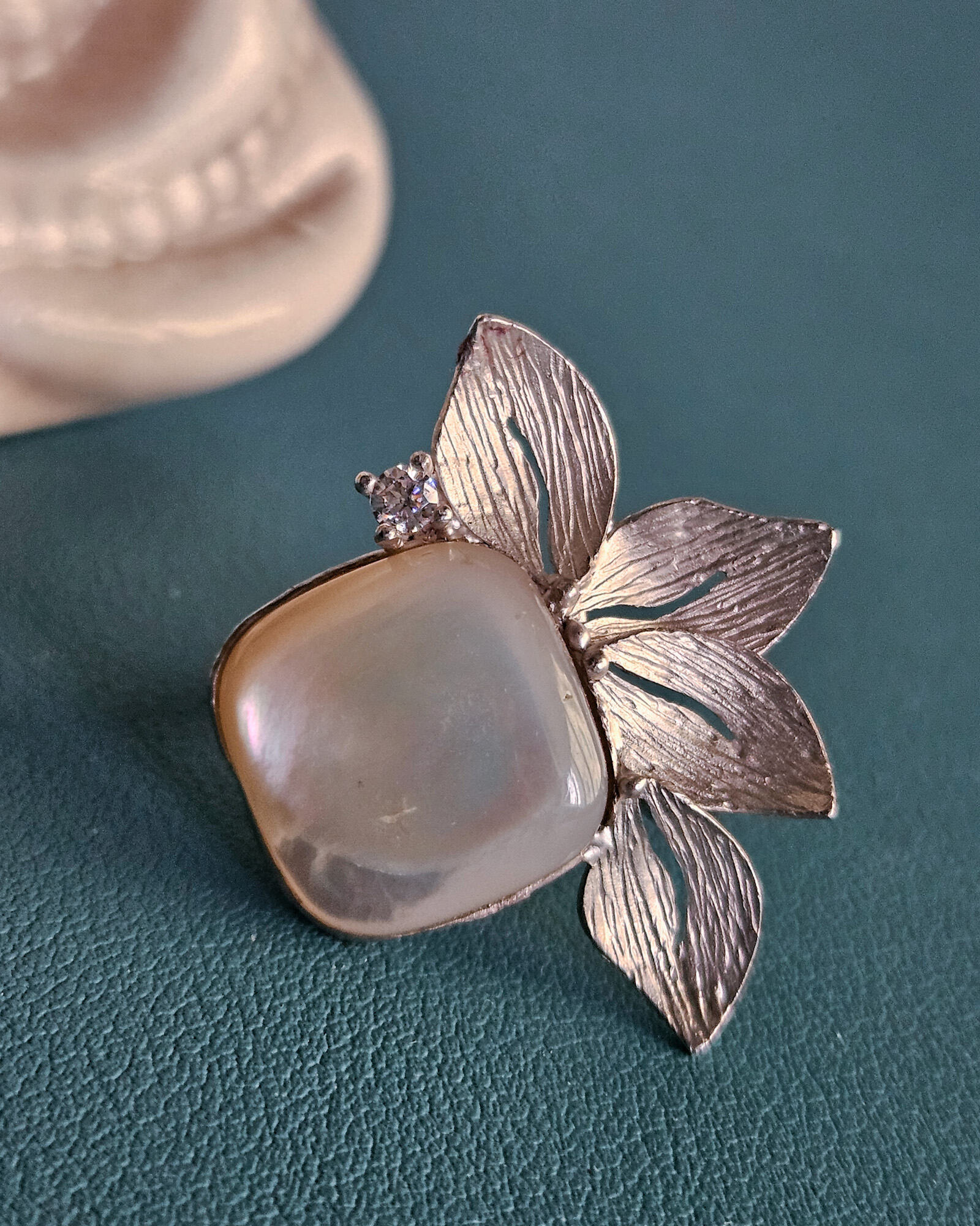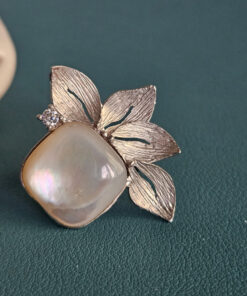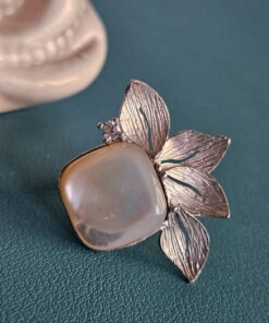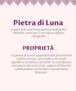 Al centro, la pietra di luna sprigiona il suo fascino etereo: riflessi lattiginosi e cangianti che donano profondità e mistero, evocando una bellezza raffinata e senza tempo. È una presenza luminosa ma discreta, perfetta per chi predilige dettagli ricercati e mai scontati.