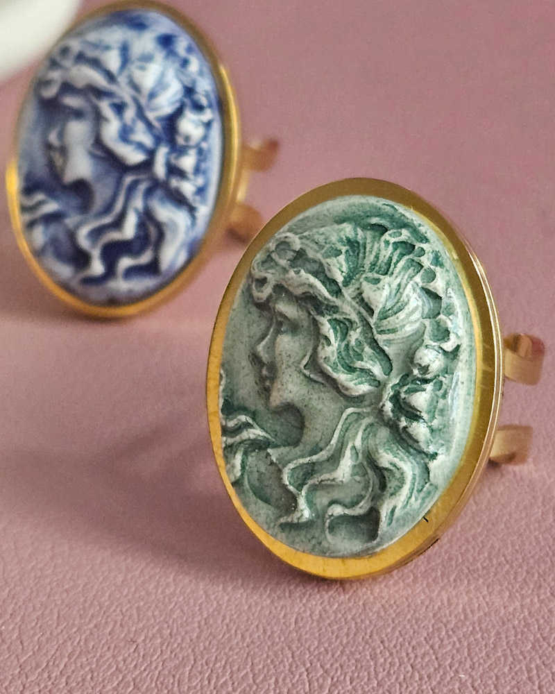 Anello Ovale in Acciaio con Cammeo in Ceramica di Caltagirone