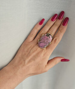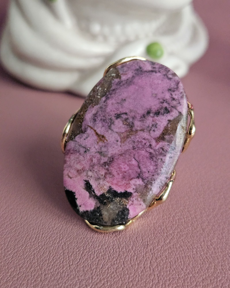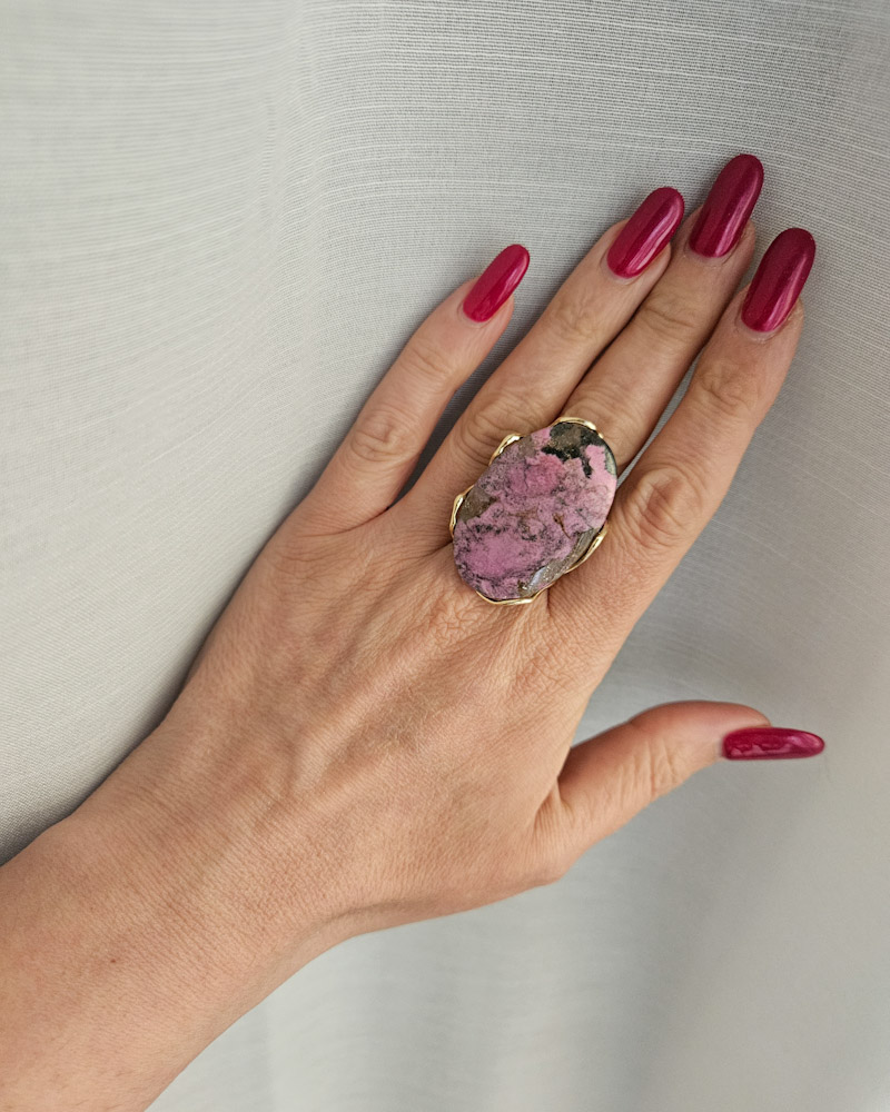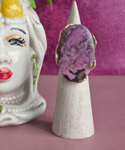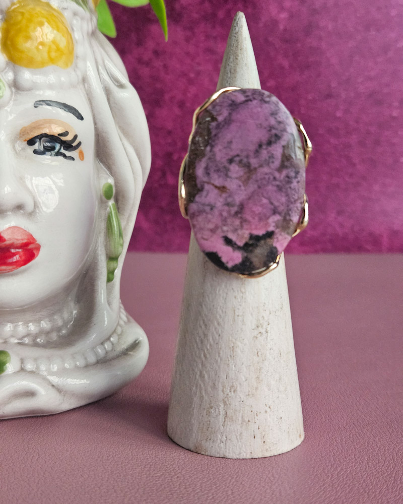 Anello Ovale in Argento 925 Placcato Oro con Purpurite