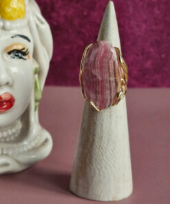 Meraviglioso anello con RODOCROSITE, una pietra dal rosa tenue al rosso, a volte con venature bianche, grigie o marroni.