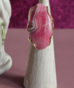 Meraviglioso anello con RODOCROSITE, una pietra dal rosa tenue al rosso, a volte con venature bianche, grigie o marroni.