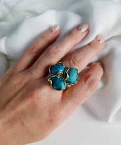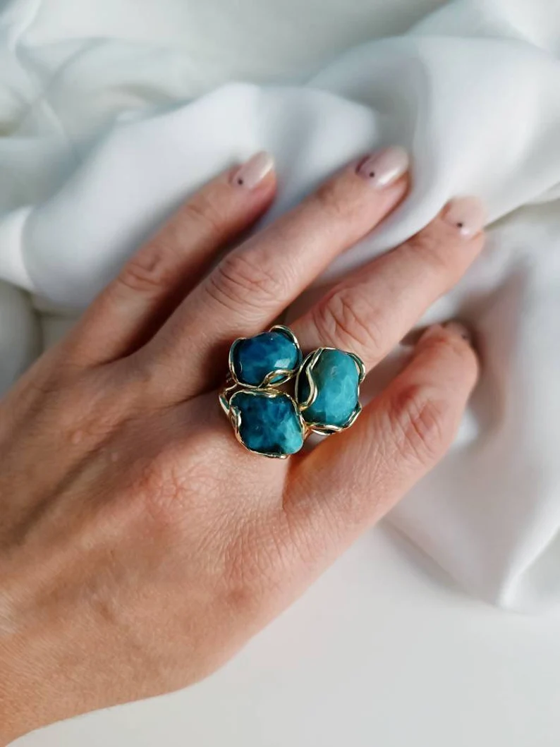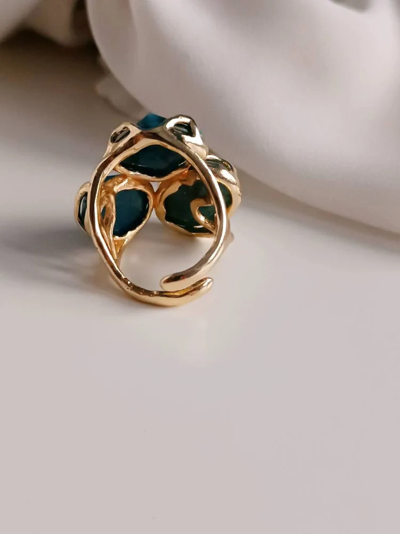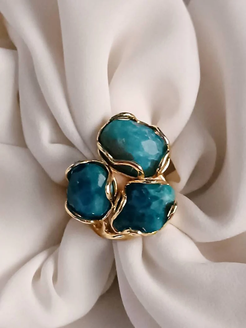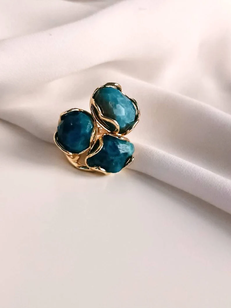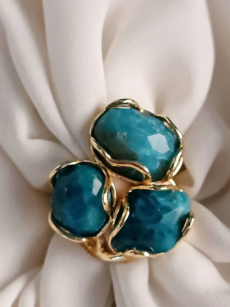 Anello Triplo con Apatite Naturale