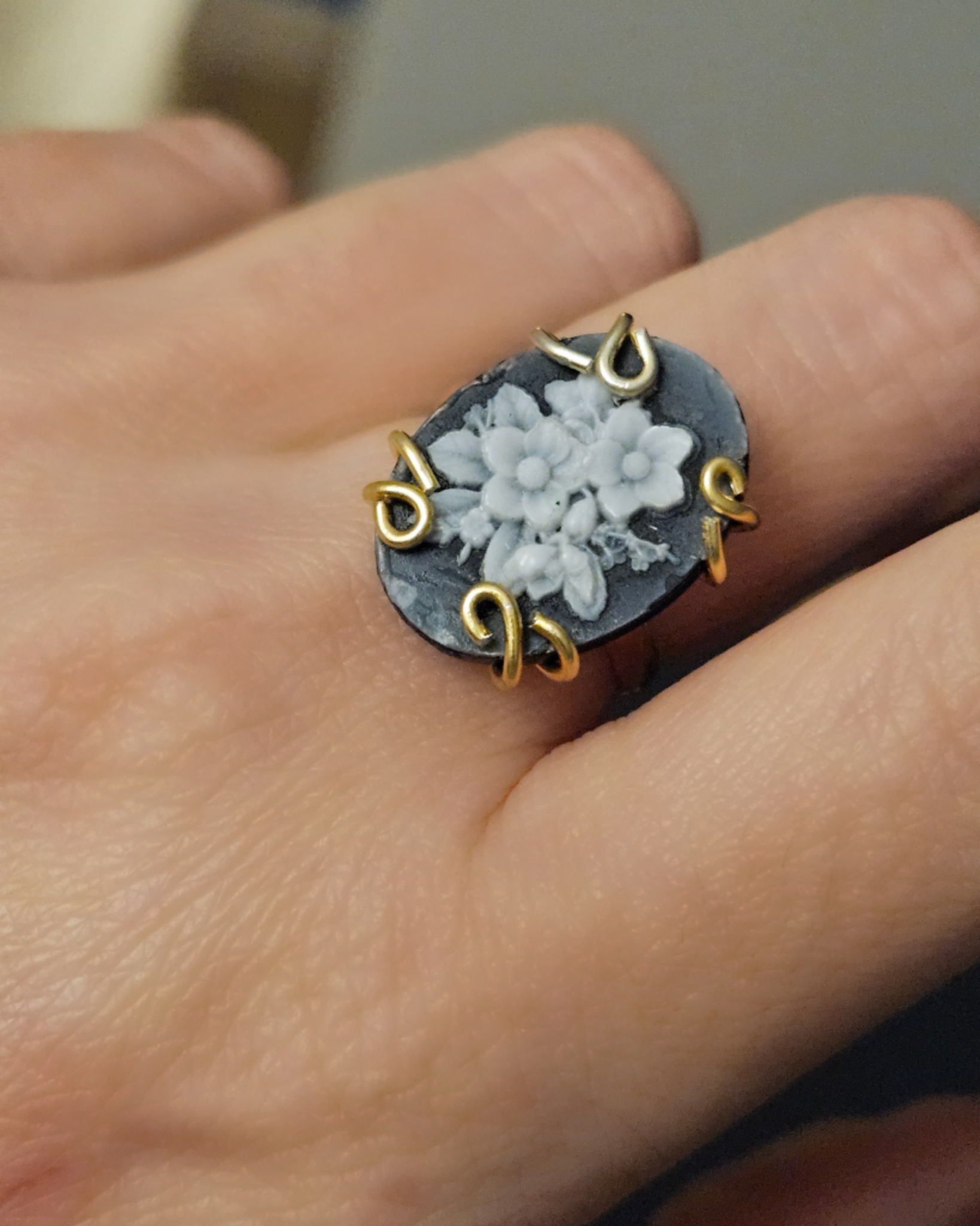 Meraviglioso e originale anello vittoriano con Cammeo in Agata nera.