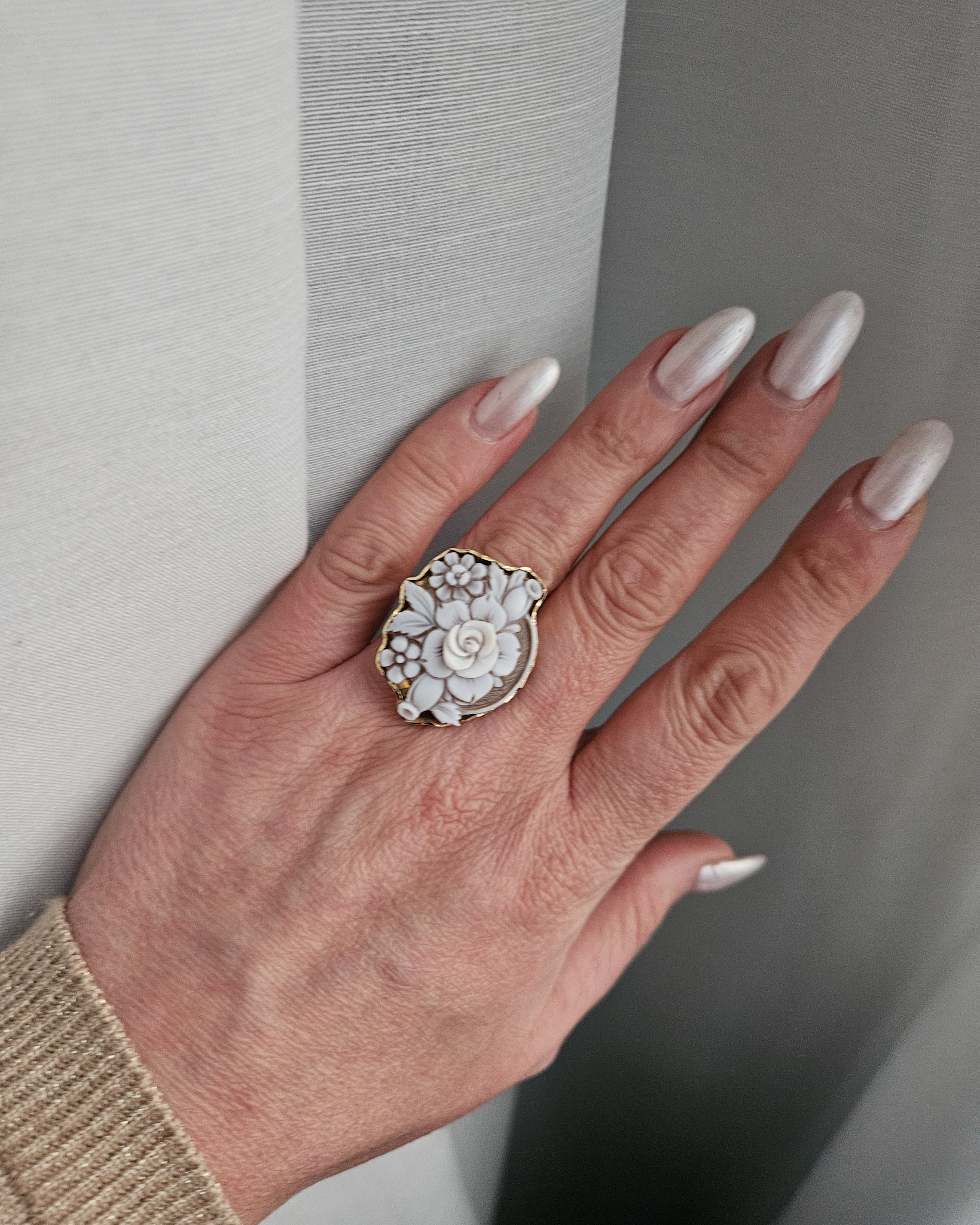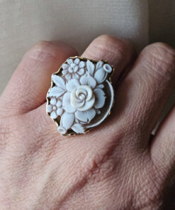 Anello vittoriano inciso a mano dalle sapienti mani artigiani dei maestri di Torre del Greco, patria del cammeo.