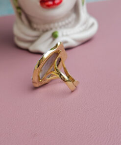 La montatura è in Argento 925 placcato oro e può essere regolata in base alla misura del tuo dito.