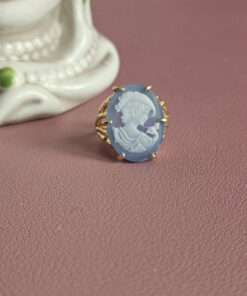 Anello Vittoriano in Argento 925 Placcato Oro con Cammeo Agata Blu