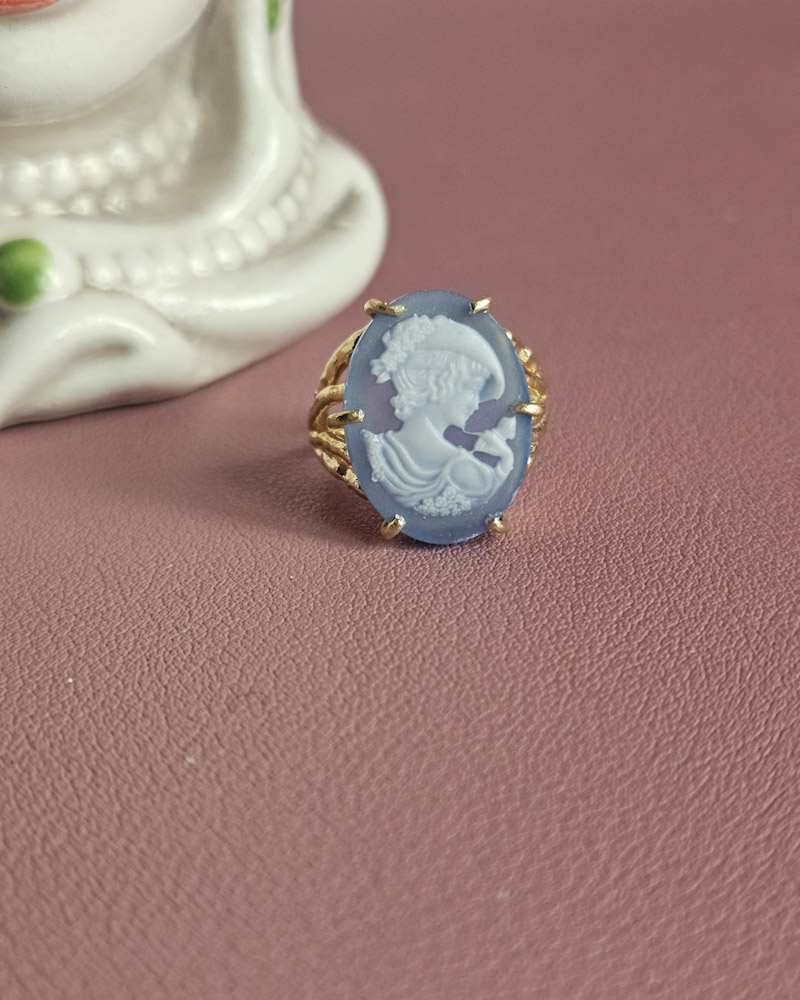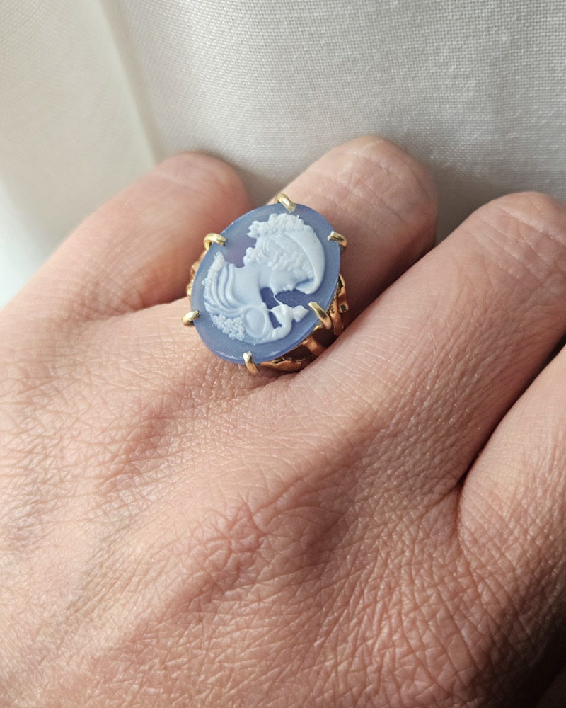 Meraviglioso e originale anello vittoriano con Cammeo in Agata blu.