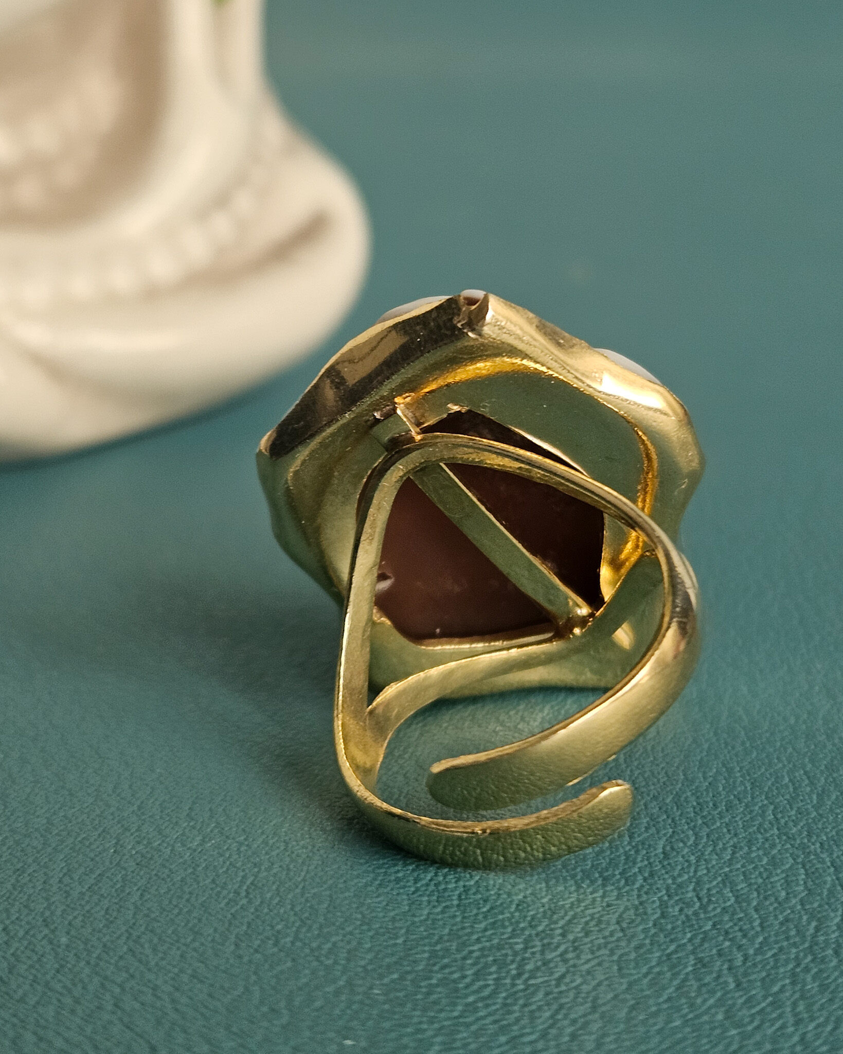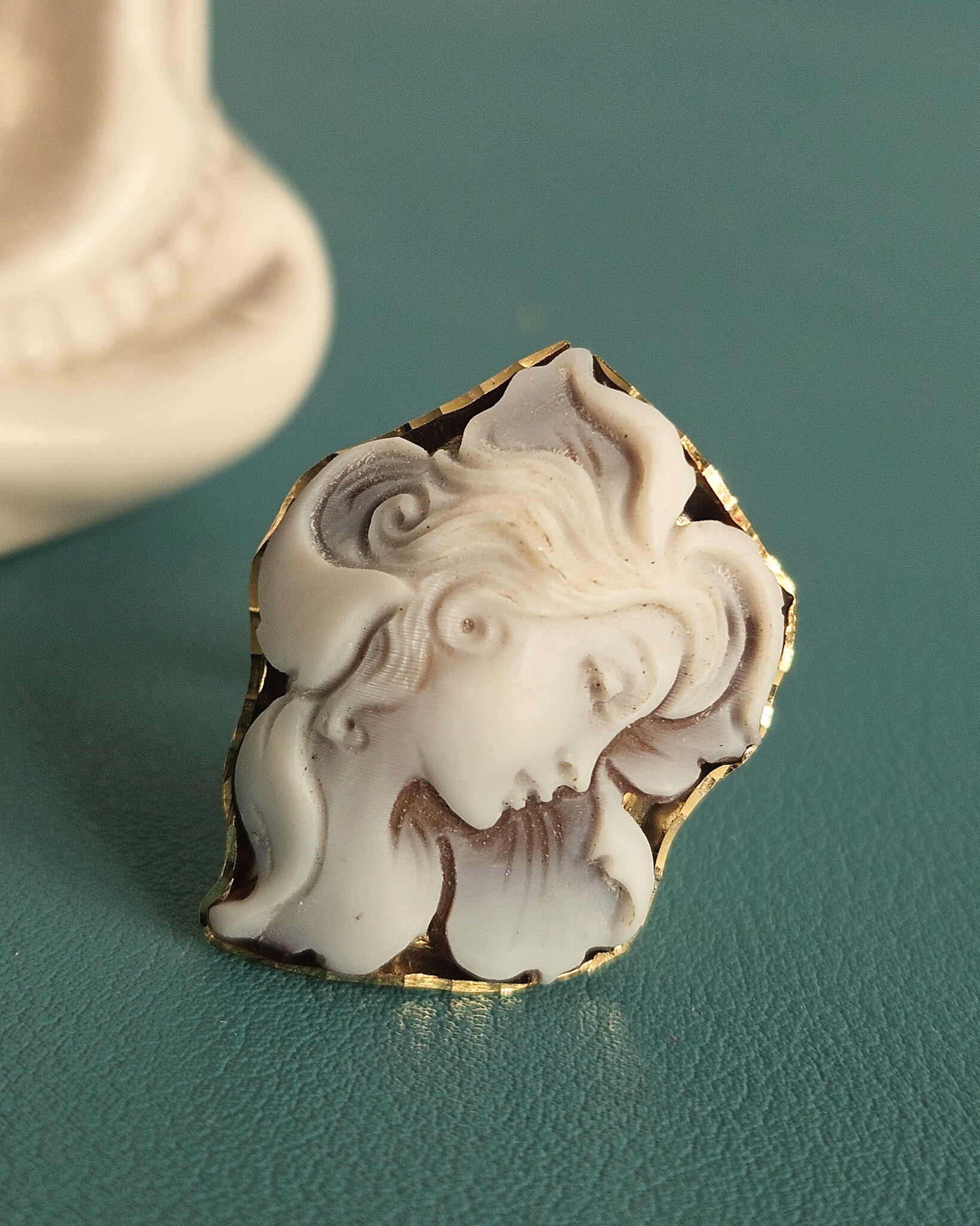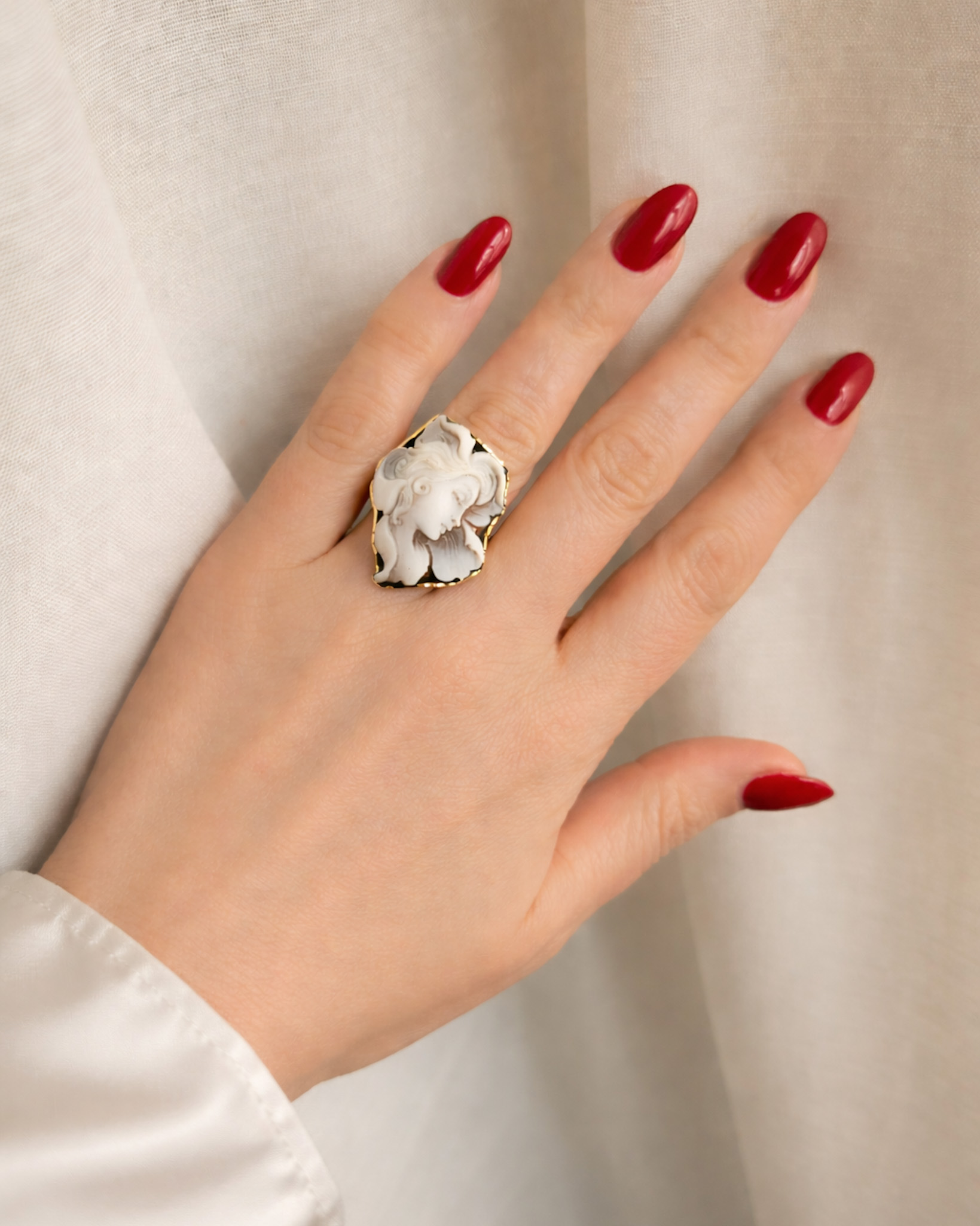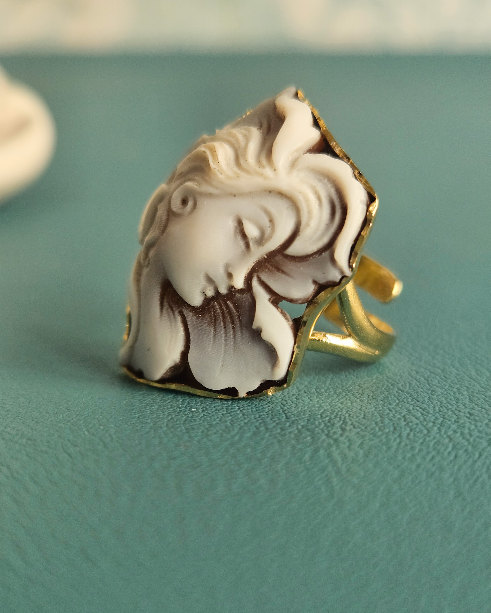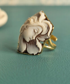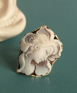 Anello vittoriano inciso a mano dalle sapienti mani artigiani dei maestri di Torre del Greco, patria del cammeo.