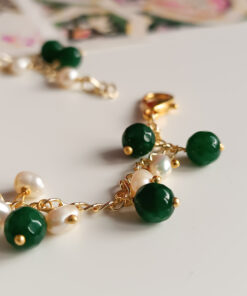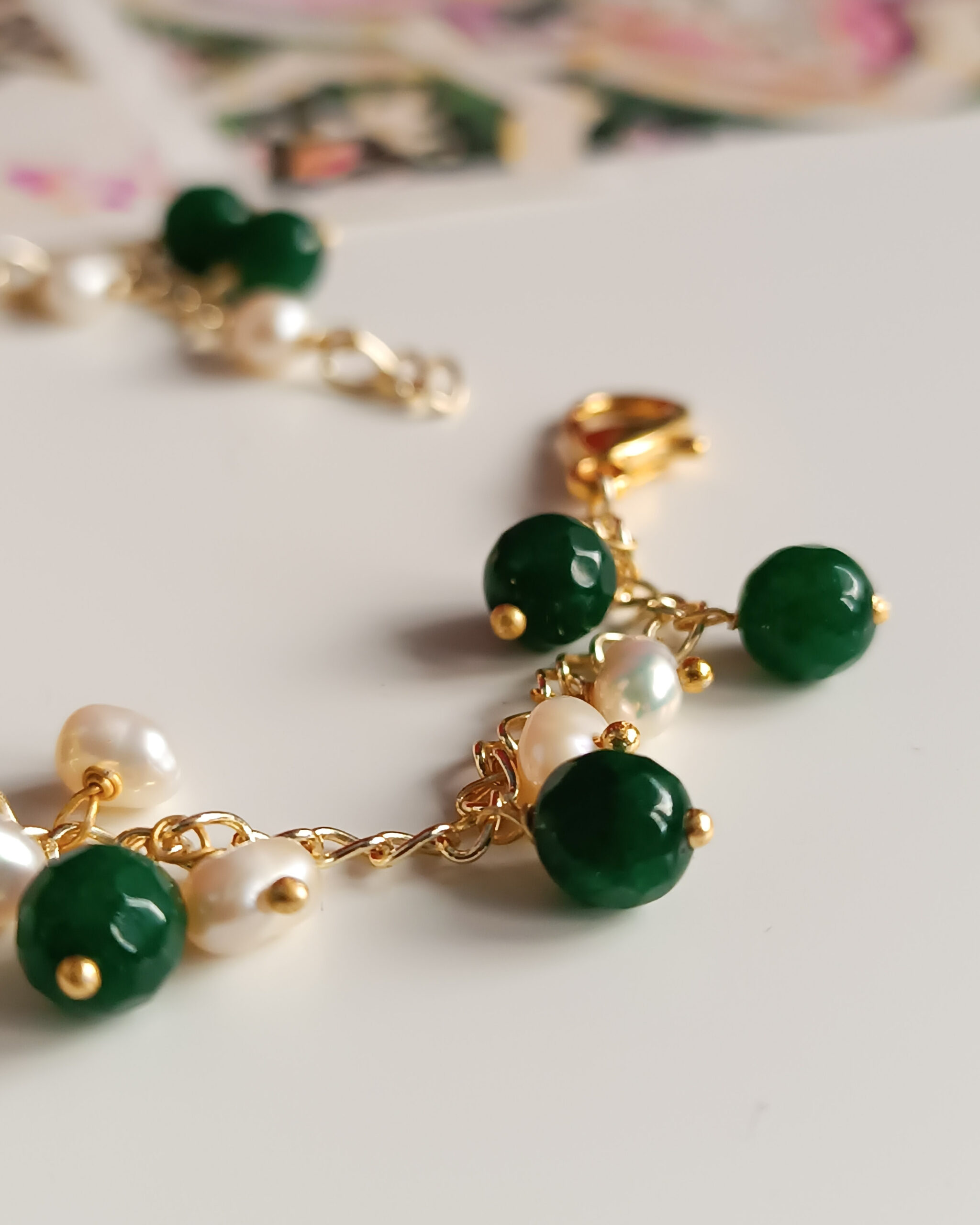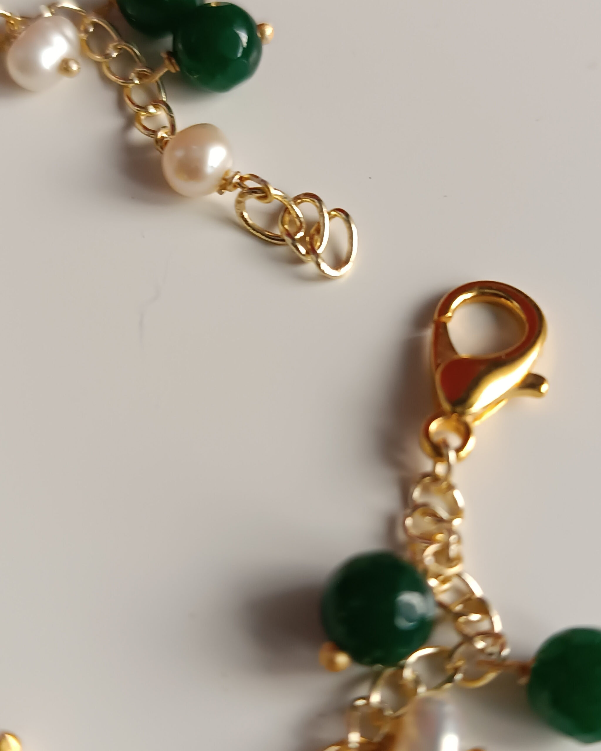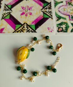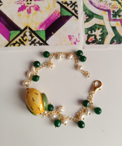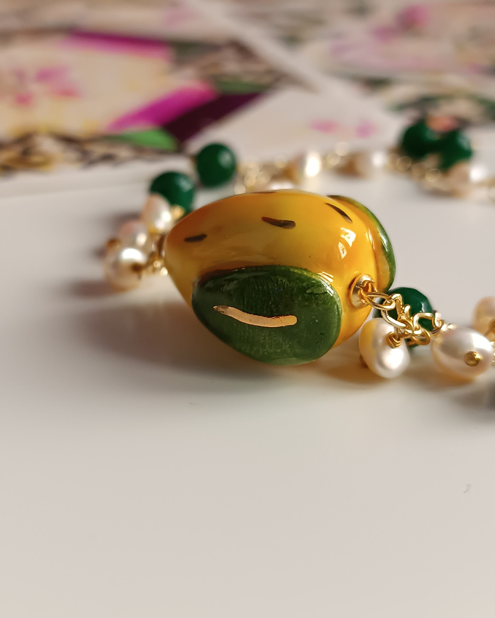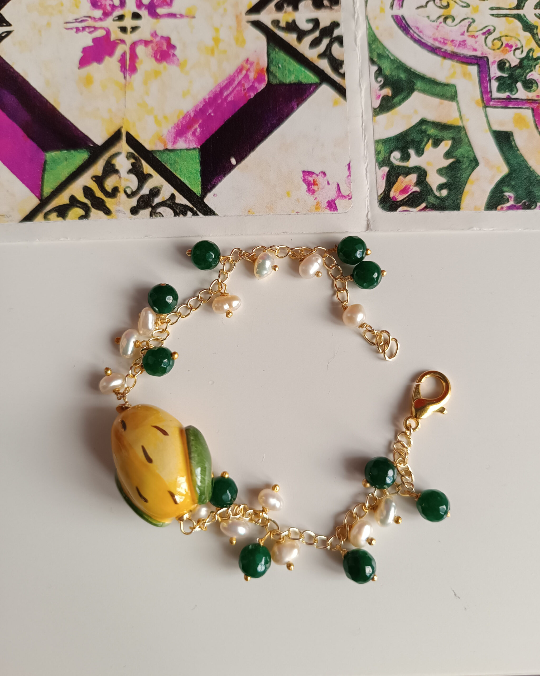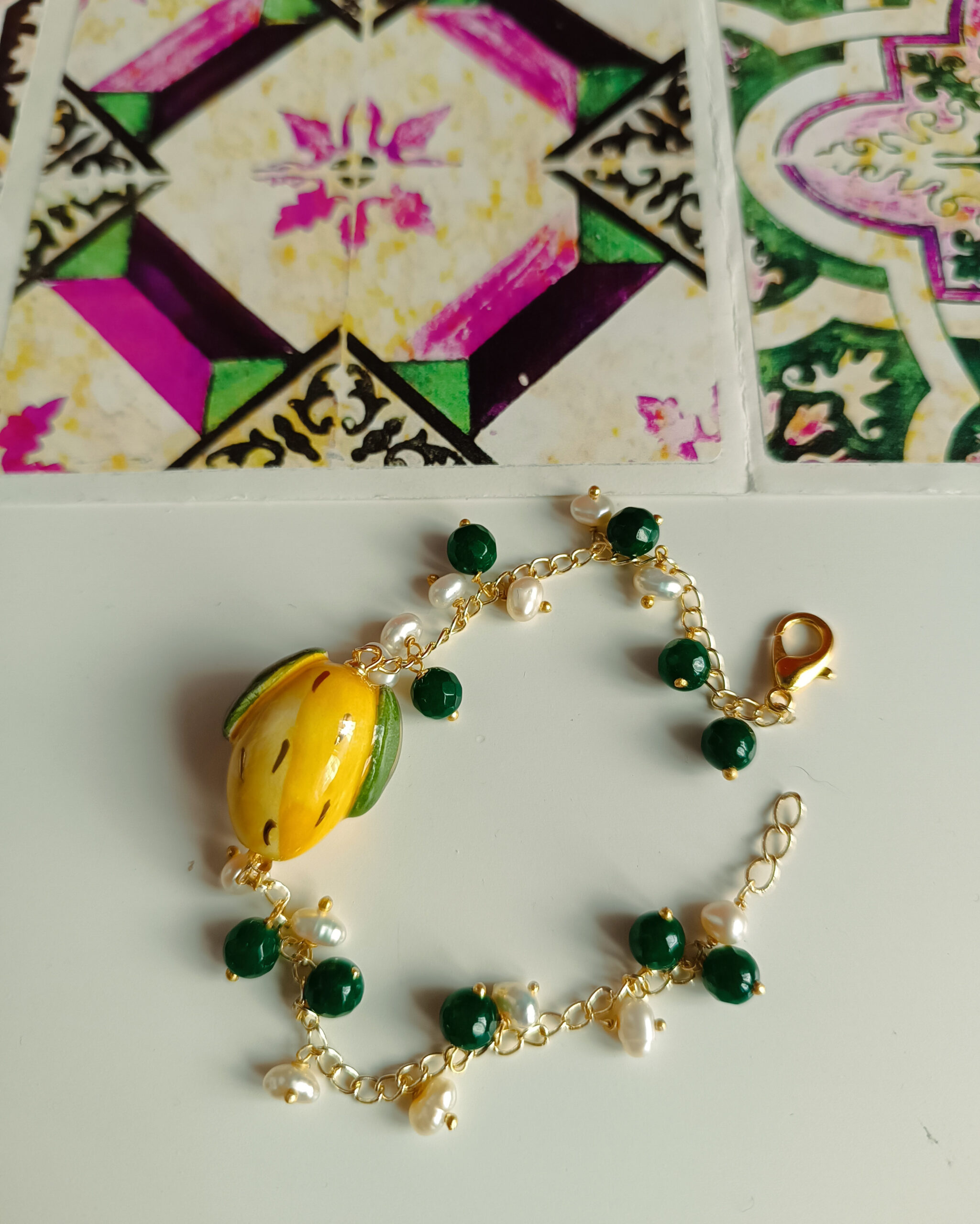 Bracciale Siciliano a Catena con Pietre Verdi, Perline e Limone in Ceramica di Caltagirone