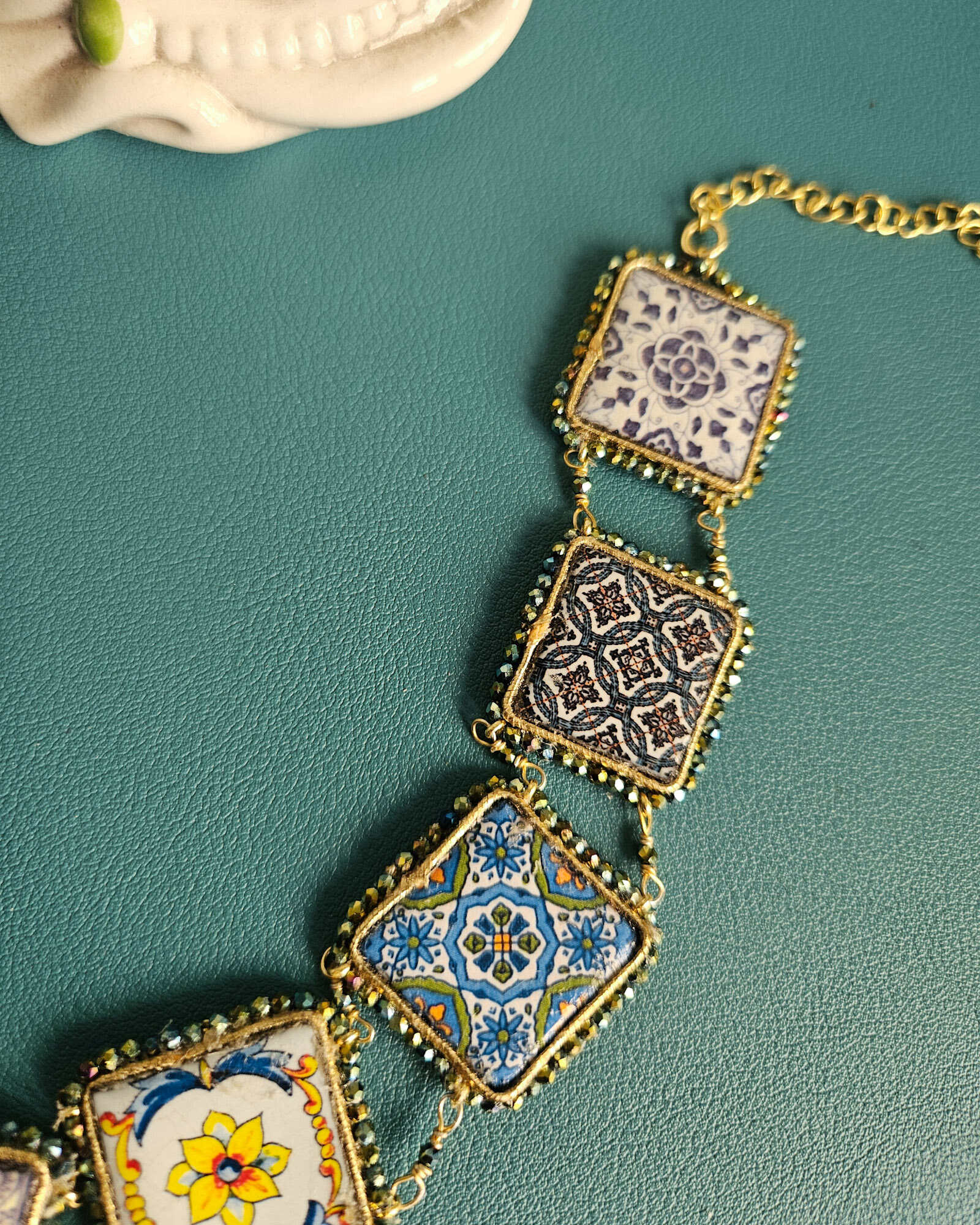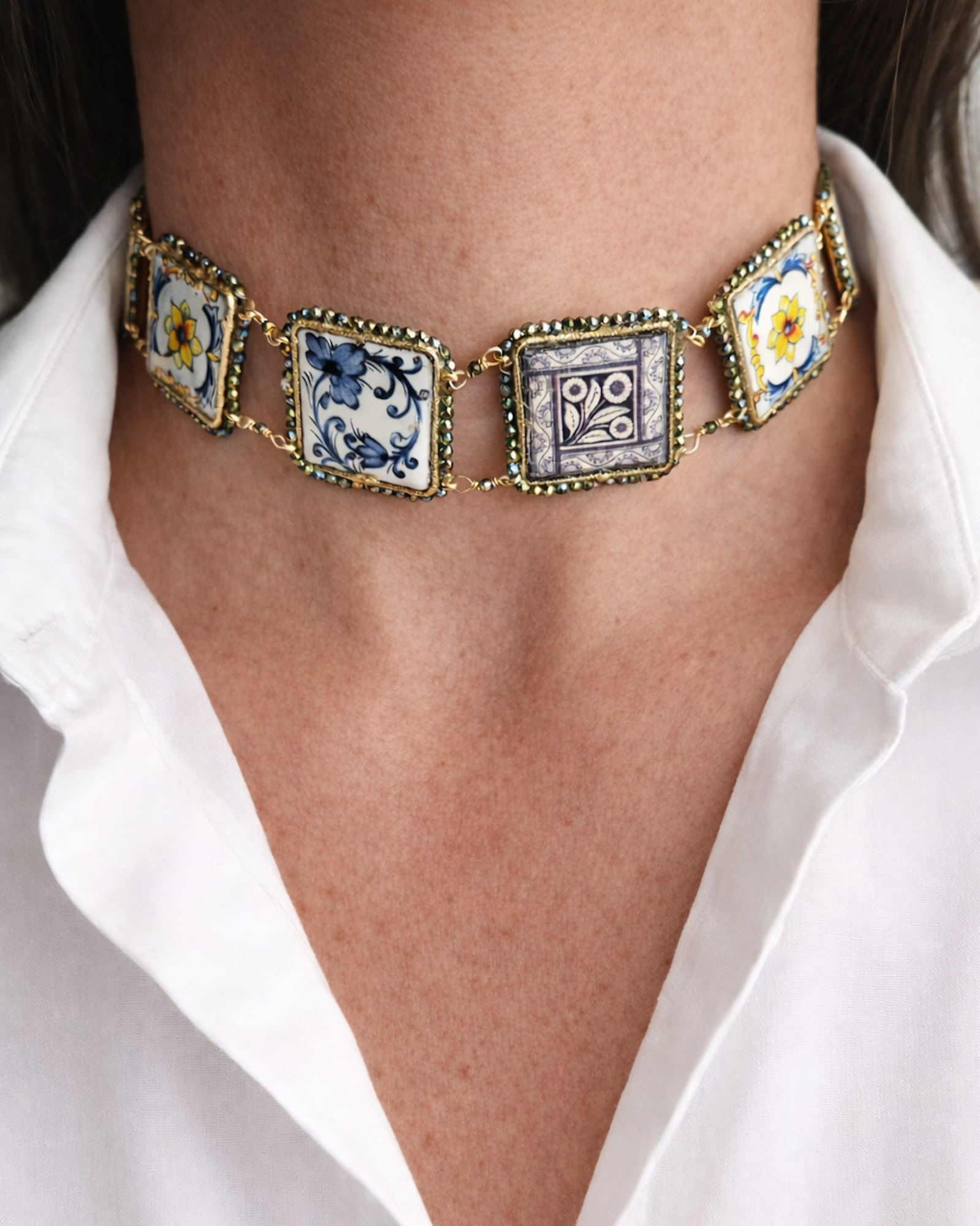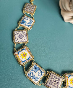 Choker con Maioliche in Pietra Lavica e Ceramica di Caltagirone