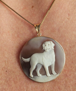 Ciondolo in Argento 925 Placcato Oro con Cammeo Labrador Autentico di Torre del Greco