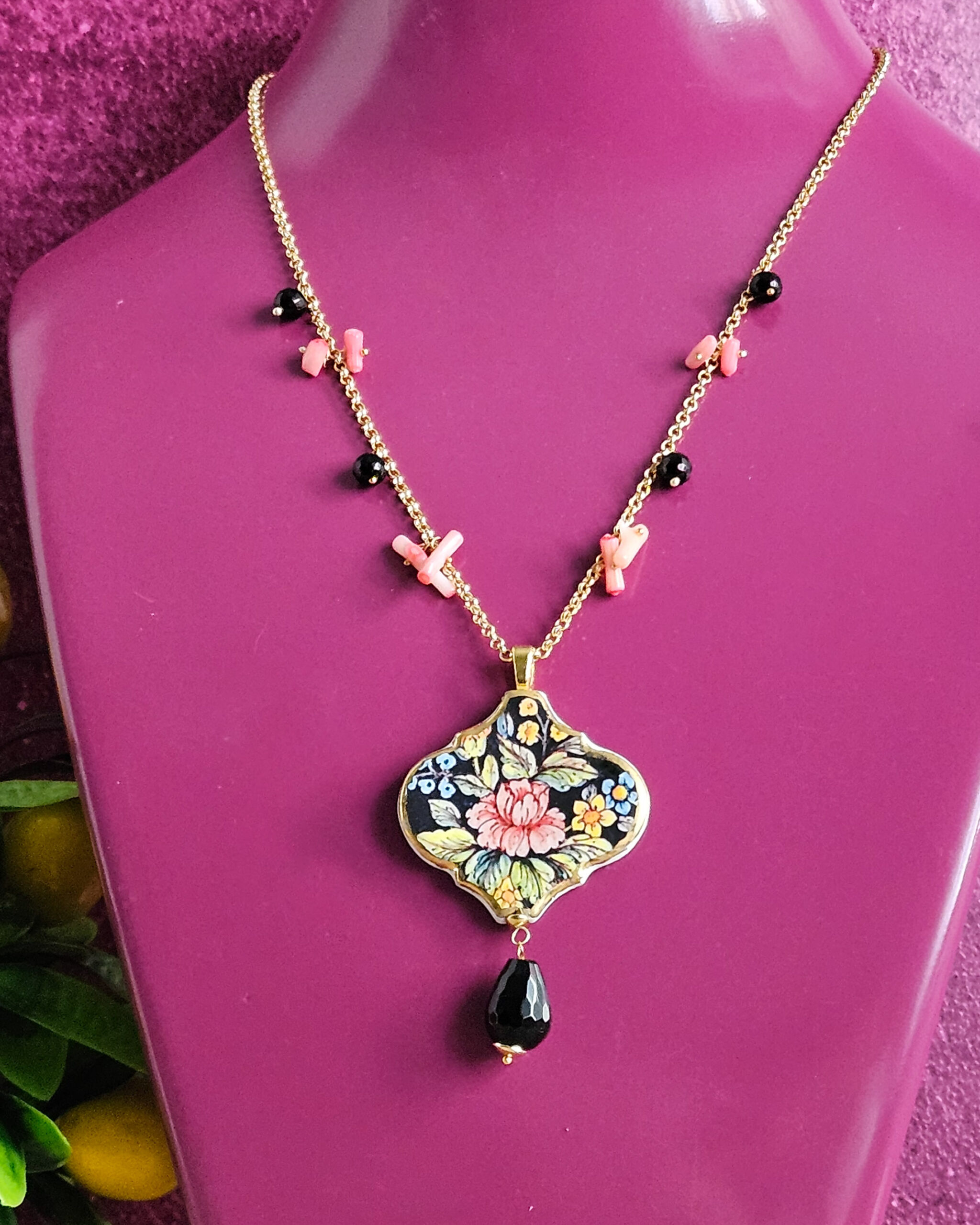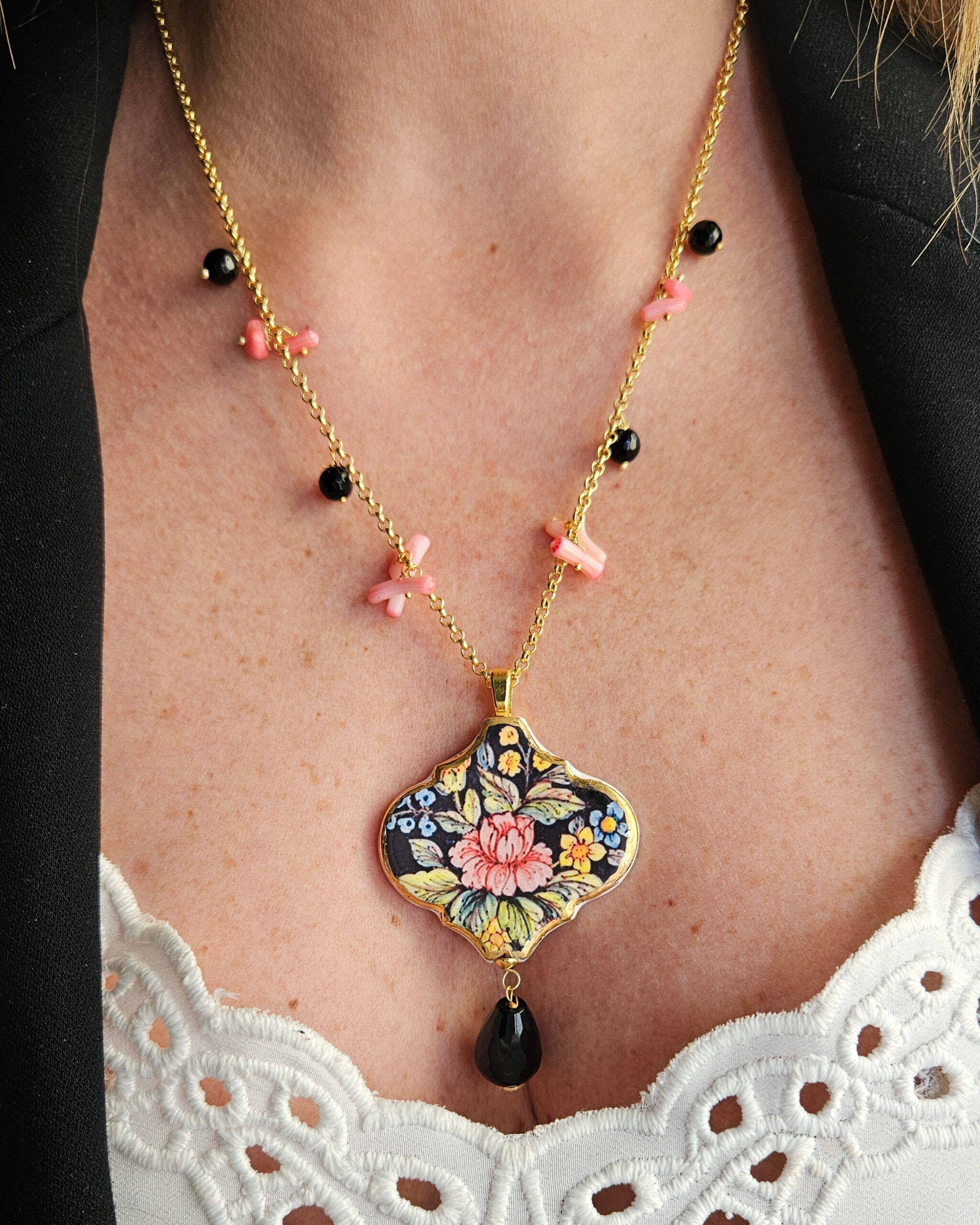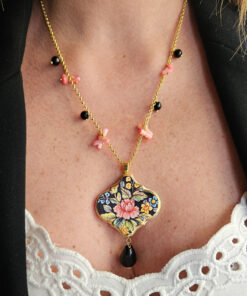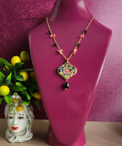 L’inconfondibile impronta siciliana, data dall’immagine rappresentata nella maiolica, rende questa collana un elemento di originalità e stile per il tuo look.