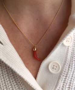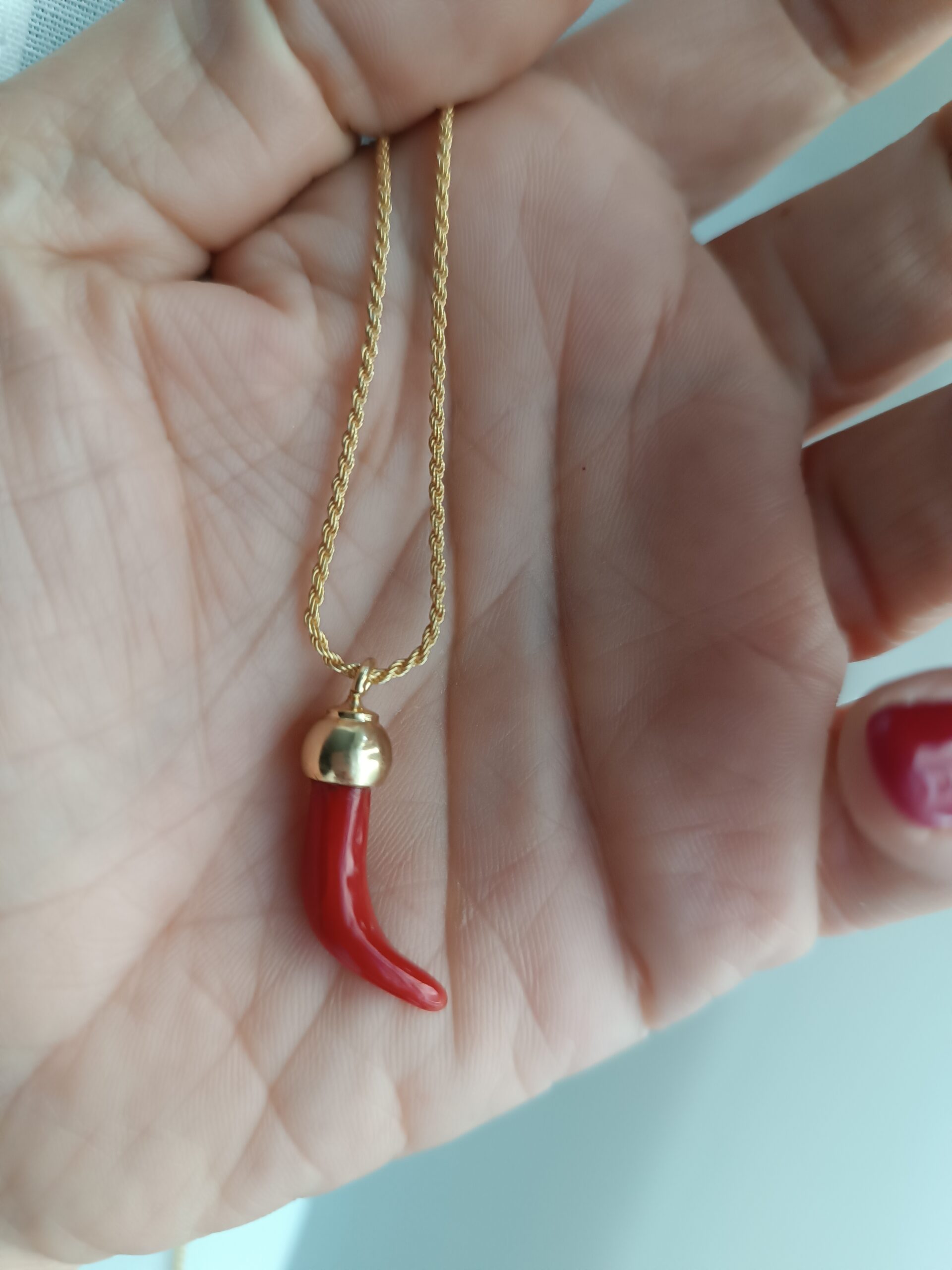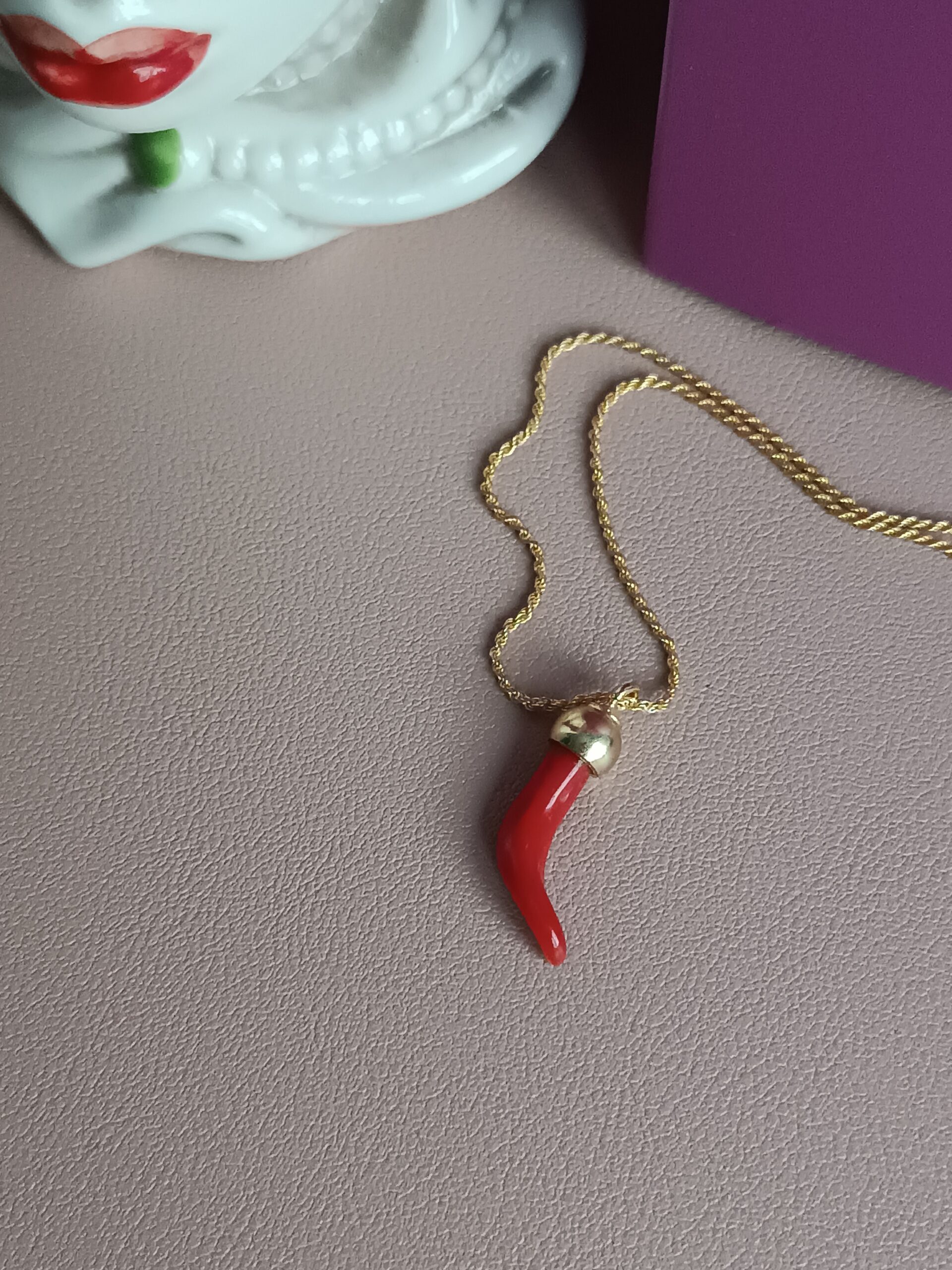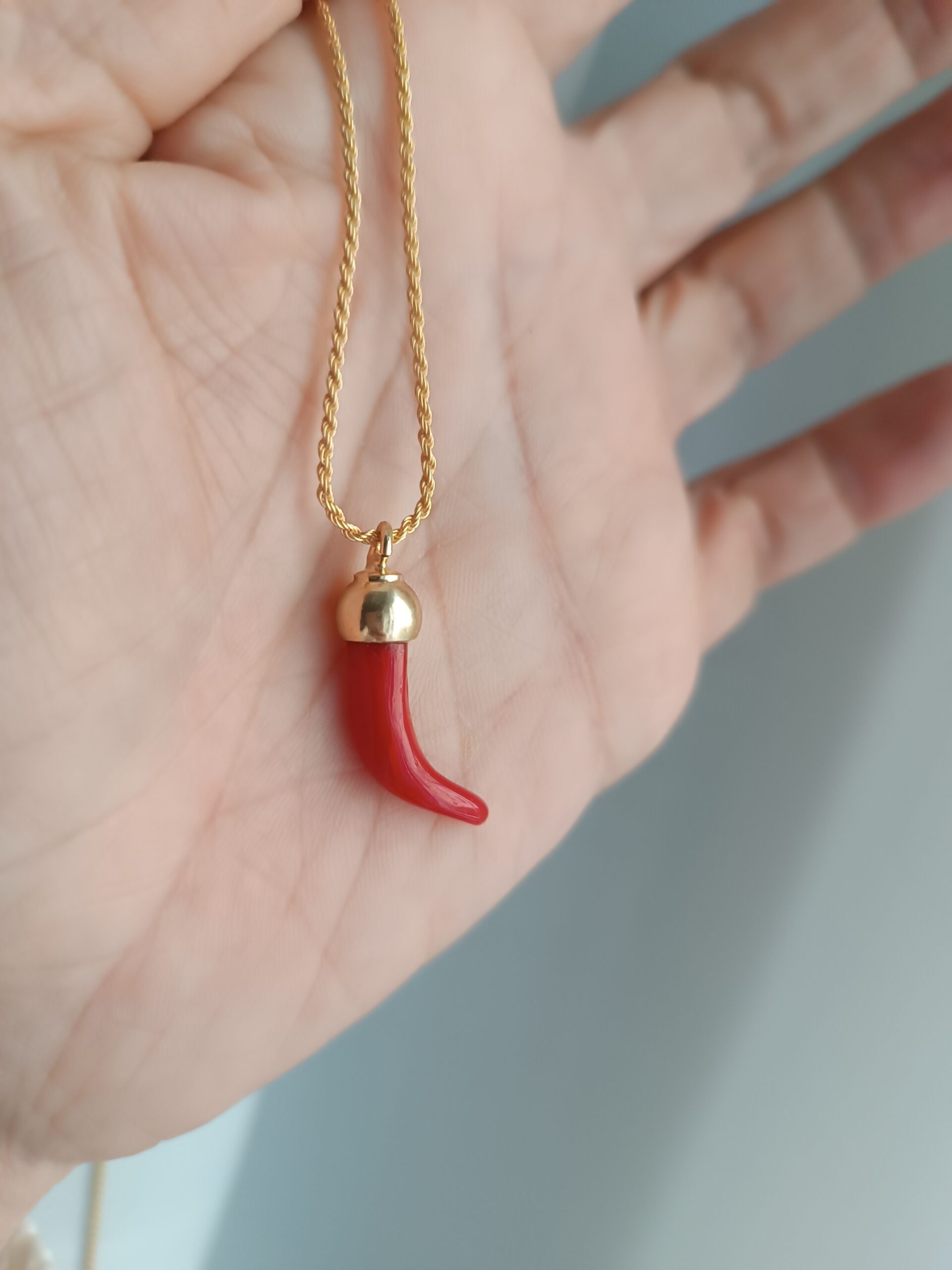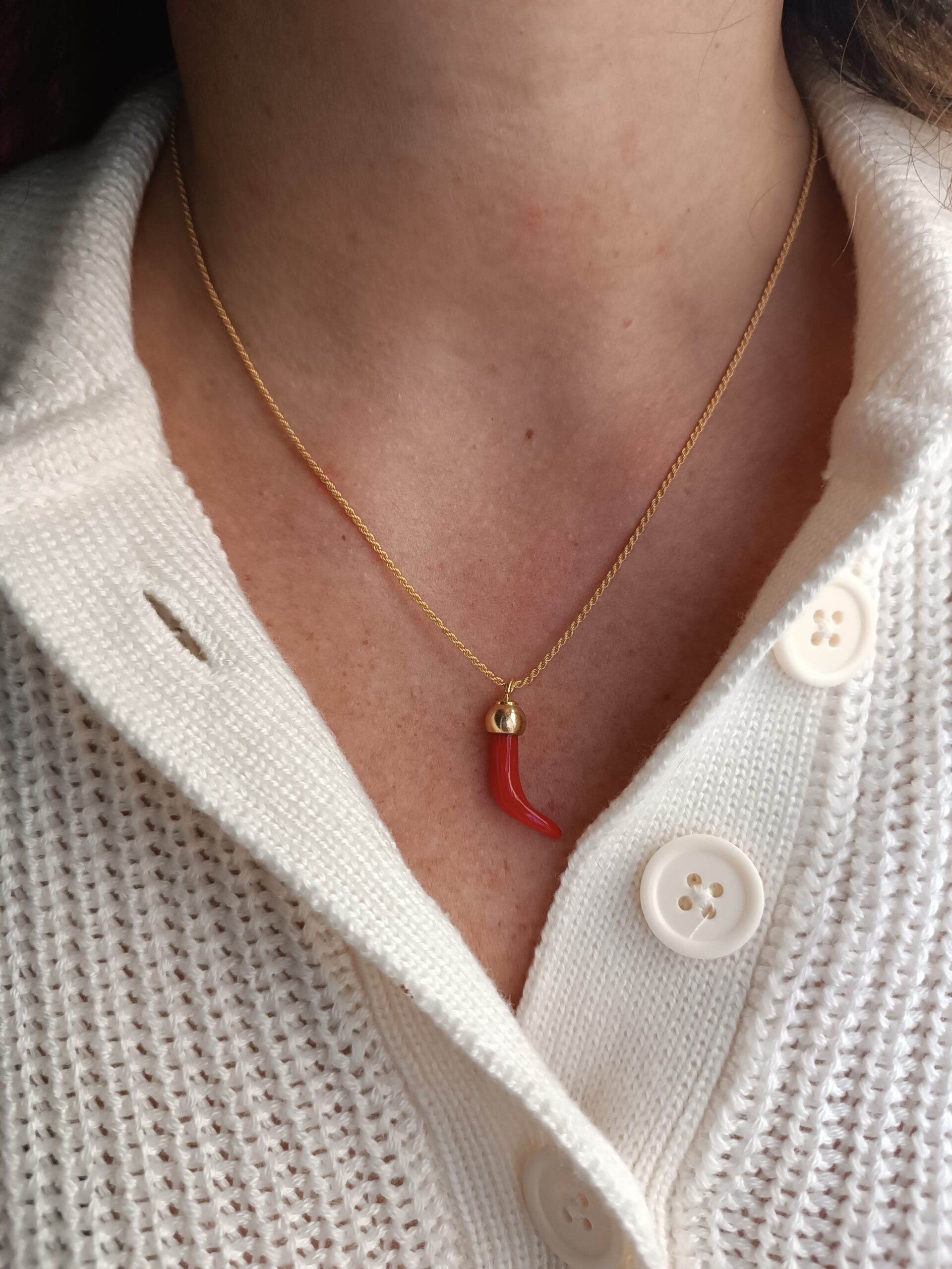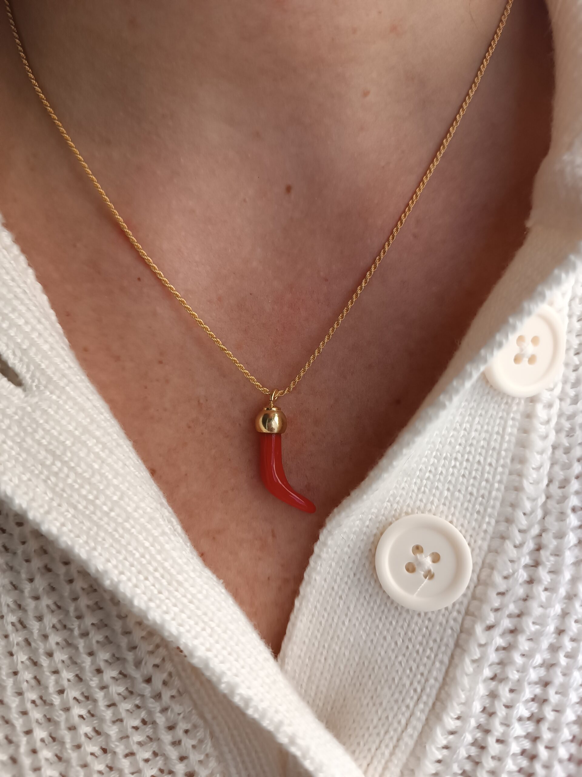 Collana molto semplice in stile minimal con cornetto portafortuna in Corallo.