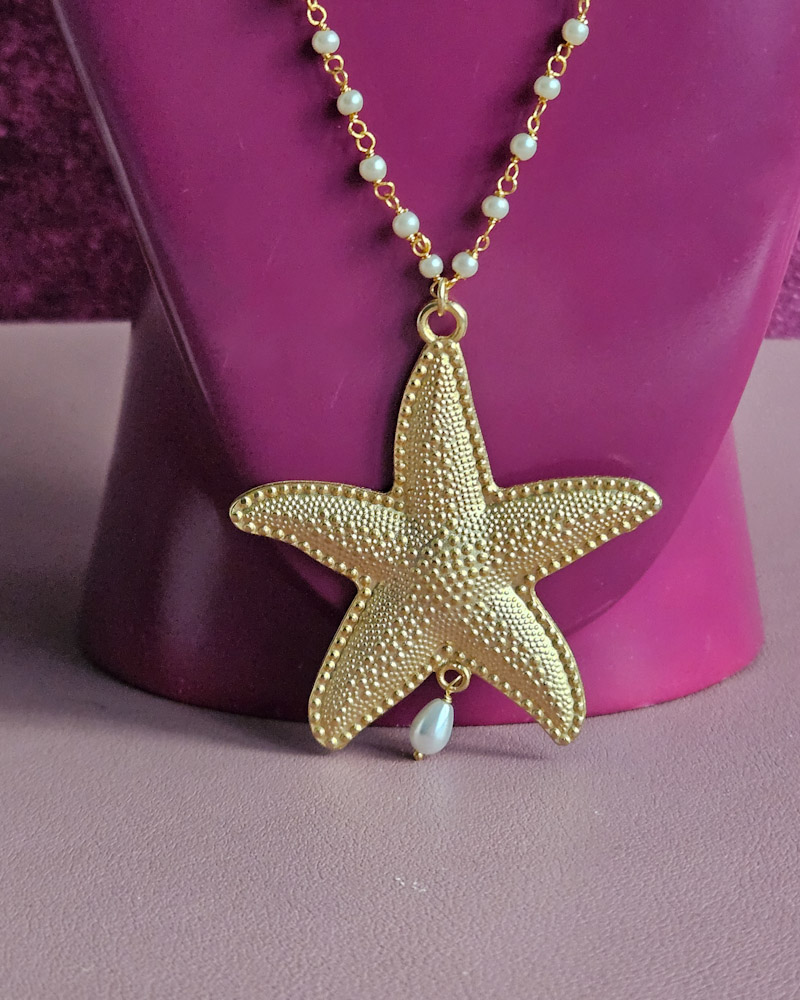 La catena è in Ottone ed è intervallata da piccole perle di maiorca.