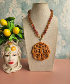 Questa collana realizzata con pietre di giada floreale, dalle tonalità vibranti, si distingue per la sua palette cromatica dalle vibes autunnali, evocando un senso di equilibrio e serenità. La scelta della pietra rende il gioiello esteticamente originale e ricercato.