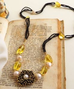 Collana Multifilo con Spinello, Ambra naturale e Perle di Fiume