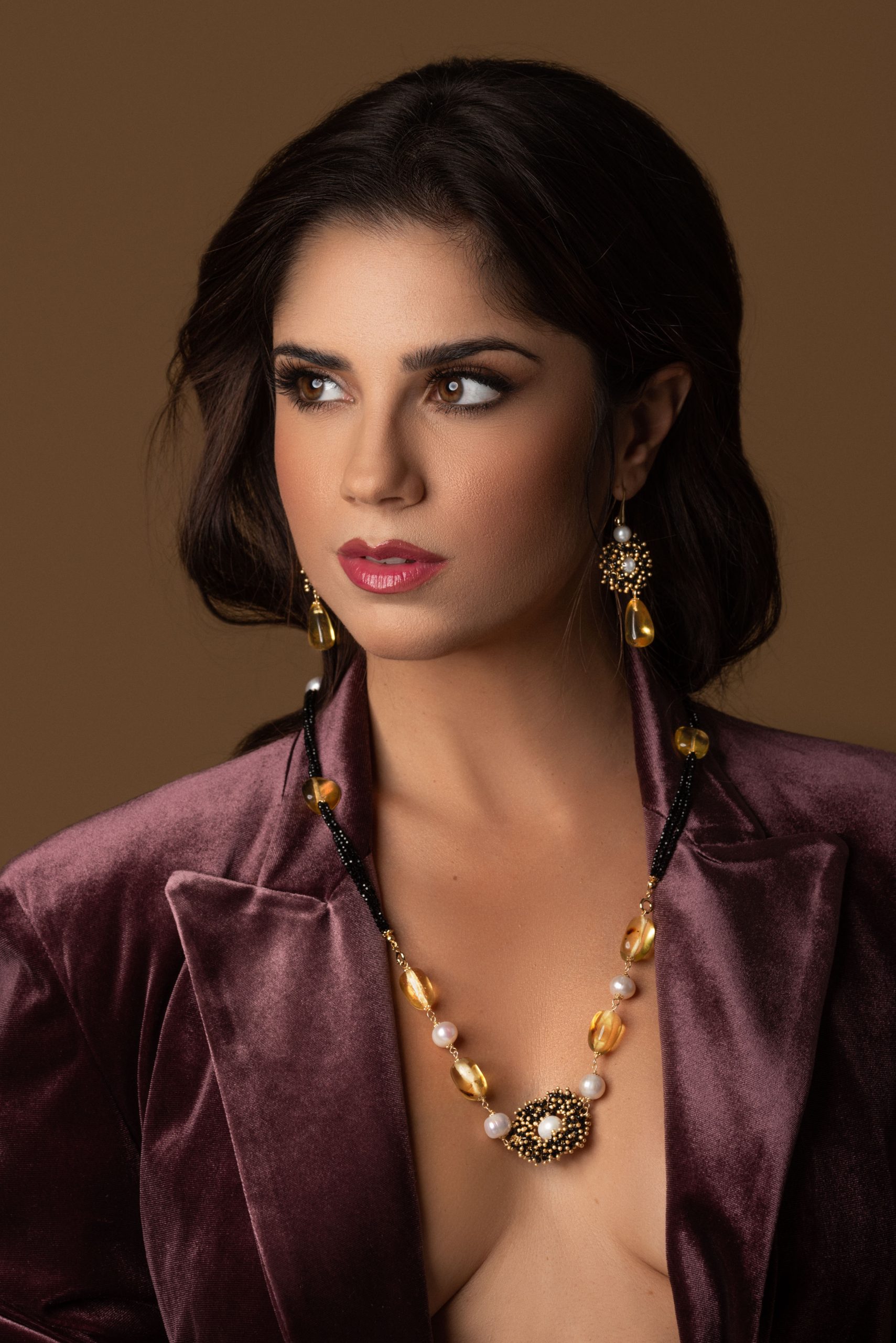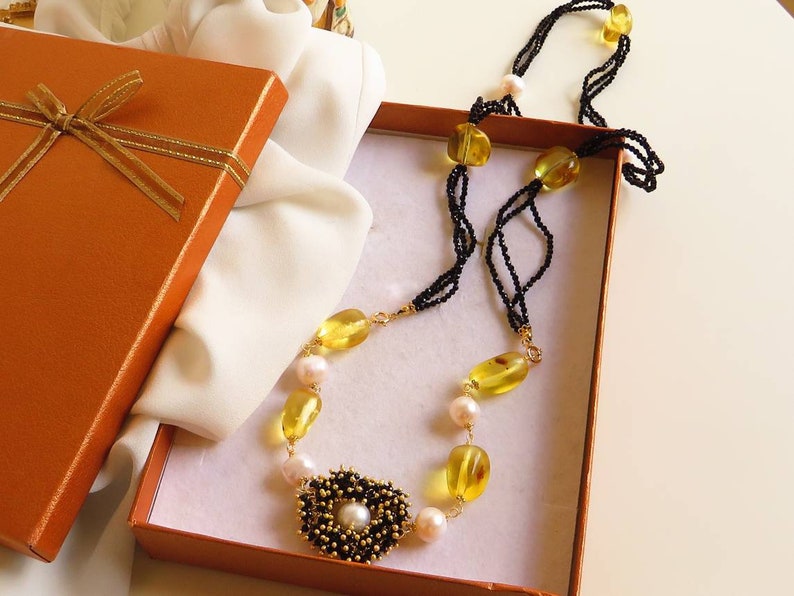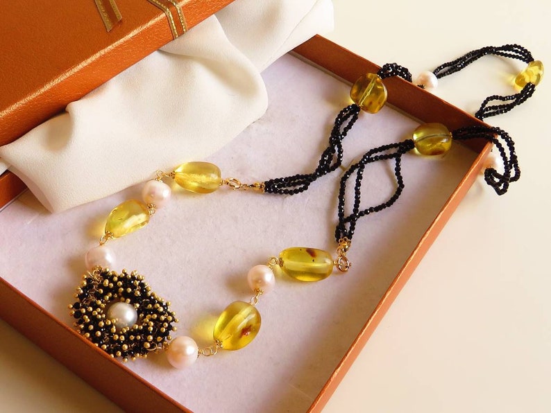 Preziosa collana realizzata con Spinello nero e Ambra.