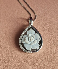 Collana Girocollo a Catena in Argento 925 con Cammeo FIORE Autentico di Torre del Greco