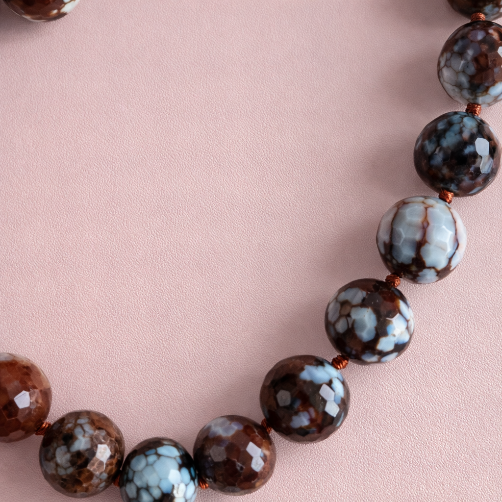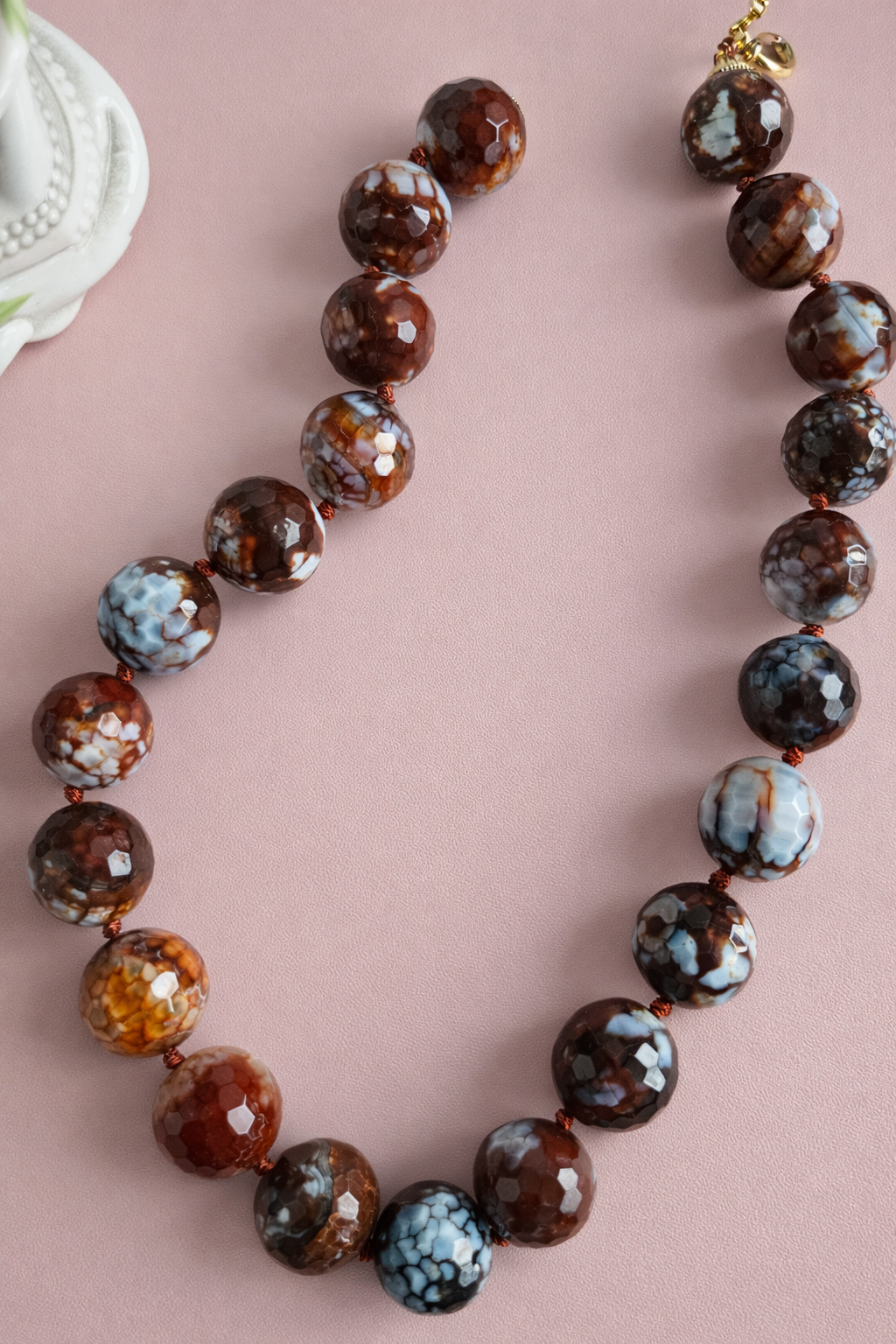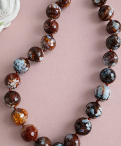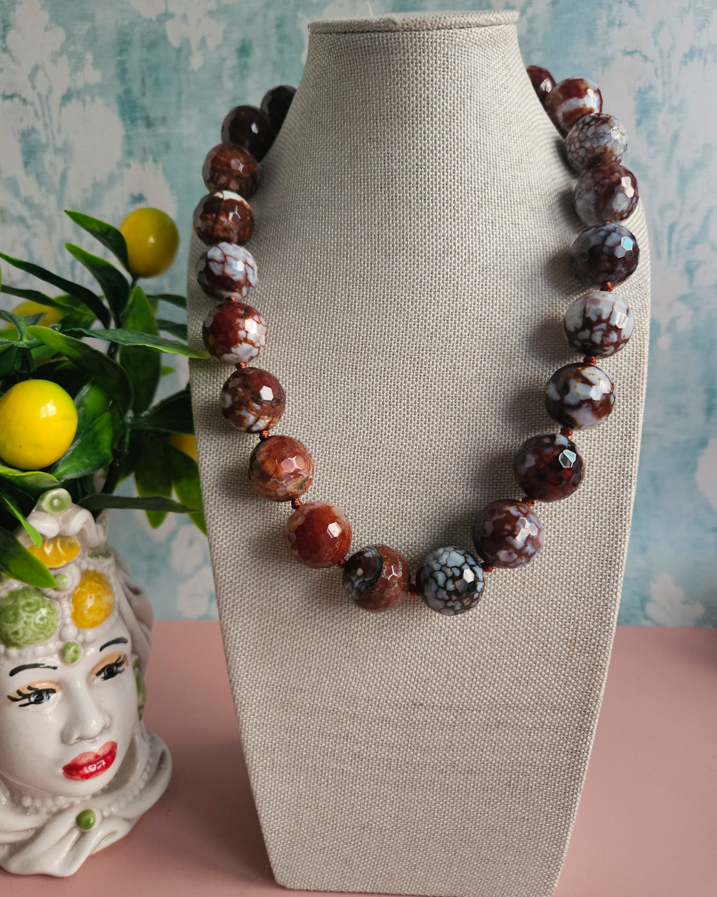 Un girocollo di autentica bellezza, realizzata con agata fuoco naturale dalle irresistibili sfumature autunnali.