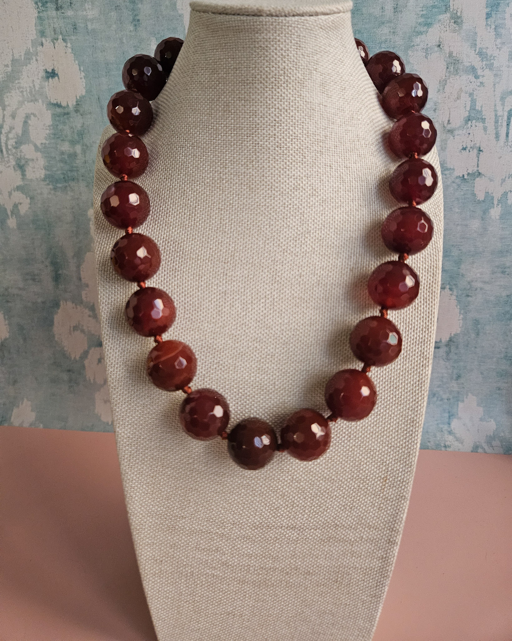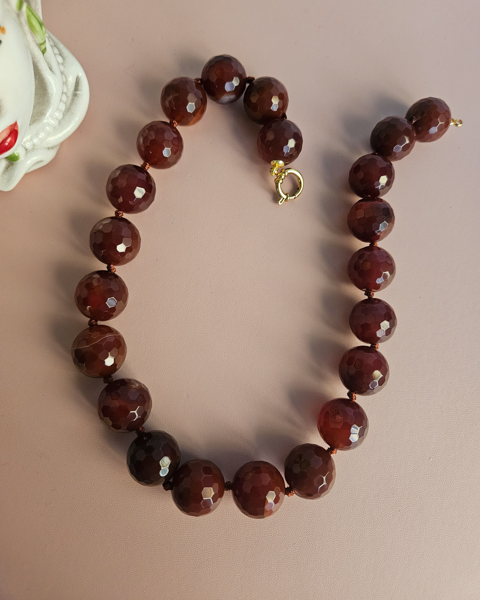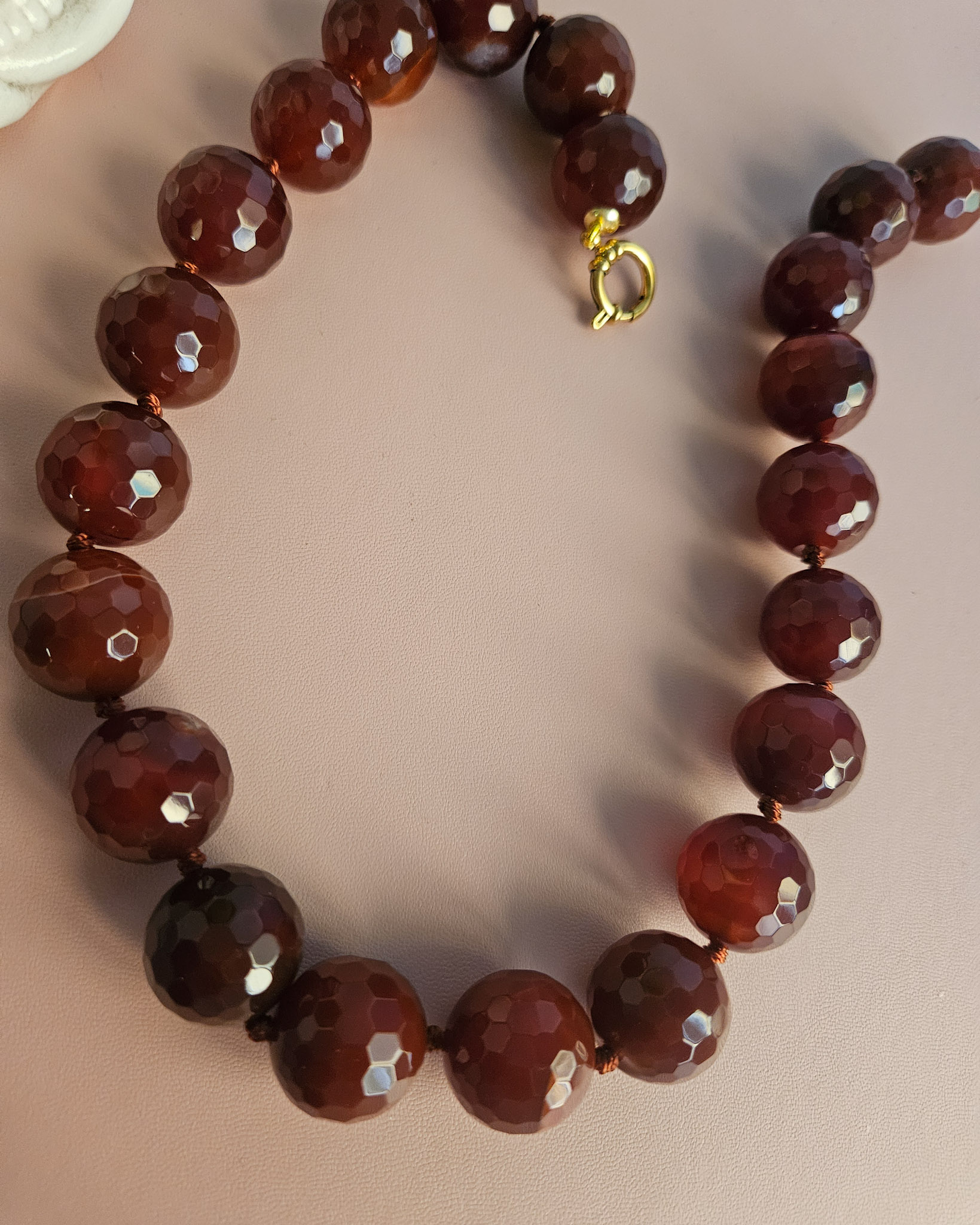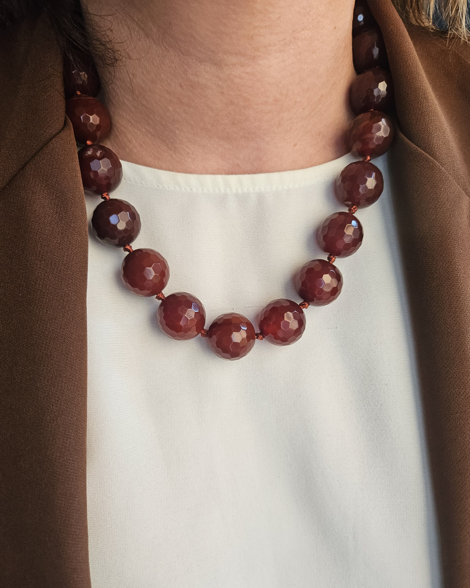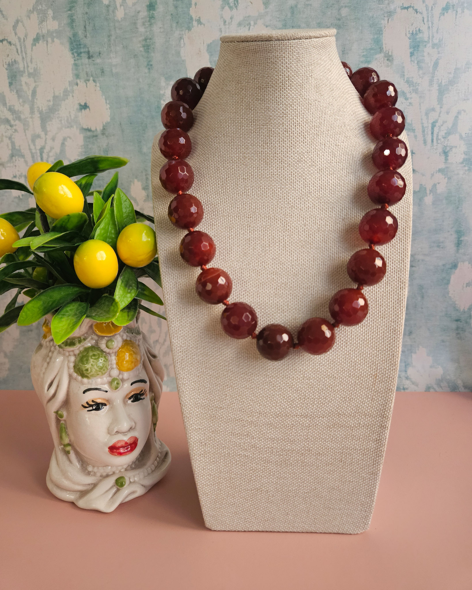 Un girocollo di autentica bellezza, realizzata con agata striata dal profondo color coccio.