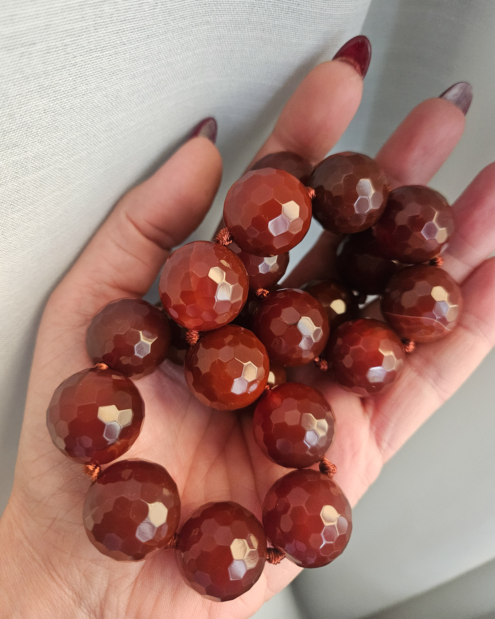 La tonalità suadente e intensa delle pietre conferisce a questa collana un carattere deciso e sofisticato, perfetto per chi ama distinguersi con stile e personalità.