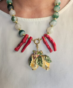 Collana Girocollo con Agata Striata Verde e Limoni in Ceramica di Caltagirone