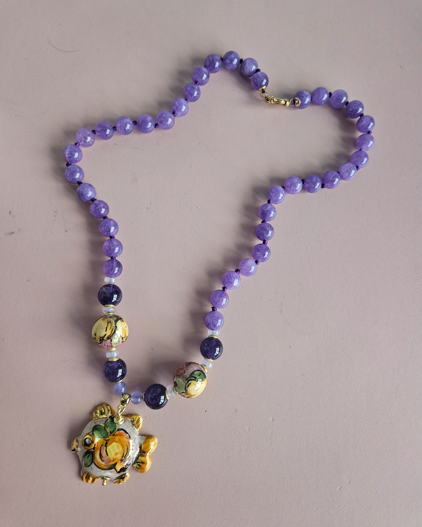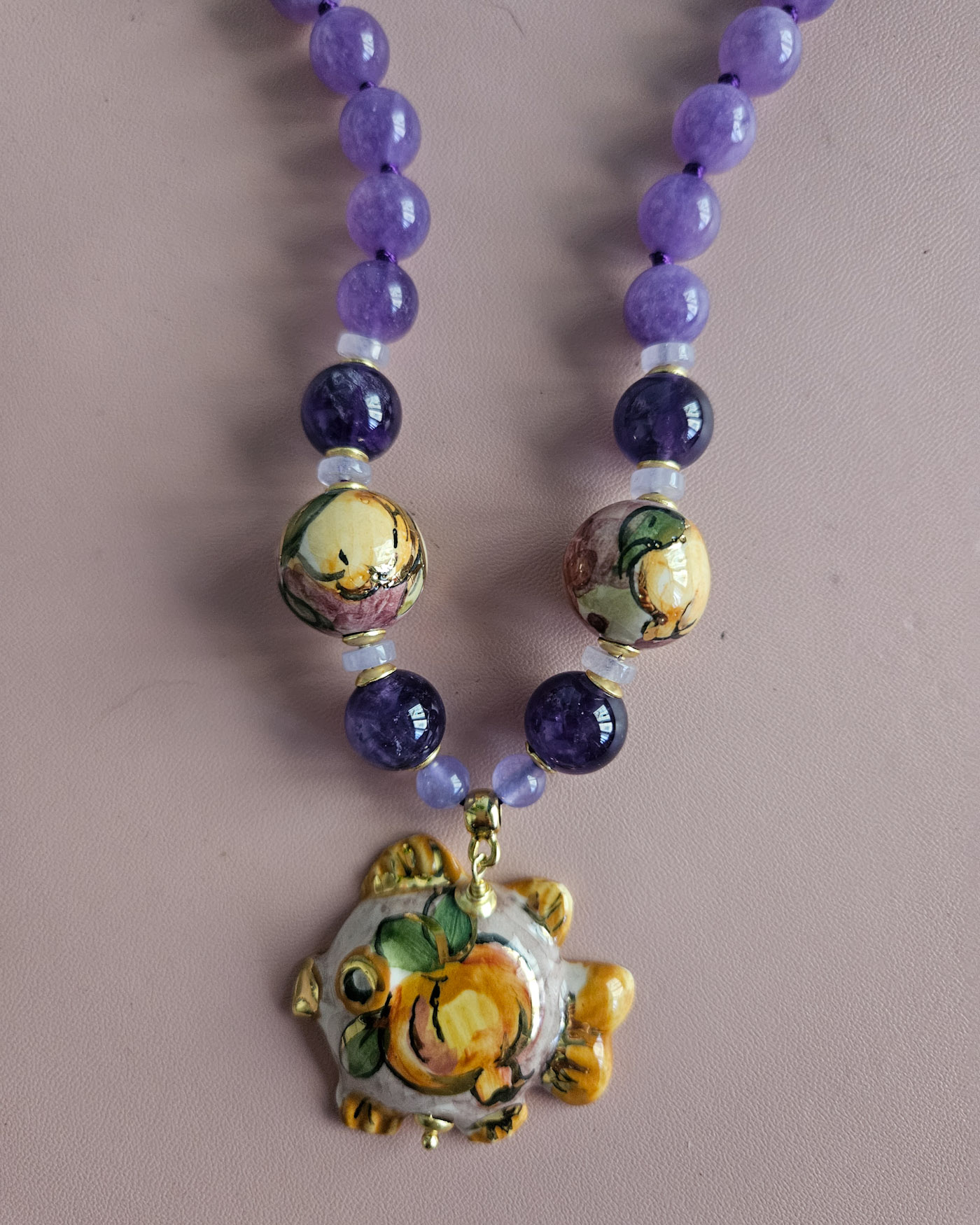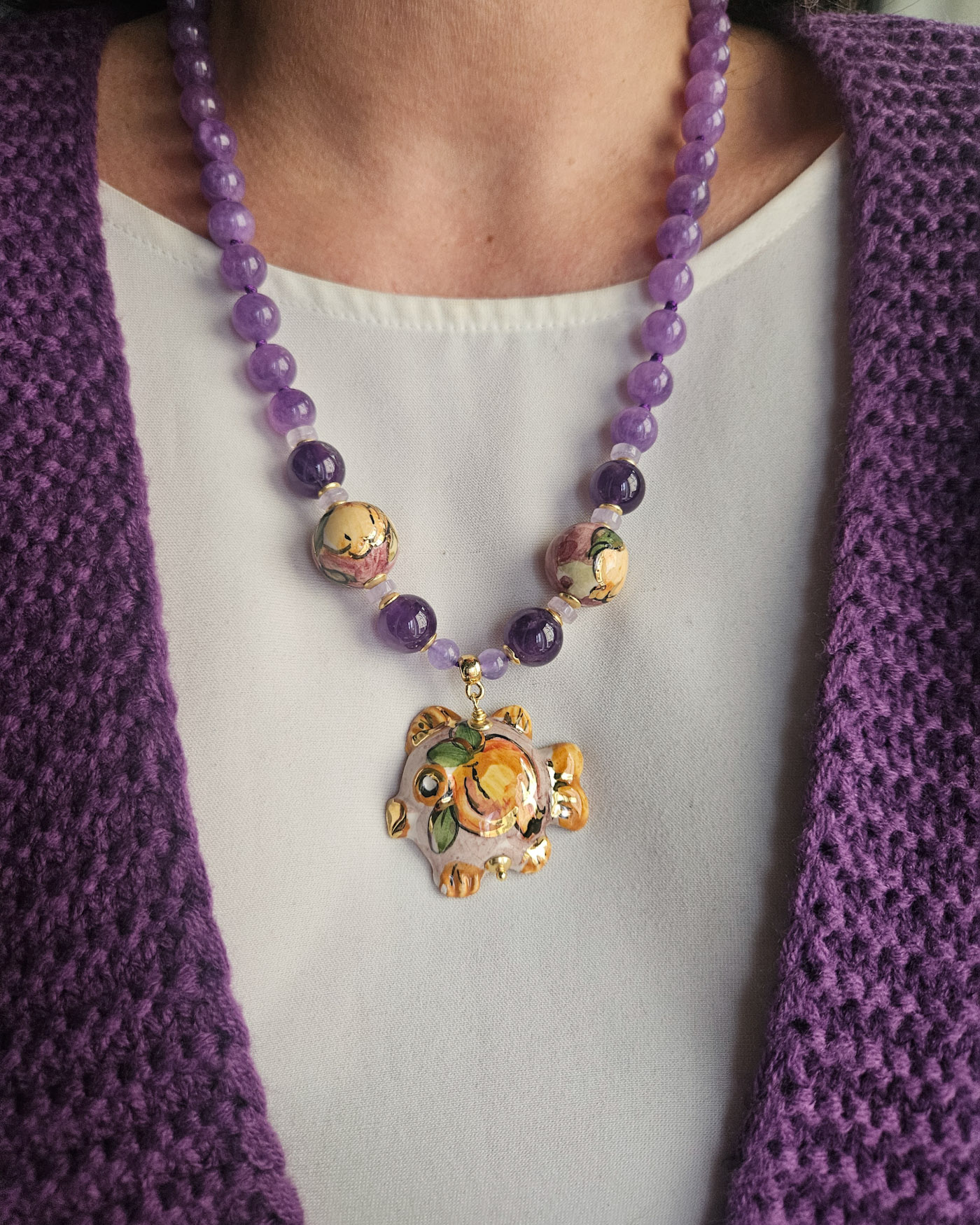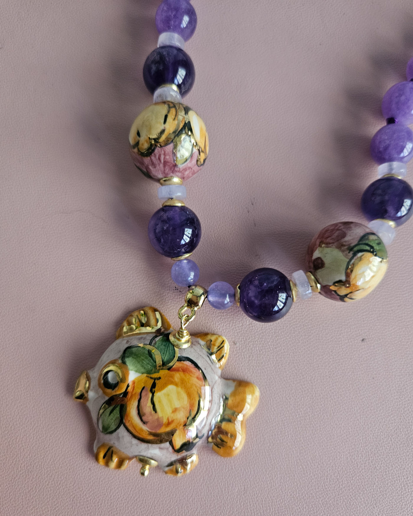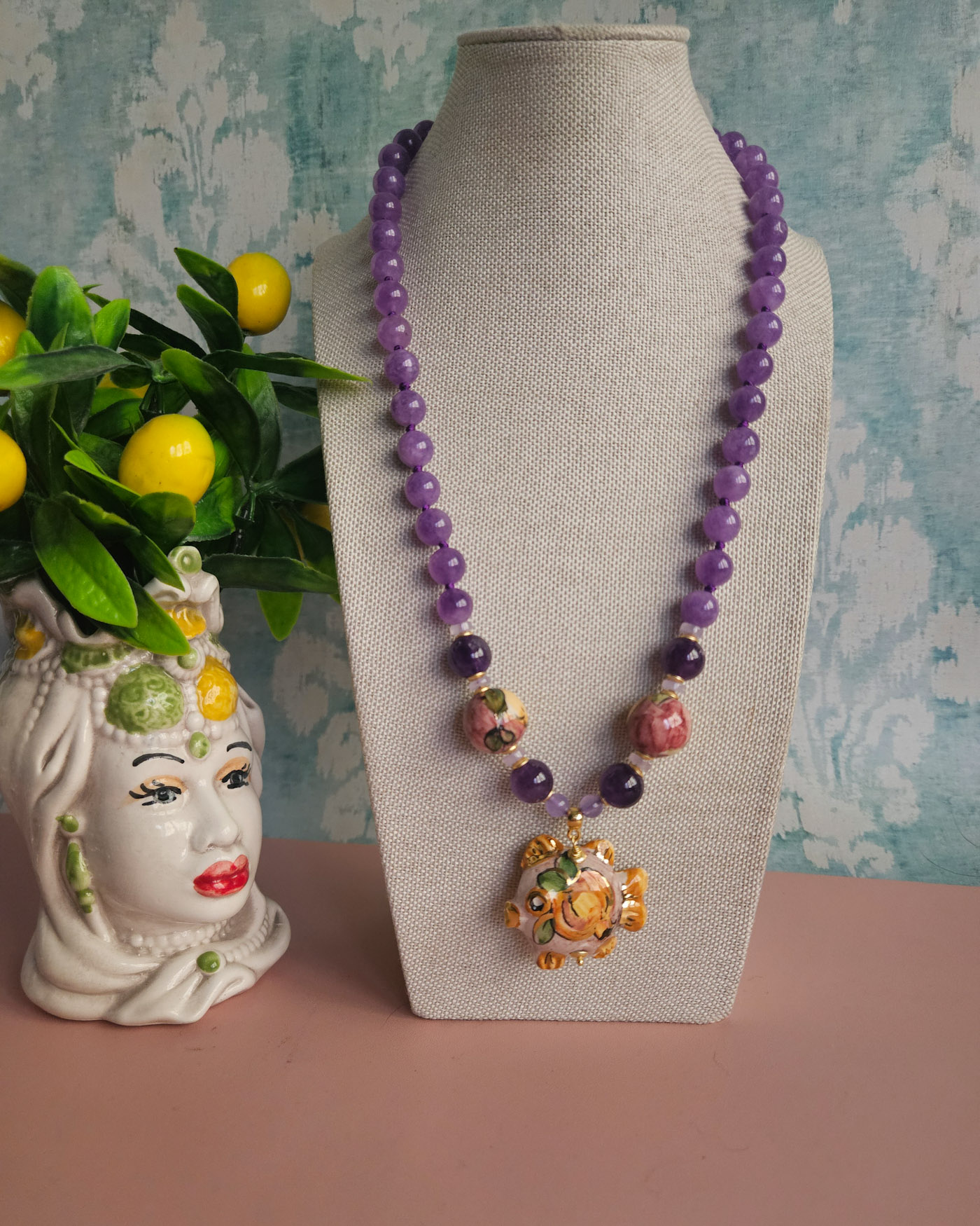Collana Girocollo in Ametista con Ceramica di Caltagirone