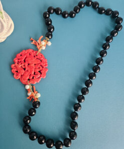 Collana Lunga con Onice Nero e Giada Burma Rossa
